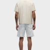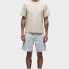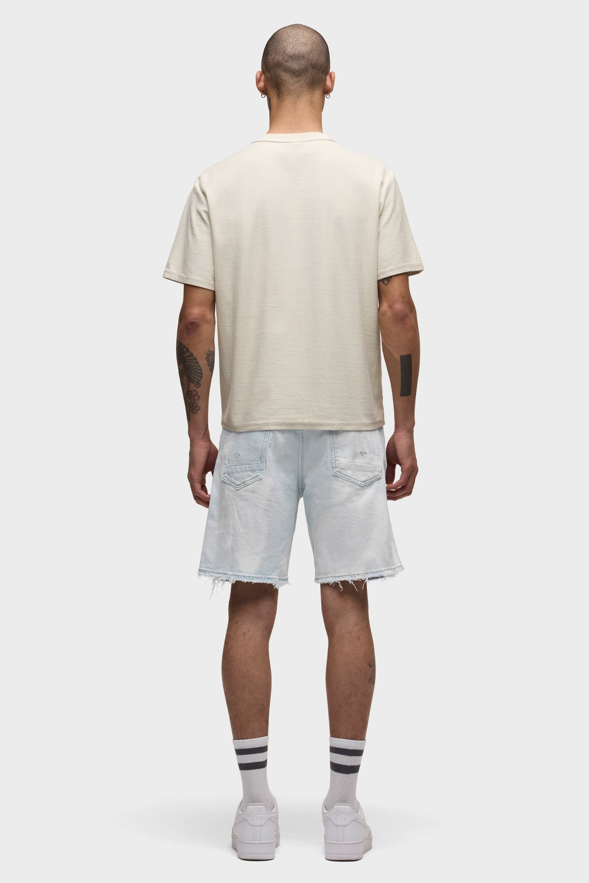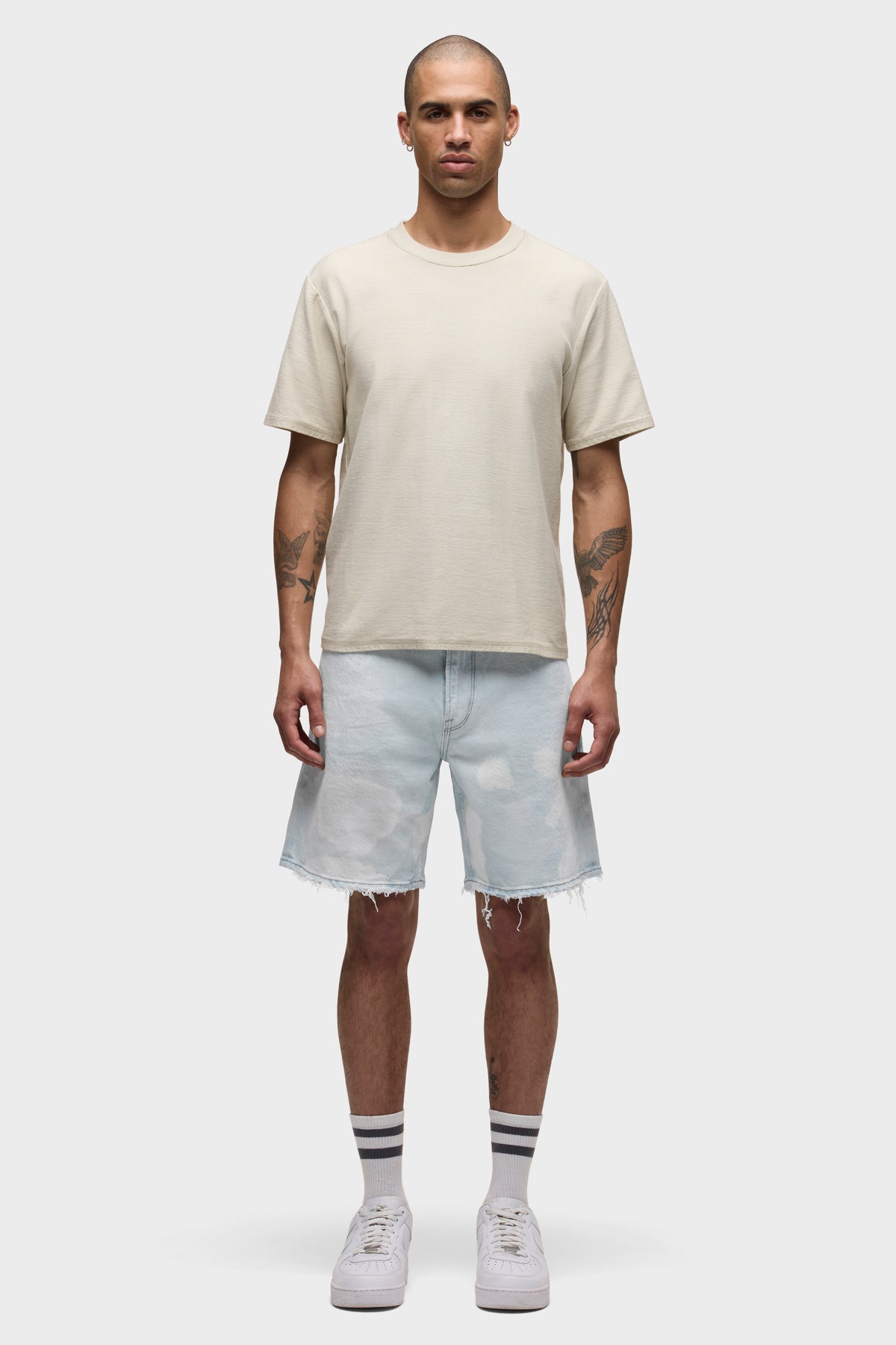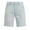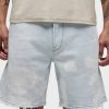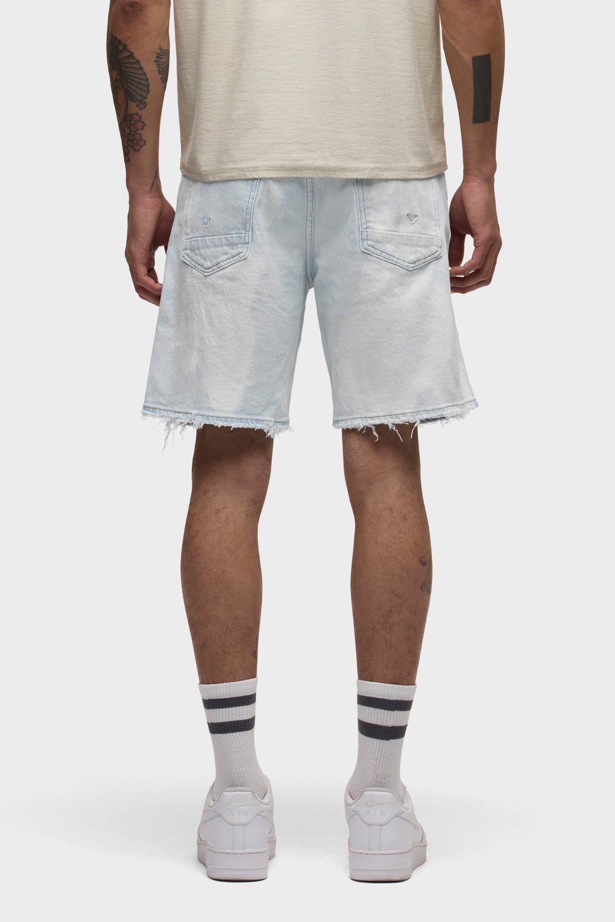 - The Clint Relaxed Short in Bleached Cloud is a versatile essential, offering a laid-back straight fit. This pair features a super light indigo wash with an all-over uneven treatment made to look like dirty stains and spots. Each short is custom dyed, and one of a kind. The dying process can vary from piece to piece and is what makes this garment unique.