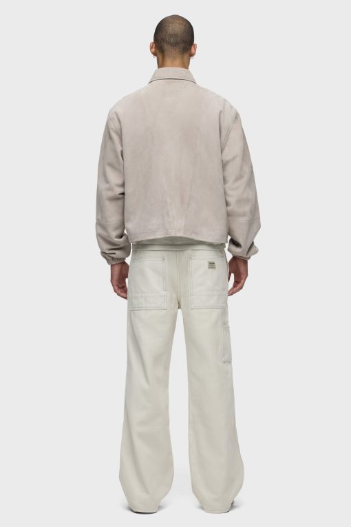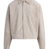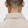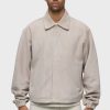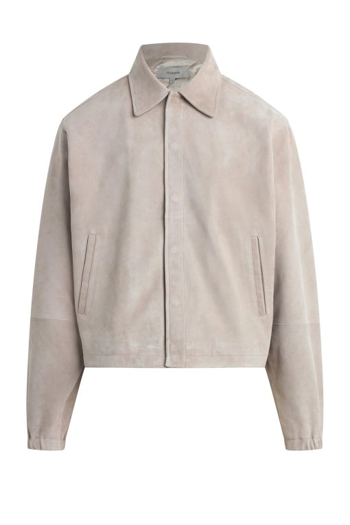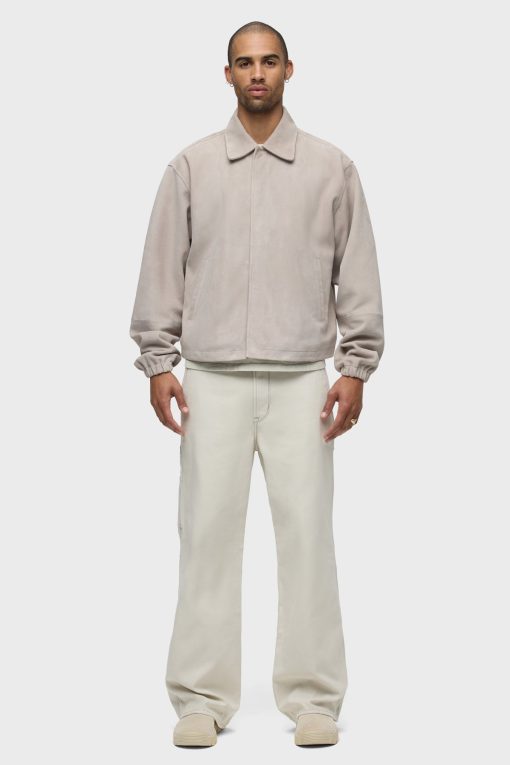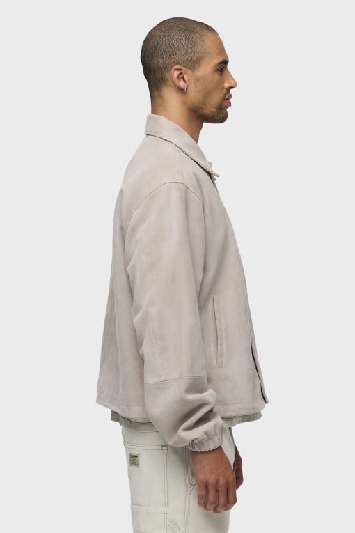 - Our Coach Jacket in Suede Birch has a relaxed, slightly cropped fit crafted from light beige suede that’s fully lined with diamond quilting. The jacket is constructed with front welt pockets, hidden center-front snaps, elastic cuffs and signature embossed logo at the back neckline.
