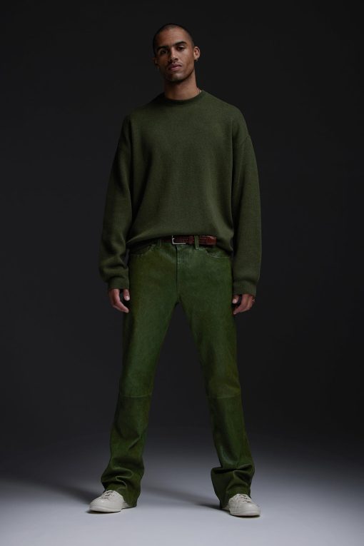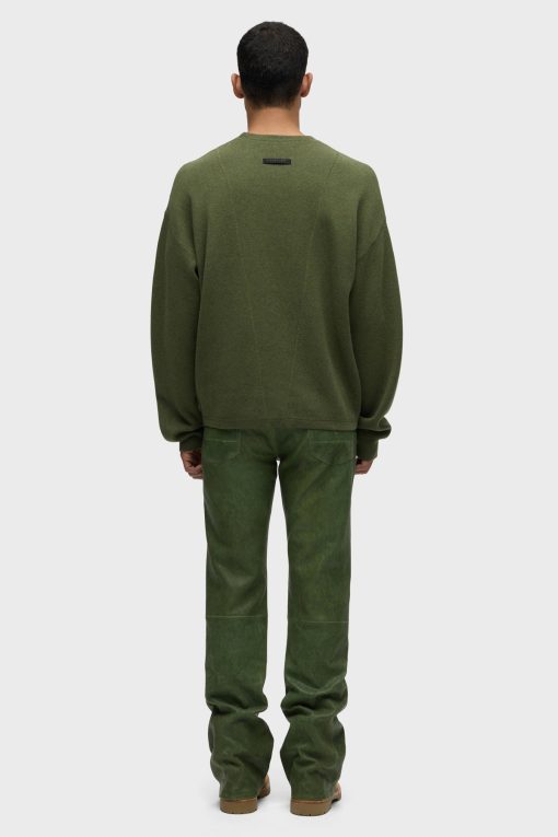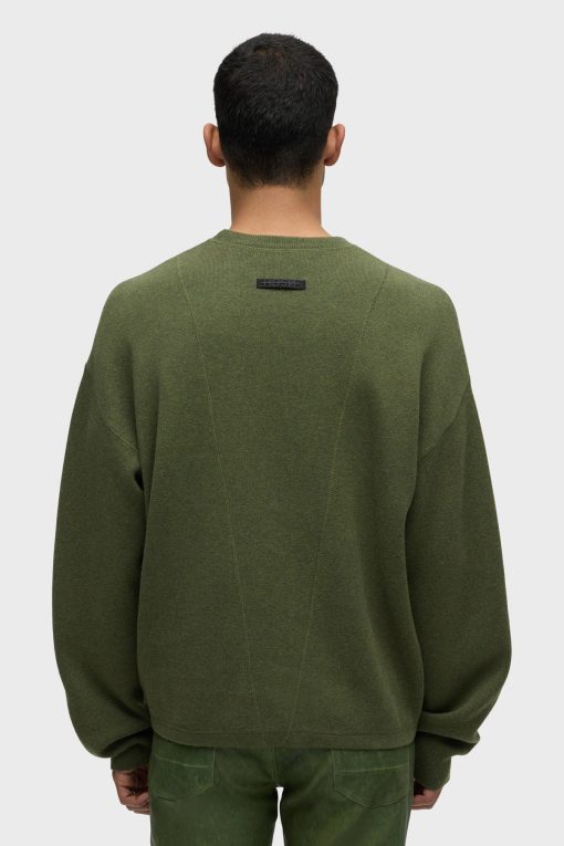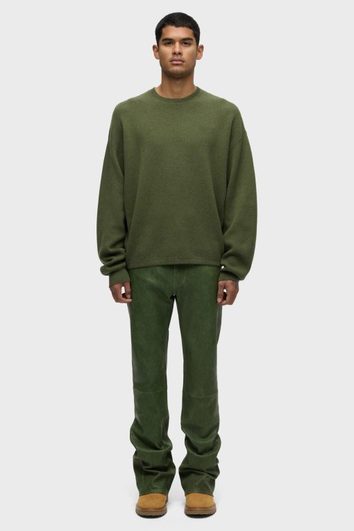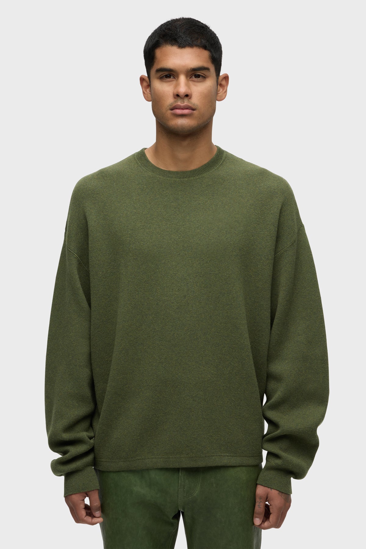 - The Crew Neck Sweater in Rich Pine is made from a double knit, cotton-cashmere blend for added softness. Features a crew neckline, dropped shoulders and a looser fit with signature HDSN label.