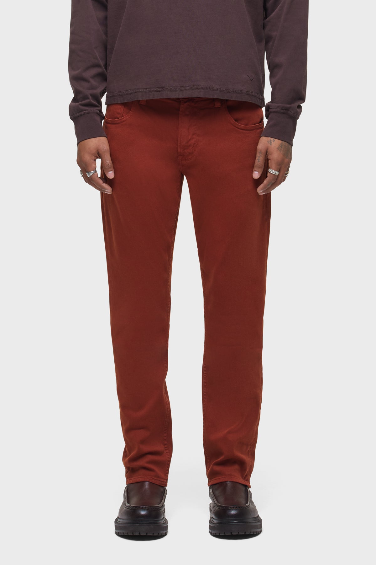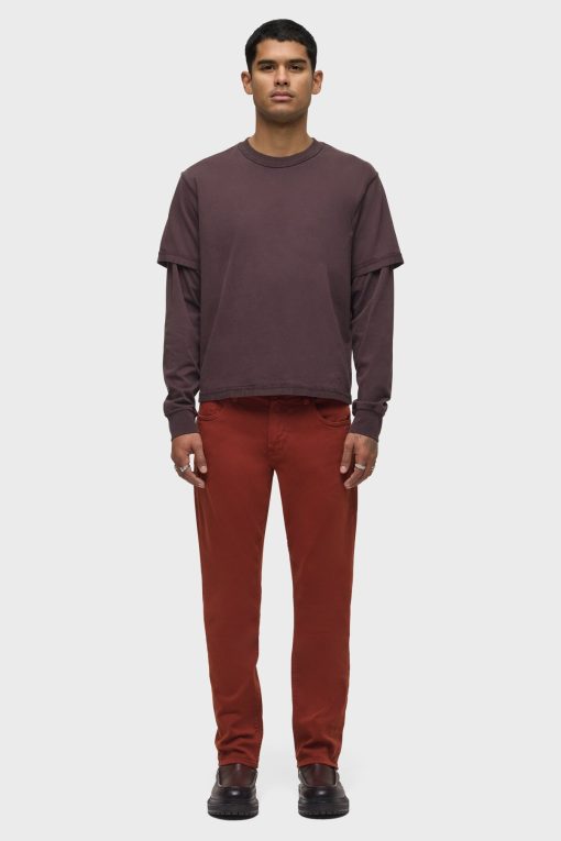 - Can’t beat Blake, our modern, just-right fit. Mid-rise, slim through the hip and thigh with a tapered leg. A classic. This pair features Brick, a red shade, and is made of comfort stretch denim with classic five-pocket detailing.