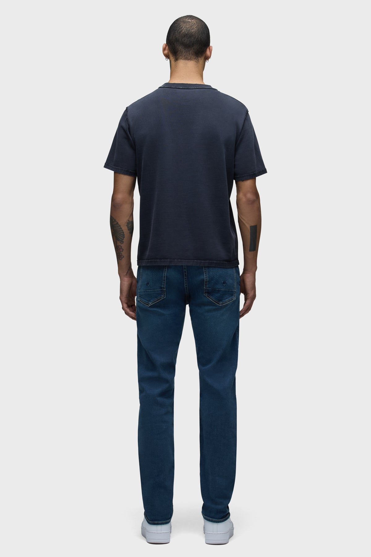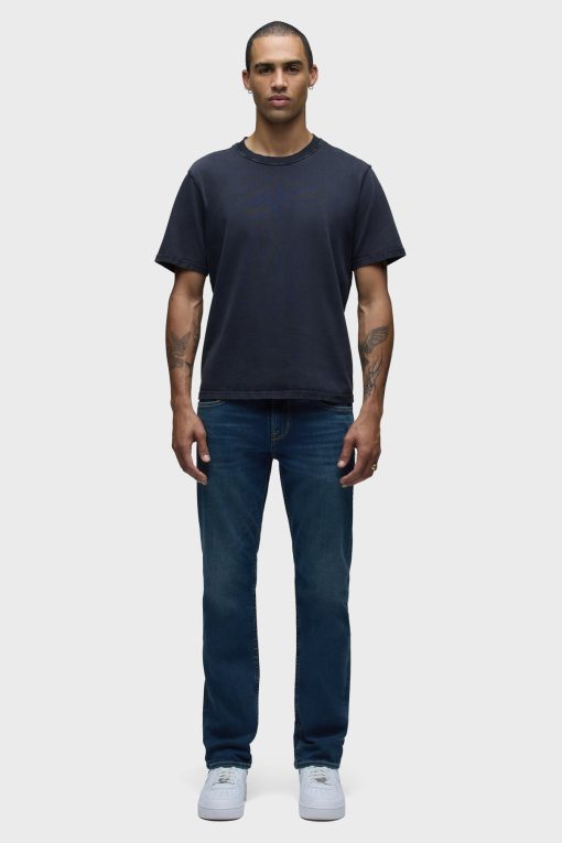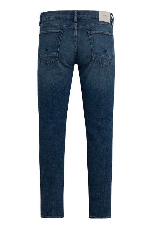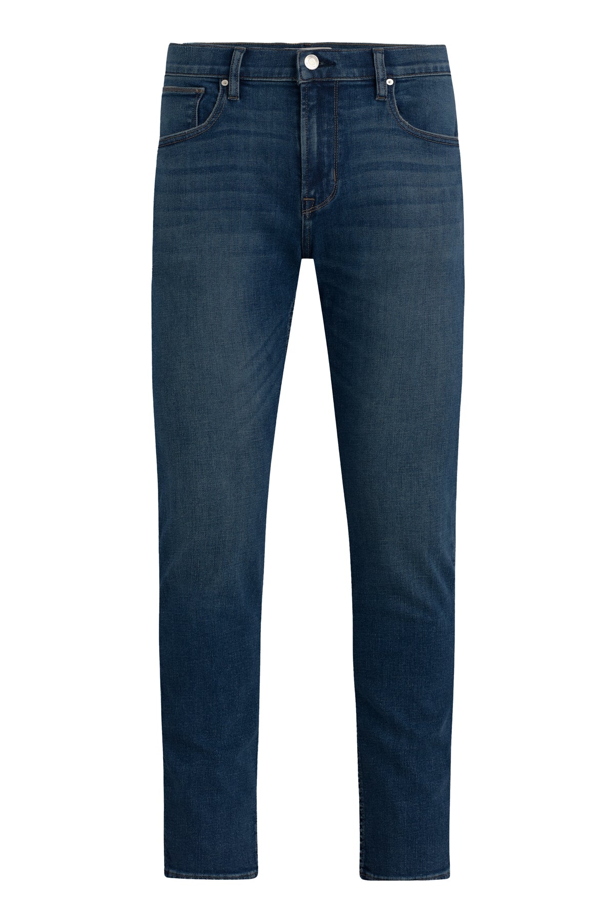 - Can’t beat Blake, our modern, just-right fit. Mid-rise, slim through the hip and thigh with a tapered leg. A classic. The medium-dark blue Republic wash is cut from premium comfort stretch denim with whiskering at the hem and finished with a 32″ inseam.