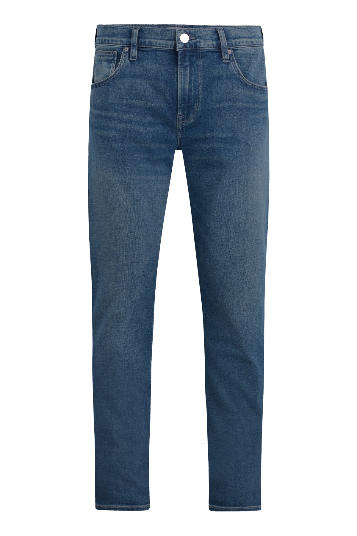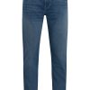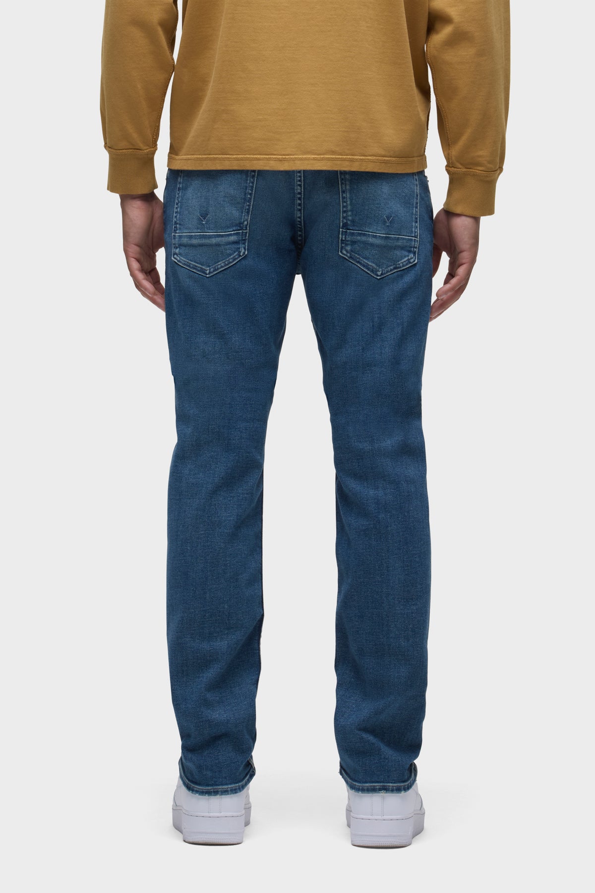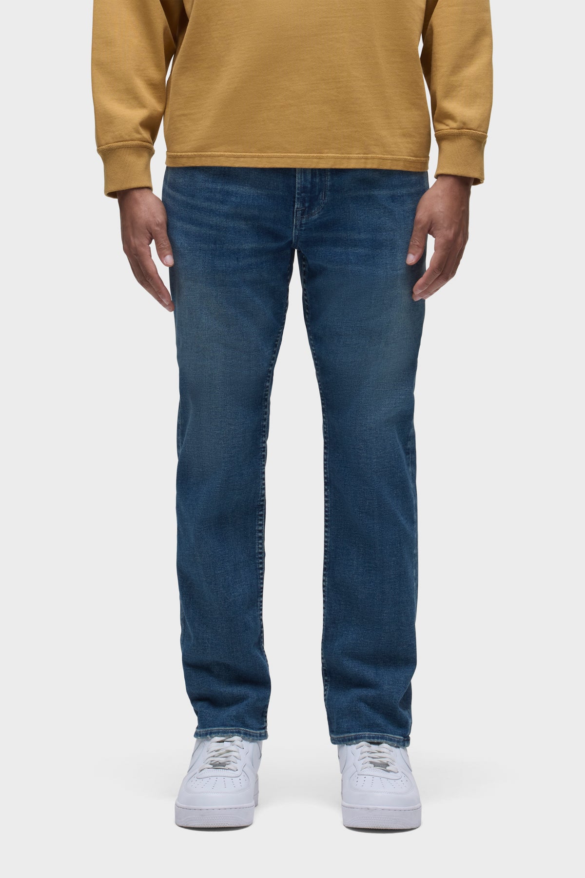 - Can’t beat Blake, our modern, just-right fit. Mid-rise, slim through the hip and thigh with a tapered leg. A classic. The dark indigo wash Overcast is finished with stone washing, all-over hand-sanding, whiskering and edge grinding. This pair is made of premium comfort stretch denim with classic five-pocket detailing.