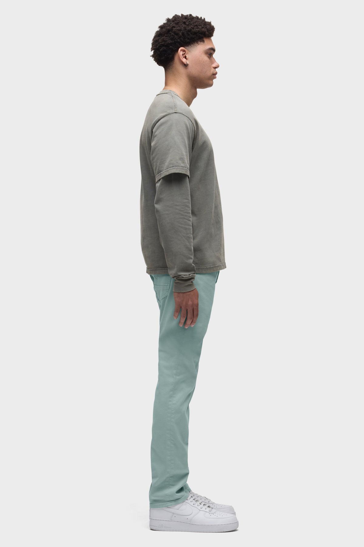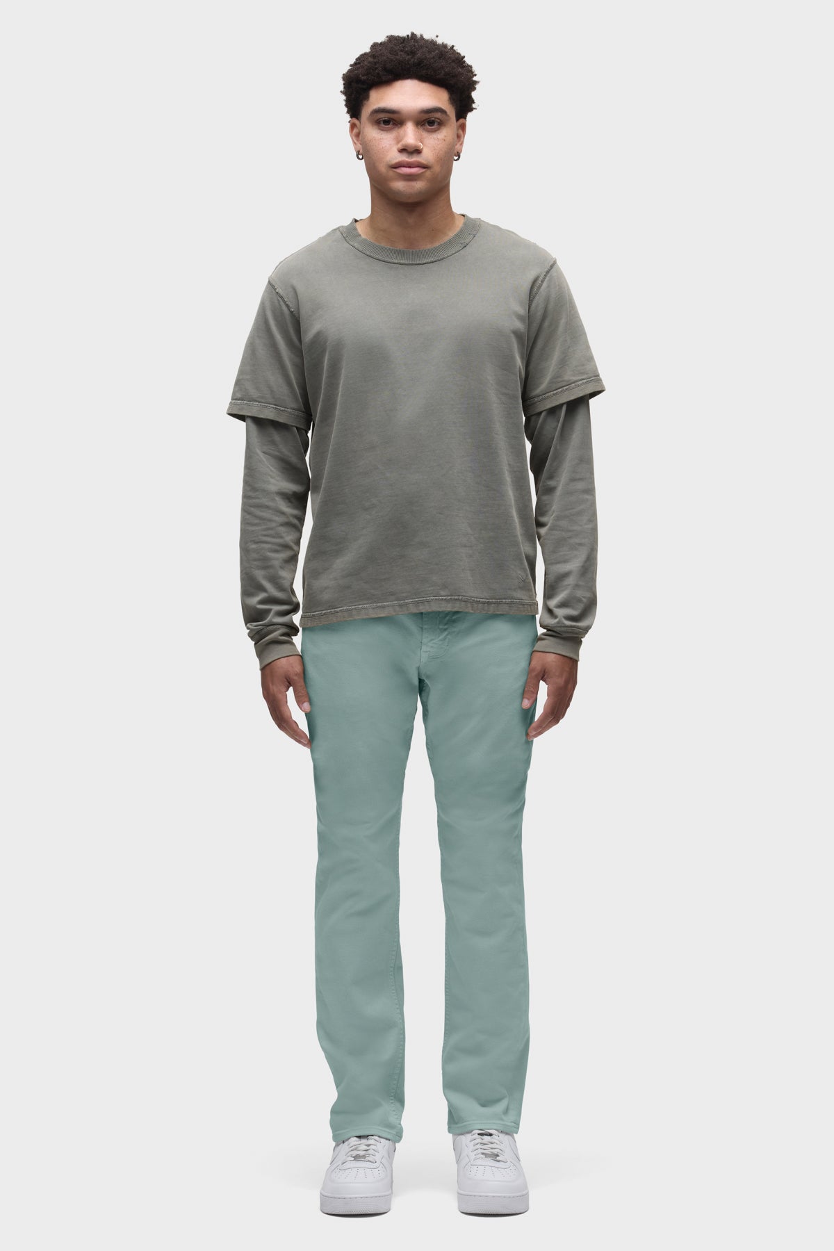 - Can’t beat Blake, our modern, just-right fit. Mid-rise, slim through the hip and thigh with a tapered leg. A classic. This pair features an overdyed light green wash, Agave, and is made of our Textured Twill, a soft, mid-weight twill fabric with medium stretch. Classic five-pocket detailing, grey hardware and a black leather back patch finish the look.
