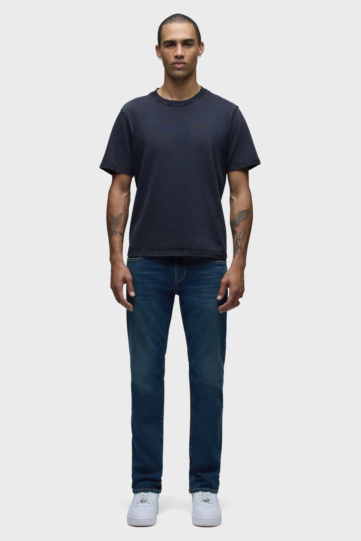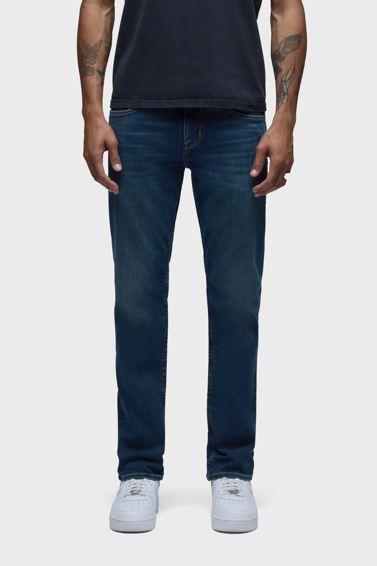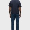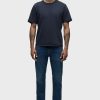 - Byron is our most relaxed fit. Mid-rise, straight through the hip and thigh with a slim-straight leg. A classic. The medium-dark blue Republic wash is cut from premium comfort stretch denim with whiskering at the hem and finished with a 32″ inseam.