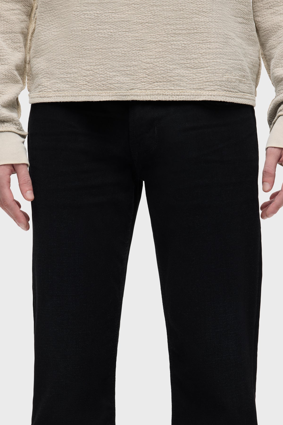 - Byron Straight Leg Jean is our most relaxed fit. Mid-rise, straight through the hip and thigh with a slim-straight leg. A classic. Black Ridge is a black-rinse wash that is finished with grinding along the edges, matte black hardware and black leather back patch.