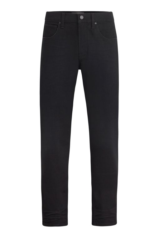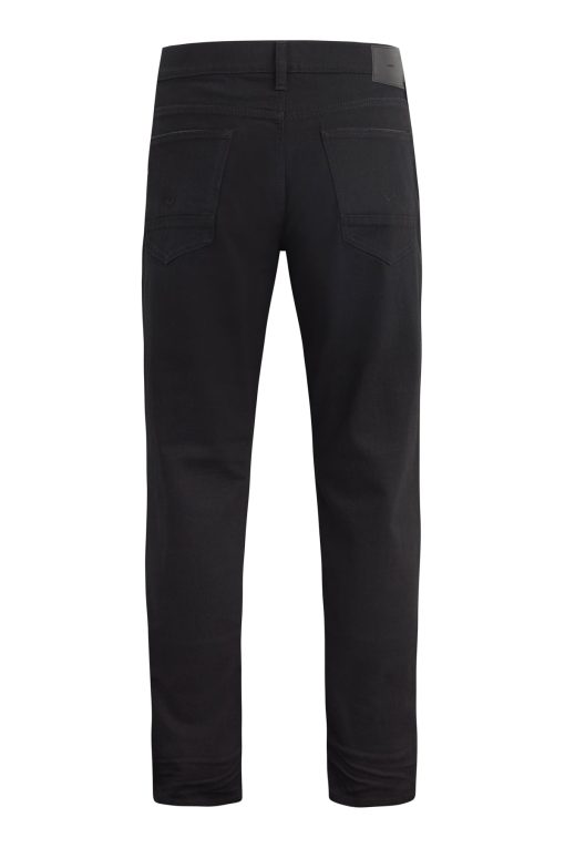 - Byron Straight Leg Jean is our most relaxed fit. Mid-rise, straight through the hip and thigh with a slim-straight leg. A classic. Black Ridge is a black-rinse wash that is finished with grinding along the edges, matte black hardware and black leather back patch.