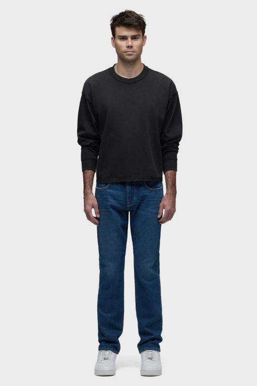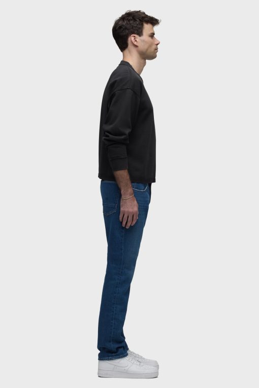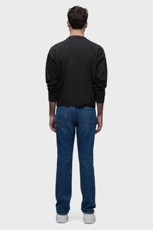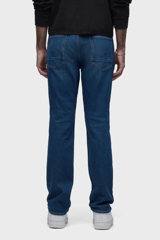 - The Byron is our most relaxed fit. Mid-rise, straight through the hip and thigh with a slim-straight leg. A classic. This pair features a medium-dark indigo wash, Sutton, and it is made of premium comfort stretch denim with classic five-pocket detailing.