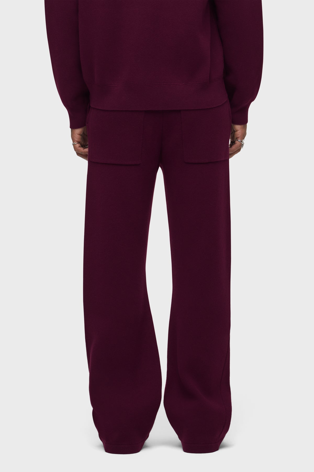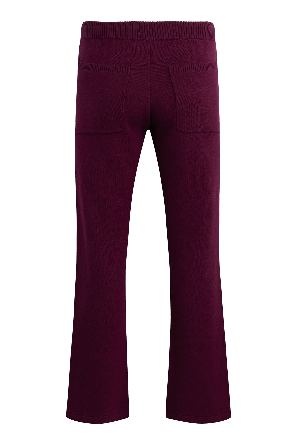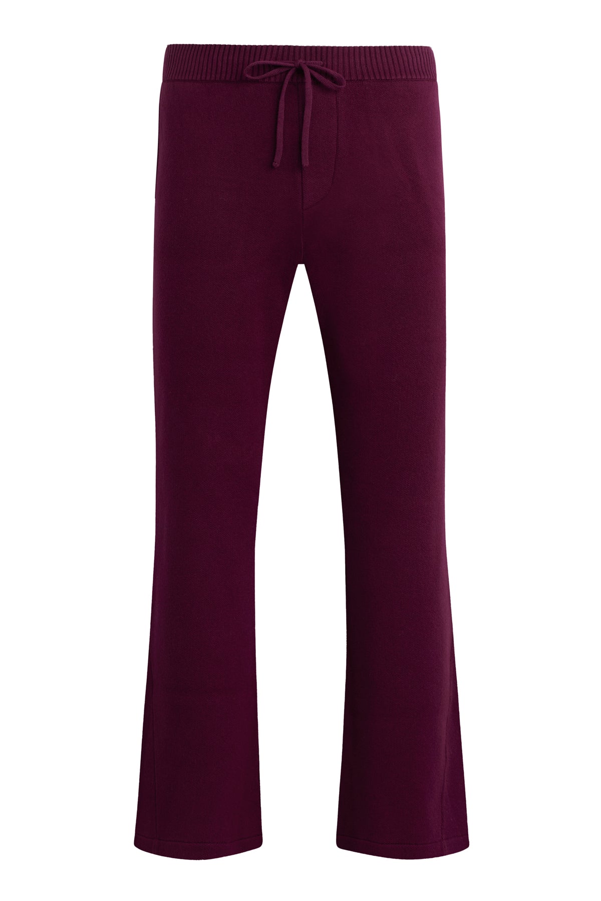 - The Double Knit Kick Flare in Bordeaux is designed with a relaxed fit, flared hem and drawcord elastic waistband. Made from a soft cotton-cashmere blend, this flared pant is finished with slash pockets, back patch pockets and gussets at the hem. Pair this pant with our coordinating Double Knit Hoodie to make it a complete set.