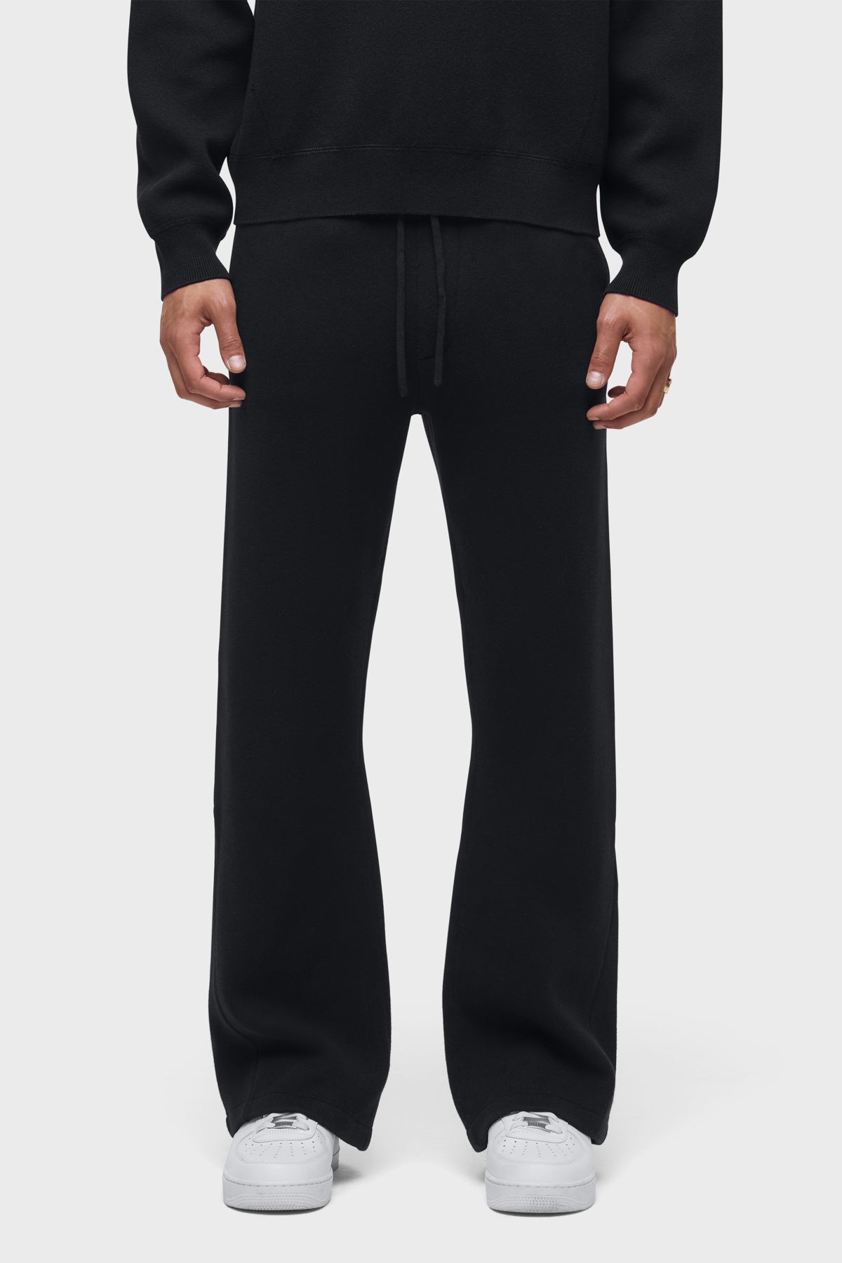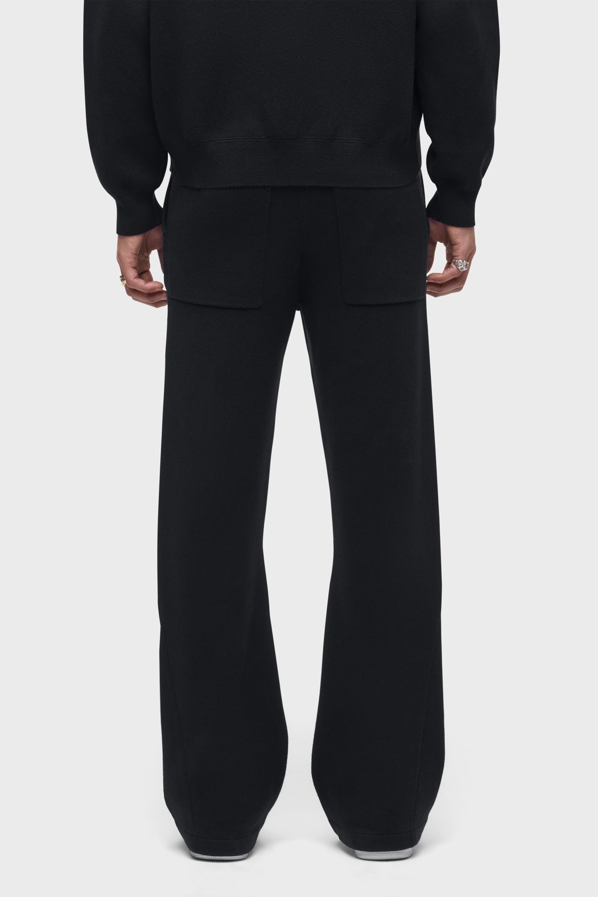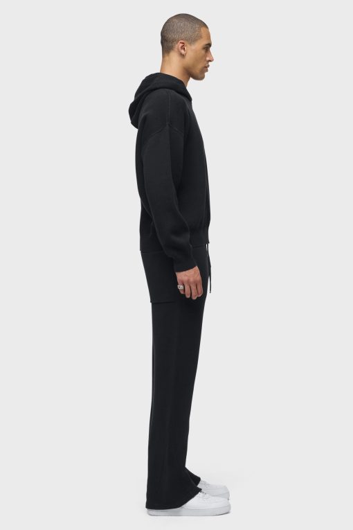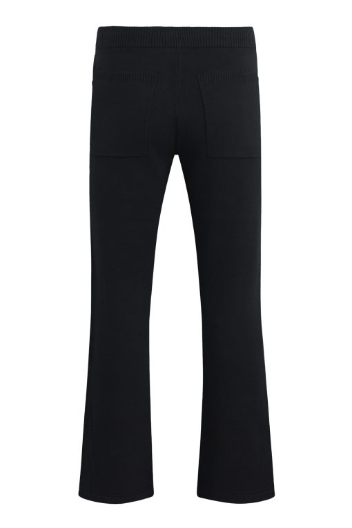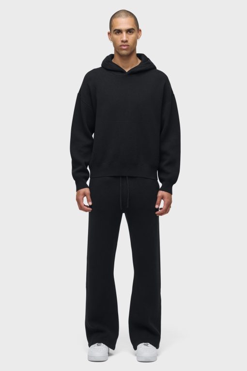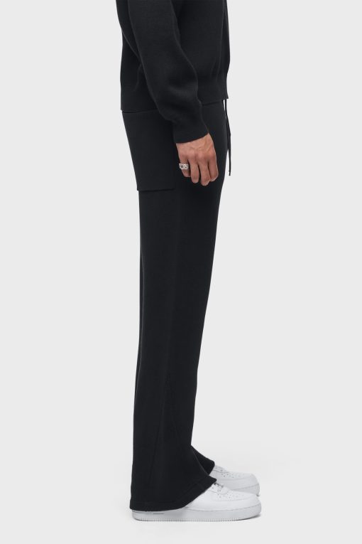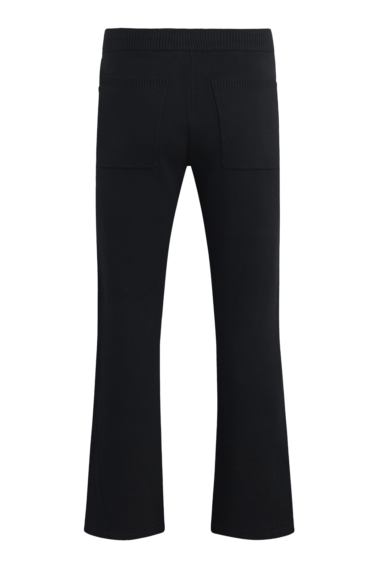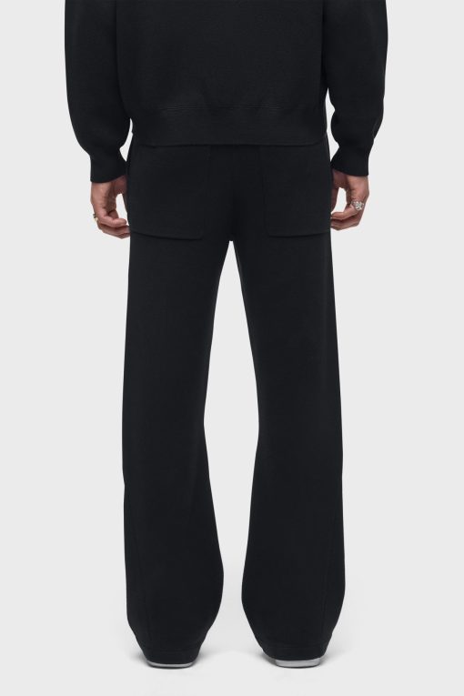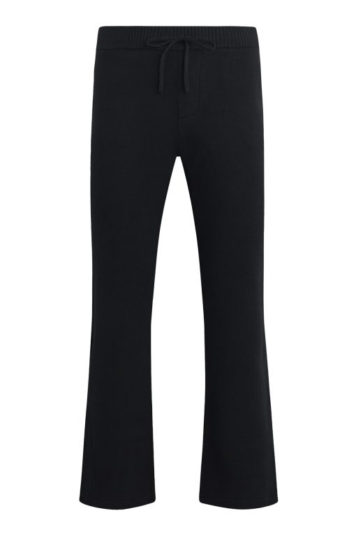 - The Double Knit Kick Flare in Pitch Black is designed with a relaxed fit, flared hem and drawcord elastic waistband. Made from a soft cotton-cashmere blend, this flared pant is finished with slash pockets, back patch pockets and gussets at the hem. Pair this pant with our coordinating Double Knit Hoodie to make it a complete set.