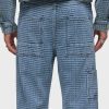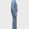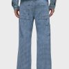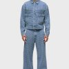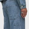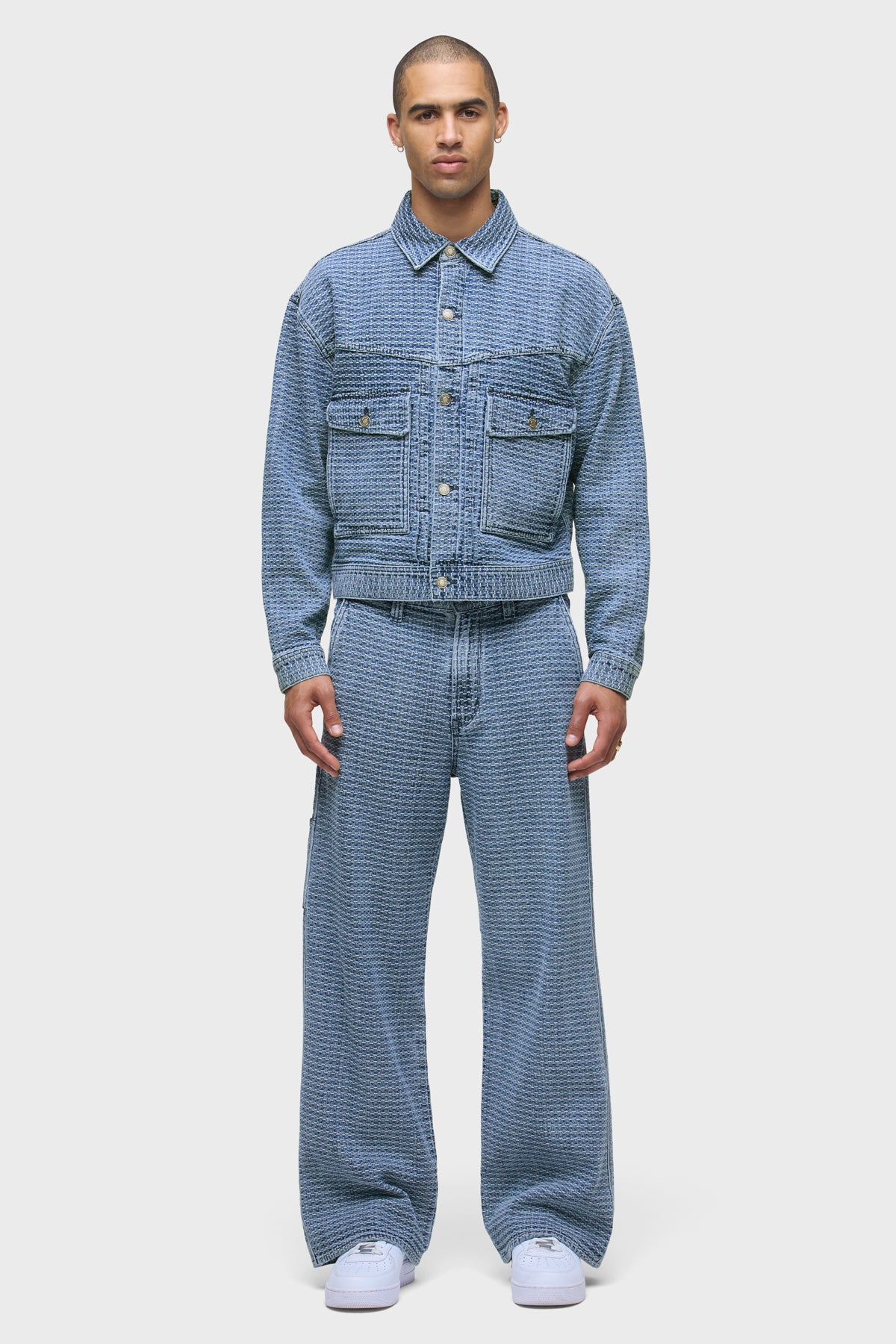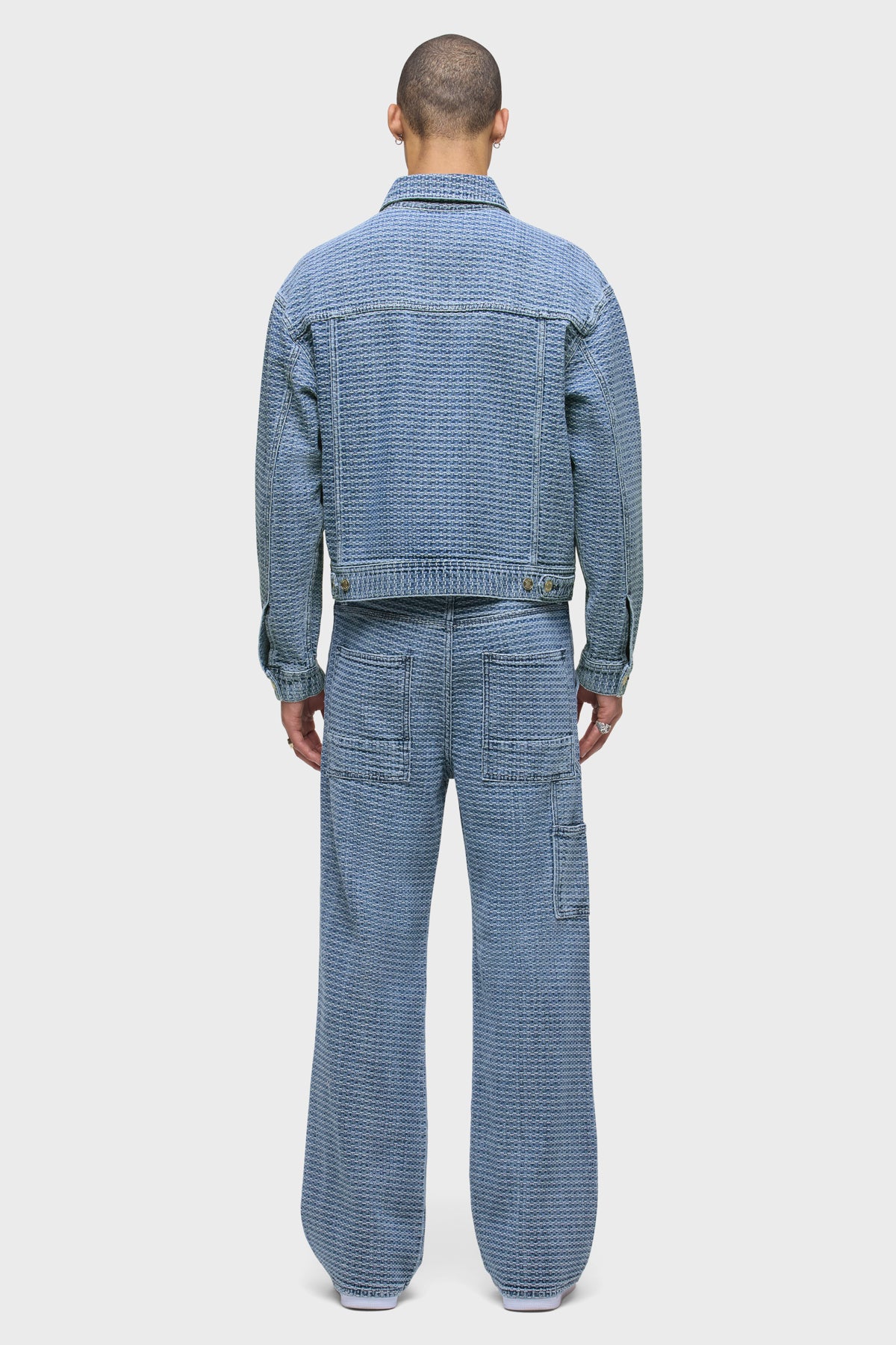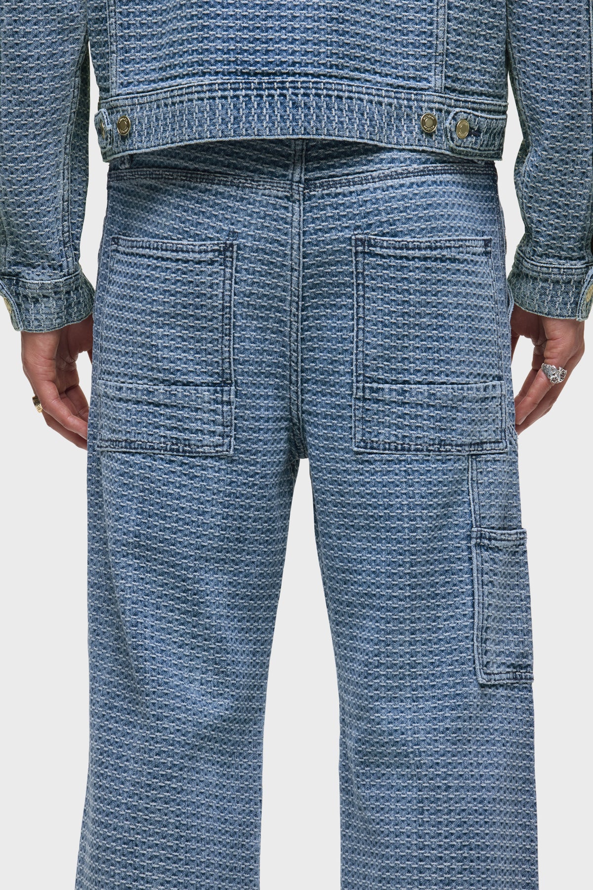 - With a 90s grunge look and feel, our Luca Wide Leg Carpenter Jean in Jacquard Indigo is a loose silhouette with a mid-rise waist and wide cut through the leg, now featured in an indigo jacquard fabrication for added visual interest and texture.