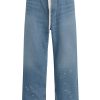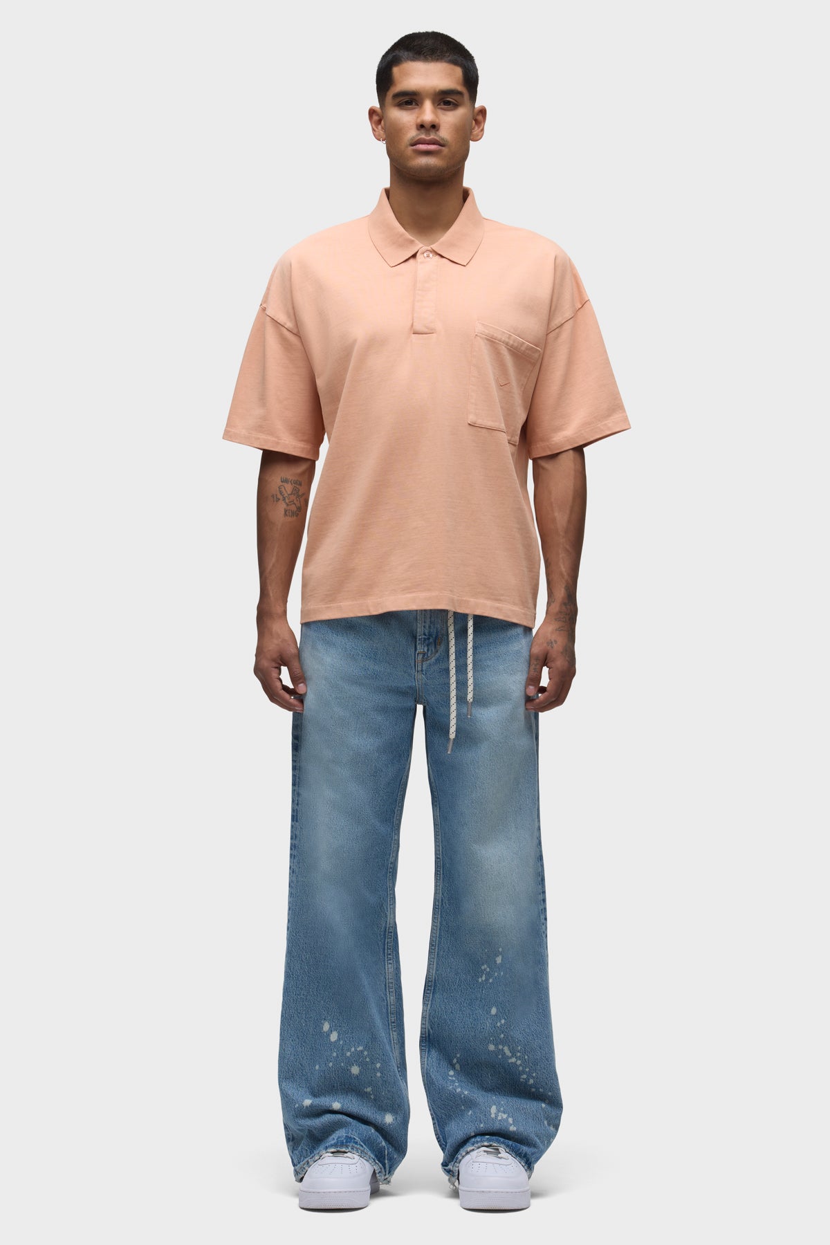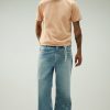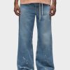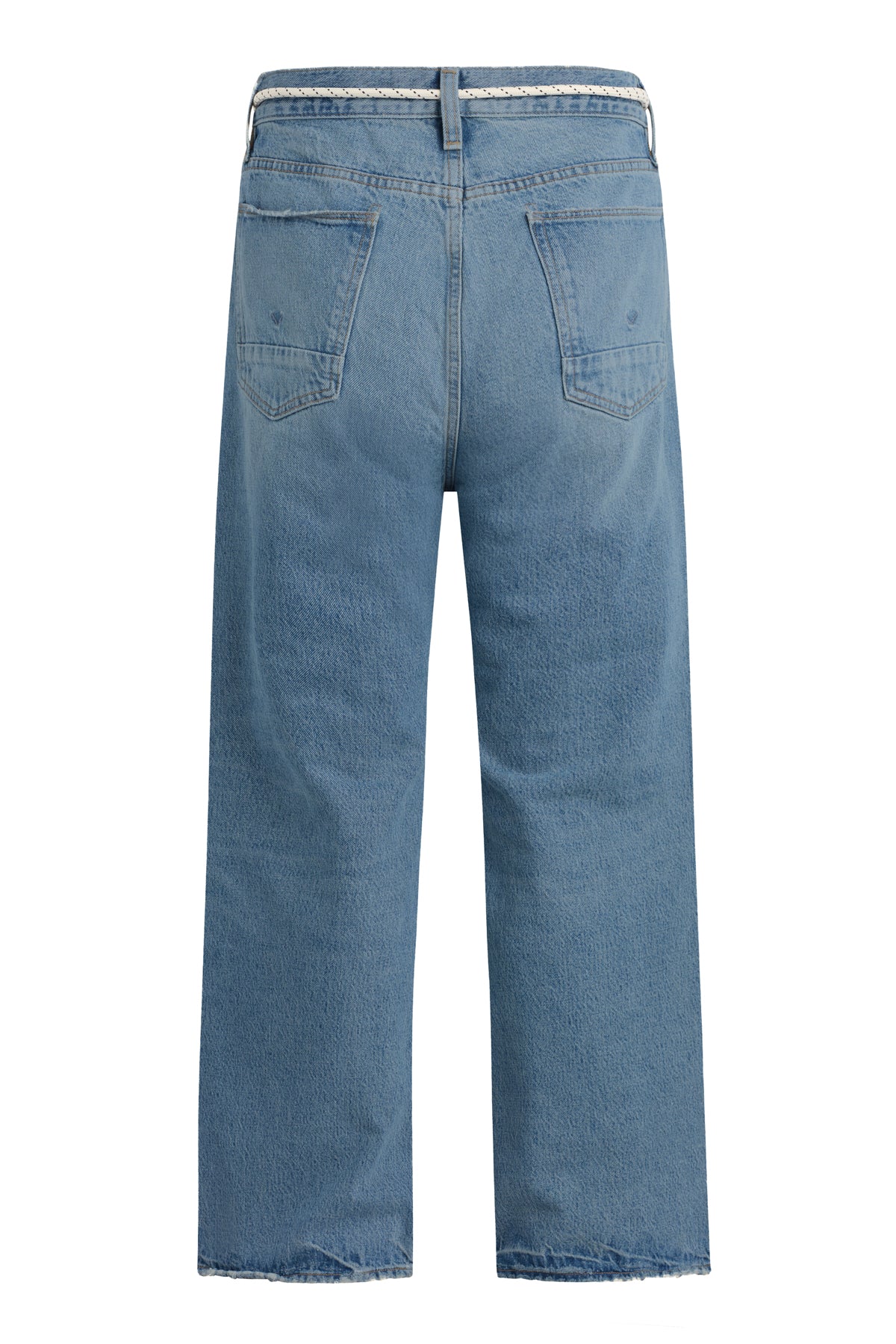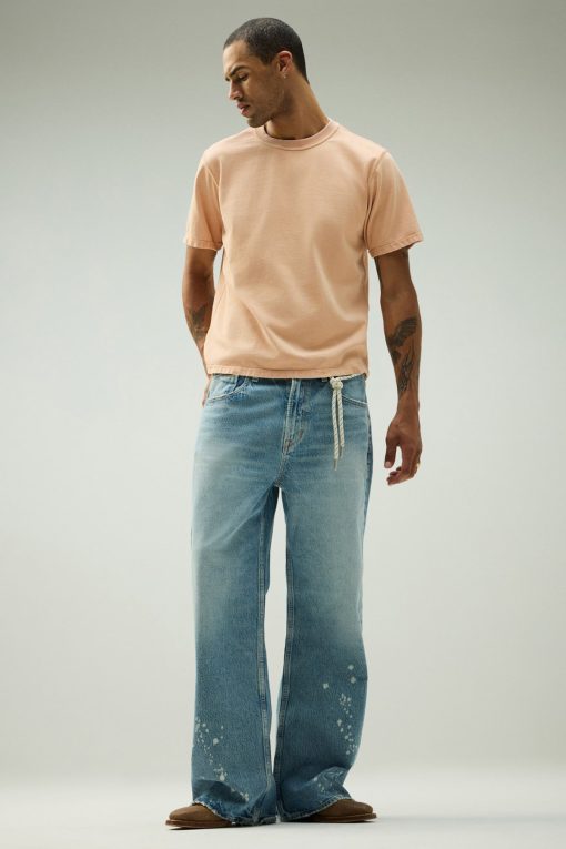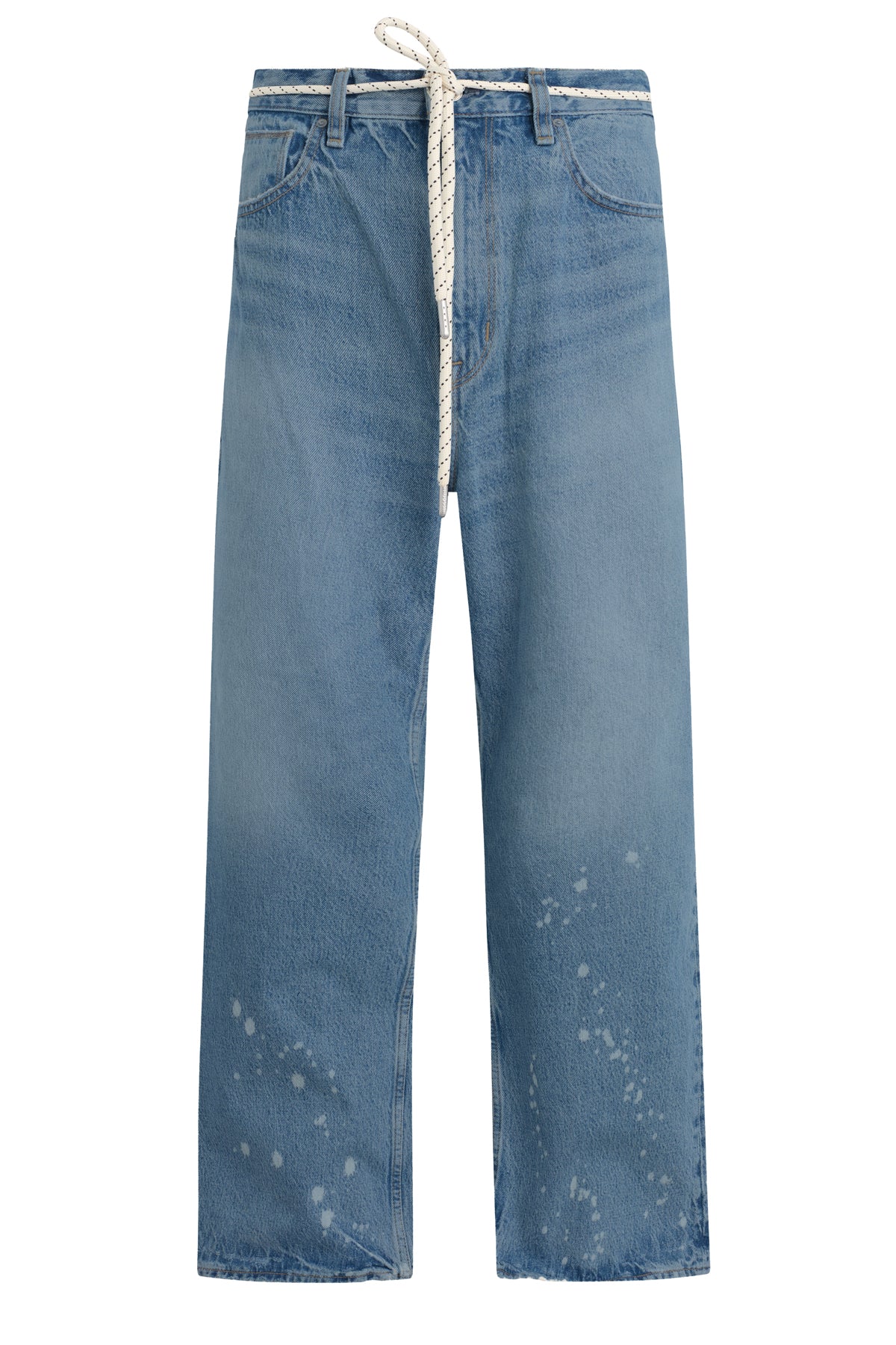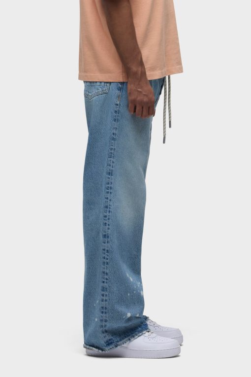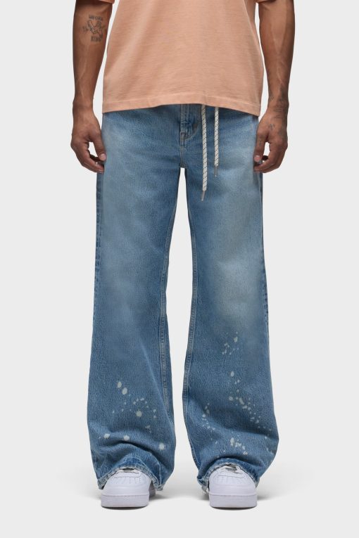 - Our Luca Wide Leg Jean in Bleached is a loose silhouette with a mid-rise waist and wide cut through the leg. The light indigo vintage wash has a natural worn-in look with heavy stone washing, acid washing, bleaching, whiskering and bleach splatter. This pair is made of rigid denim with classic five-pocket detailing, grinding along the edges, dull nickel hardware and signature embroidery on the waistband, and features a rope belt (included with purchase).