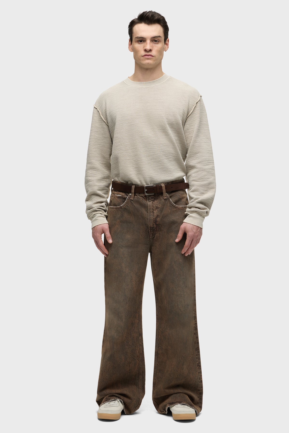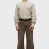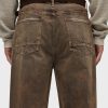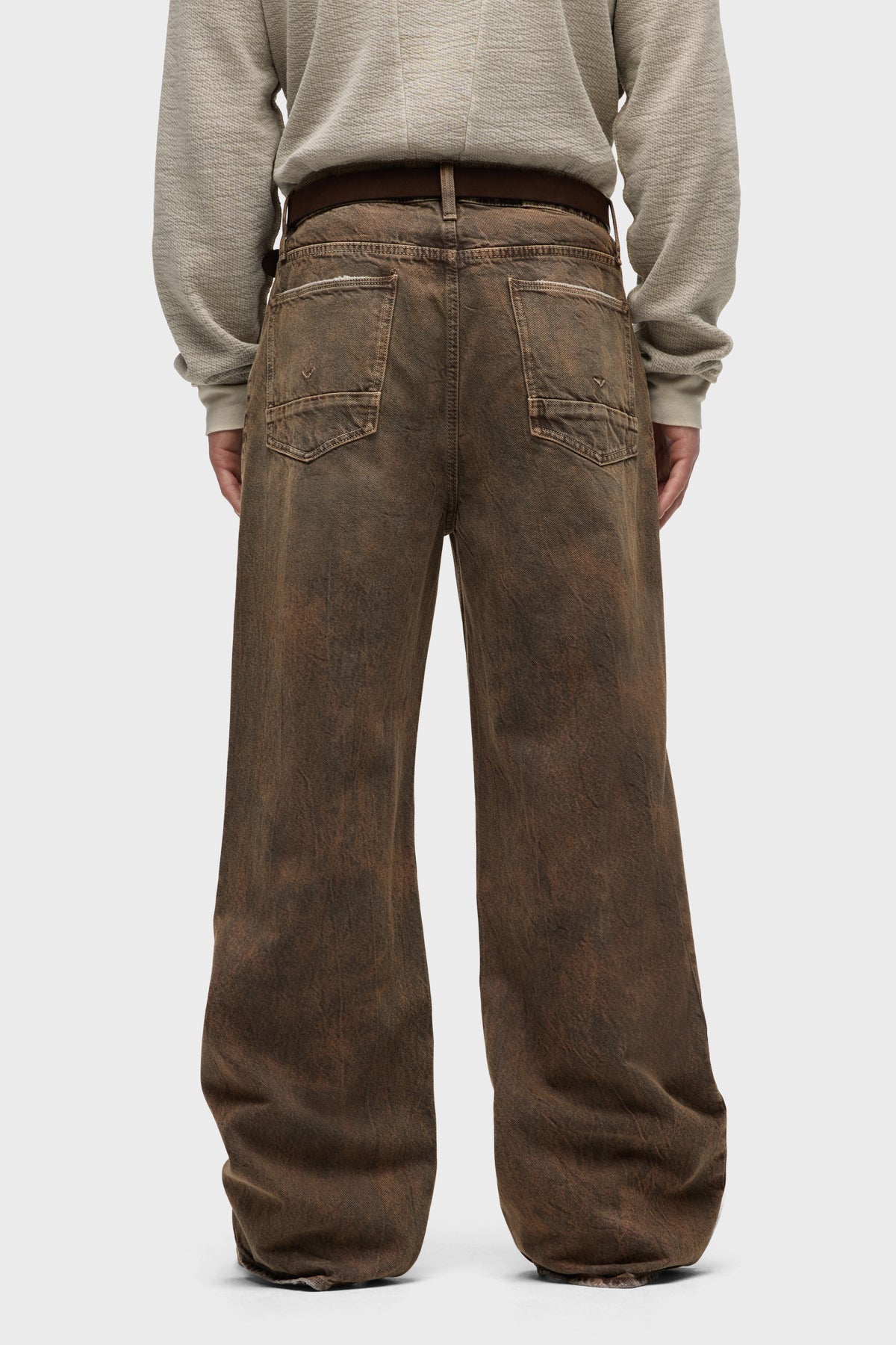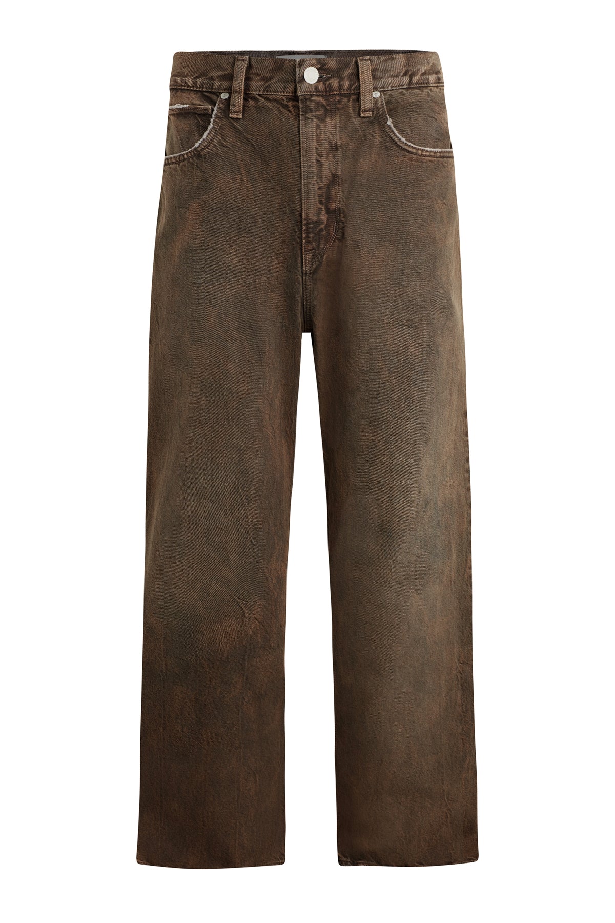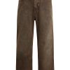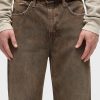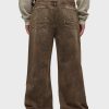 - With a 90’s grunge look and feel, our Luca Wide Leg Jean in Dark Earth has a loose fit, mid-rise waist and is wide cut through the leg. The distressed dark brown wash is overdyed for a lived-in, stained look and is finished with five-pocket detailing, grinding along the edges and matte grey hardware with signature embroidery at the waistband.