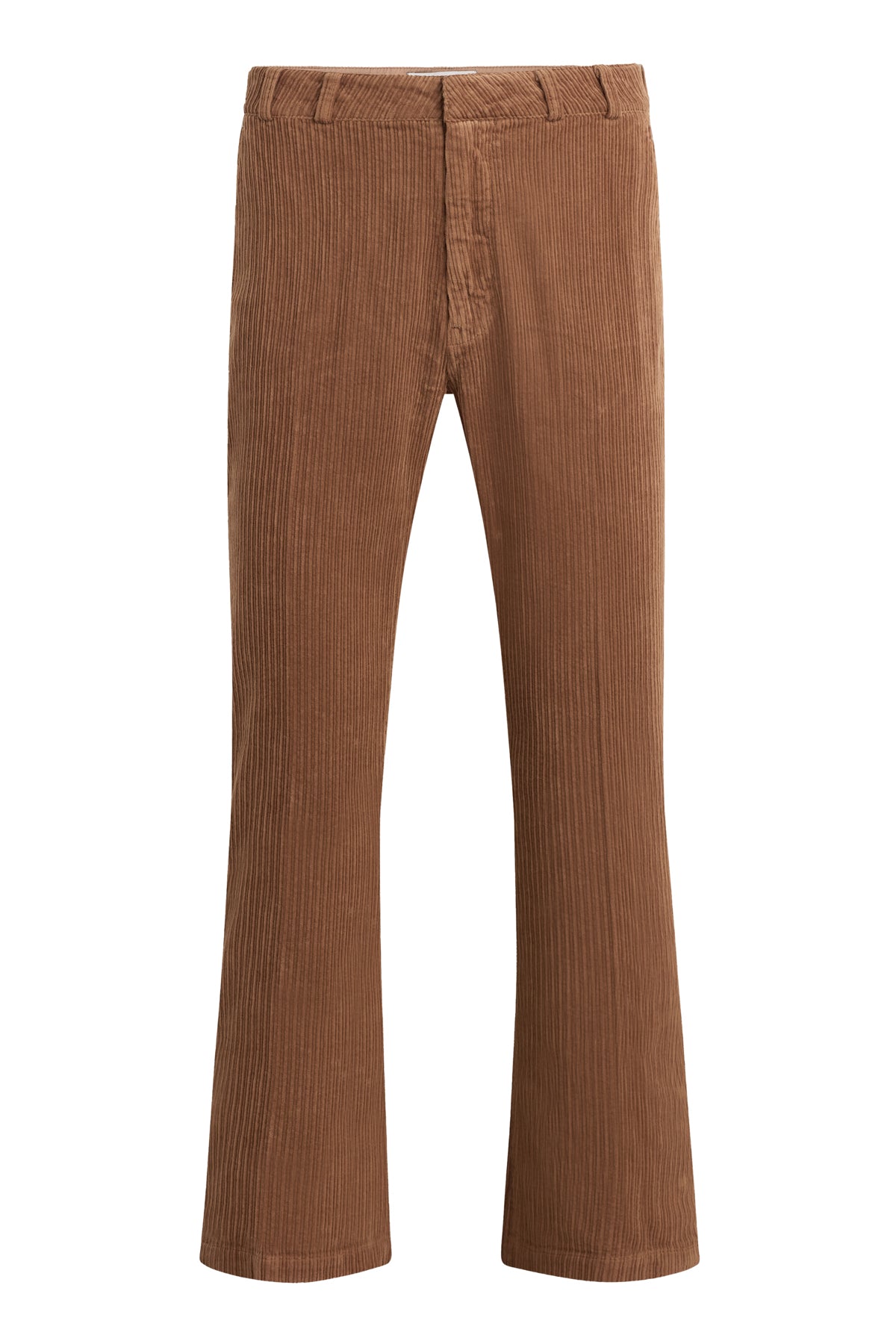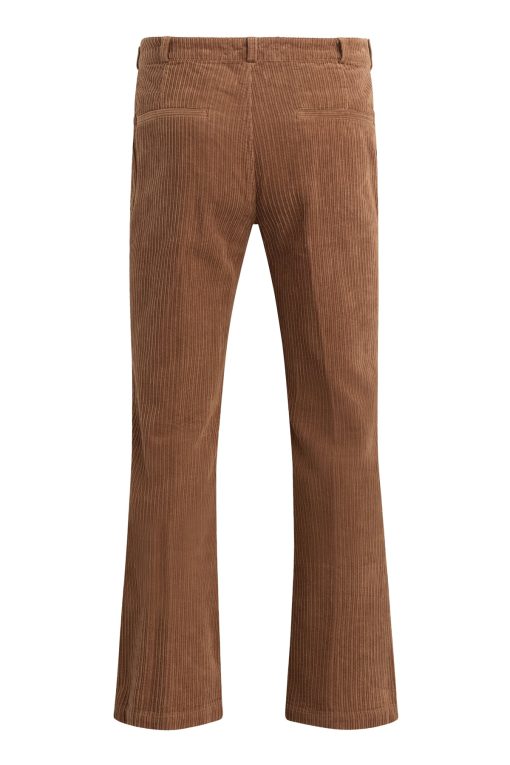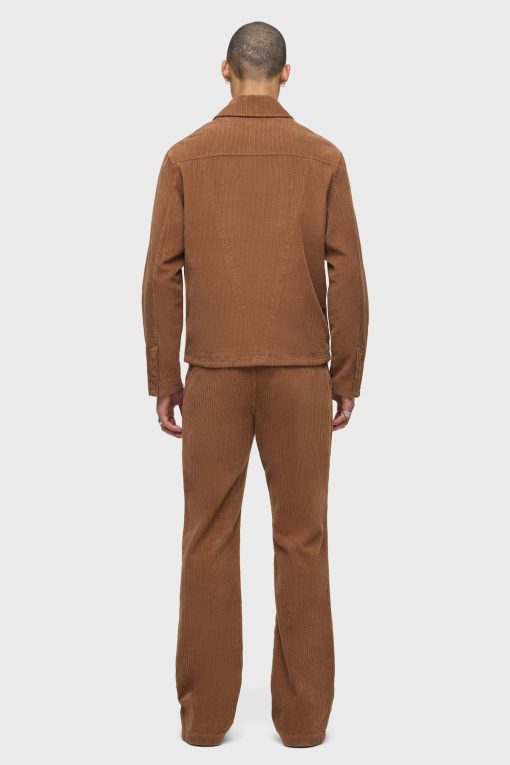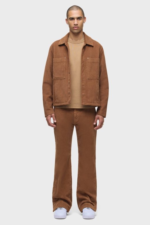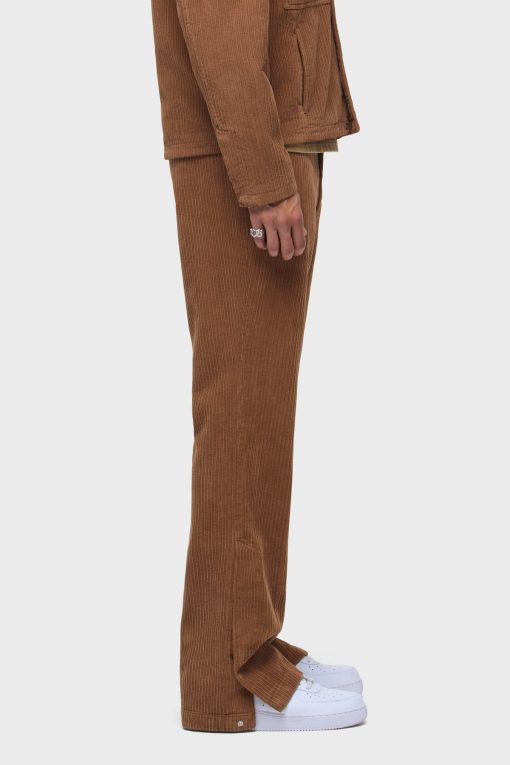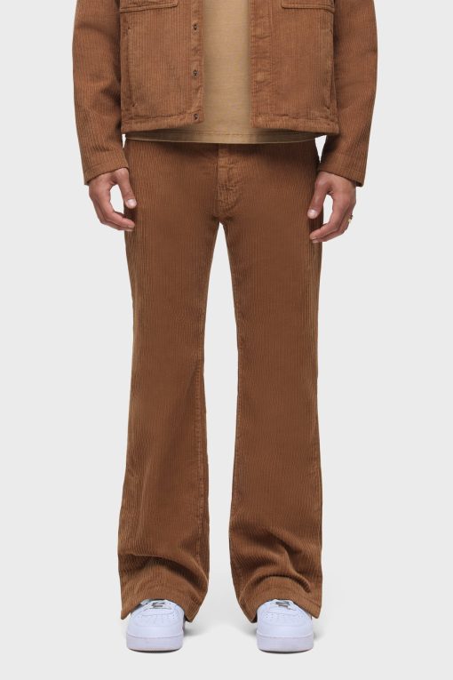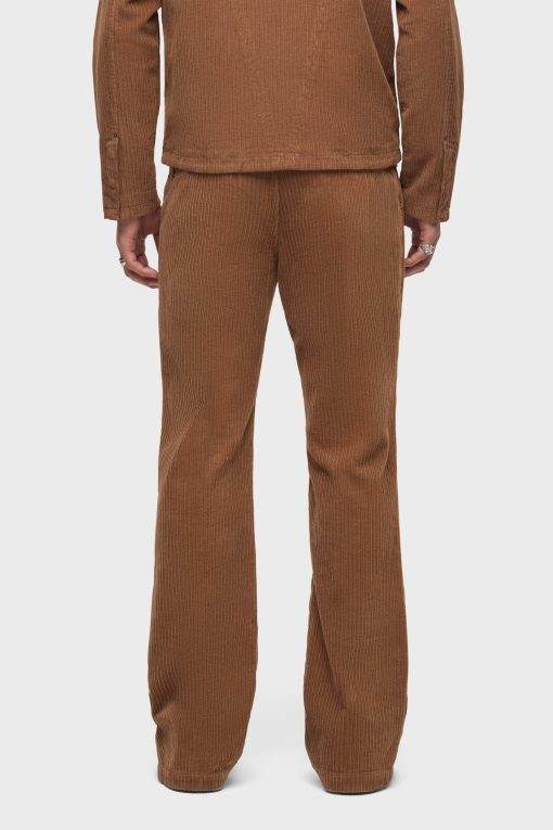 - Our Walker Trouser Pant in Toffee is an easy, mid-rise fit with a flared bootcut hem, track-inspired details, slash front pockets and back welt pockets. This pair is crafted from corduroy in a brown shade and finished with hidden hem snaps, a hook-and-eye closure, and our signature “V” embroidery above the wearer’s right back pocket.