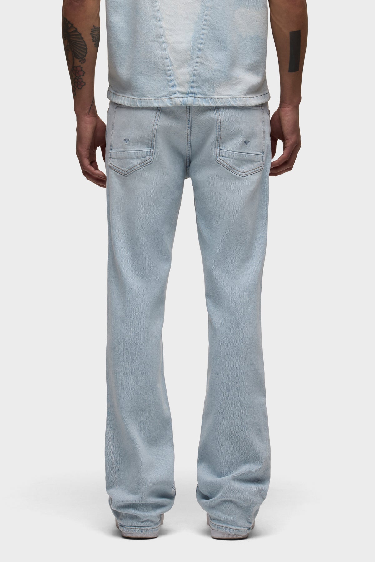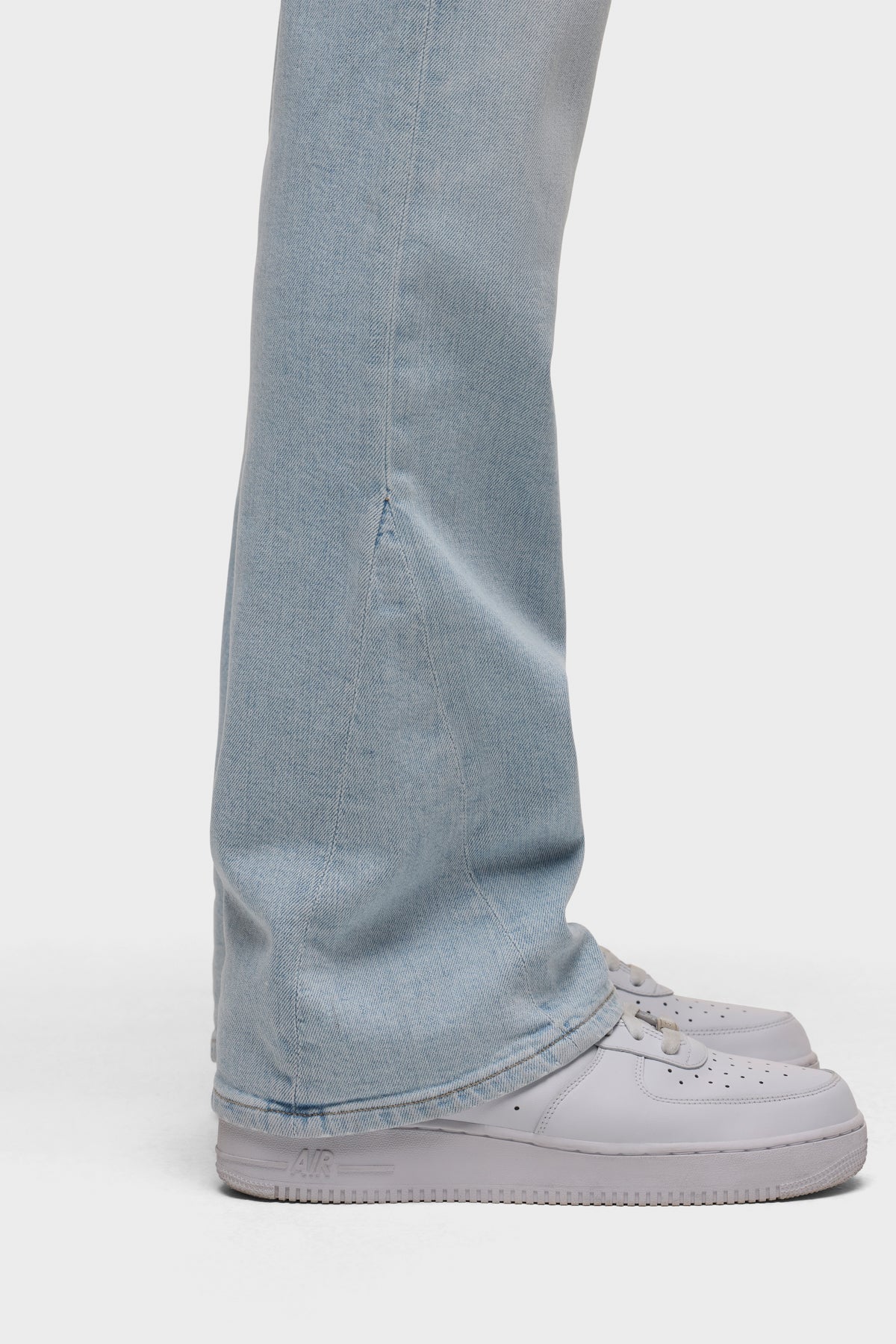 - Our Walker Kick Flare Jean in Lookout is mid-rise and slim through the hip and thigh with a flared bootcut hem. Cut from rigid denim in a super light indigo wash, this pair is finished with classic five-pocket detailing and side seams.