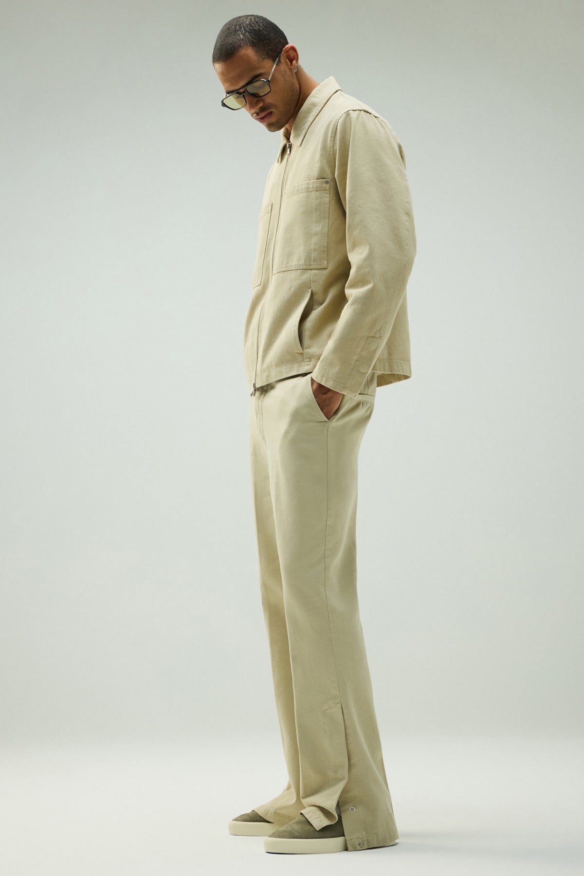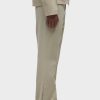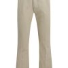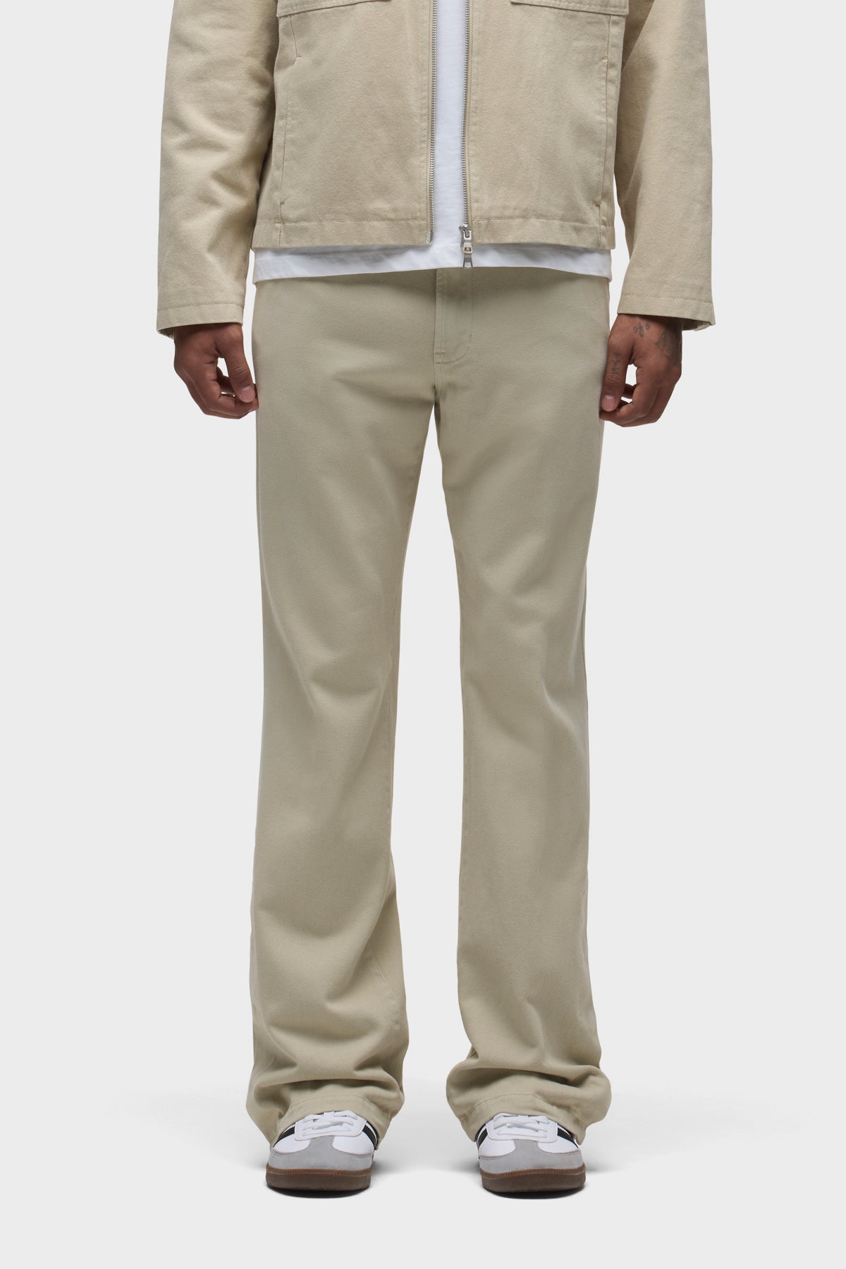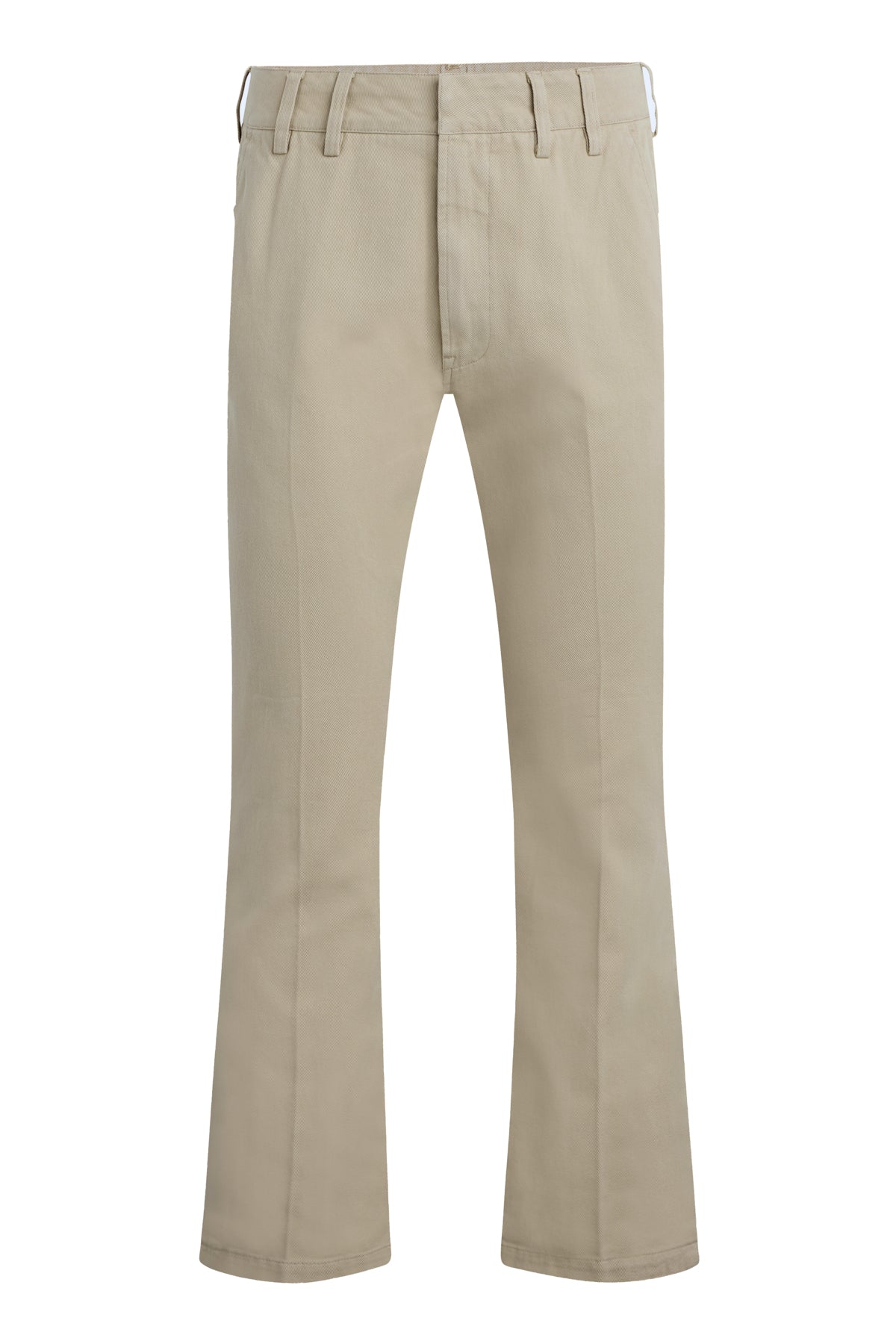 - Our Walker Trouser Pant is an easy, mid-rise fit with a flared bootcut hem, track-inspired details, slash front pockets and back welt pockets. This pair is cut from 100% cotton twill, then overdyed in a dark ecru shade, Desert, and finished with hidden hem snaps, a hook-and-eye closure, and our signature “V” embroidery above the wearer’s right back pocket.