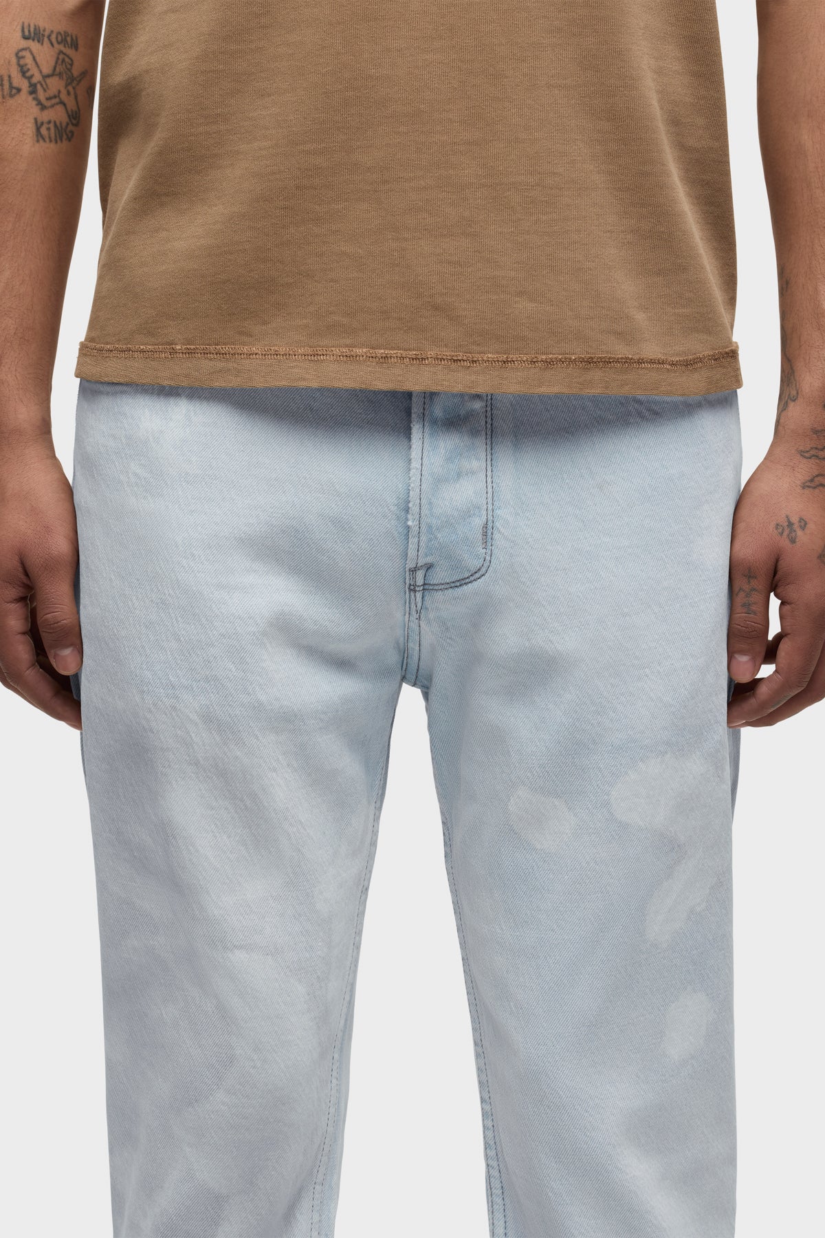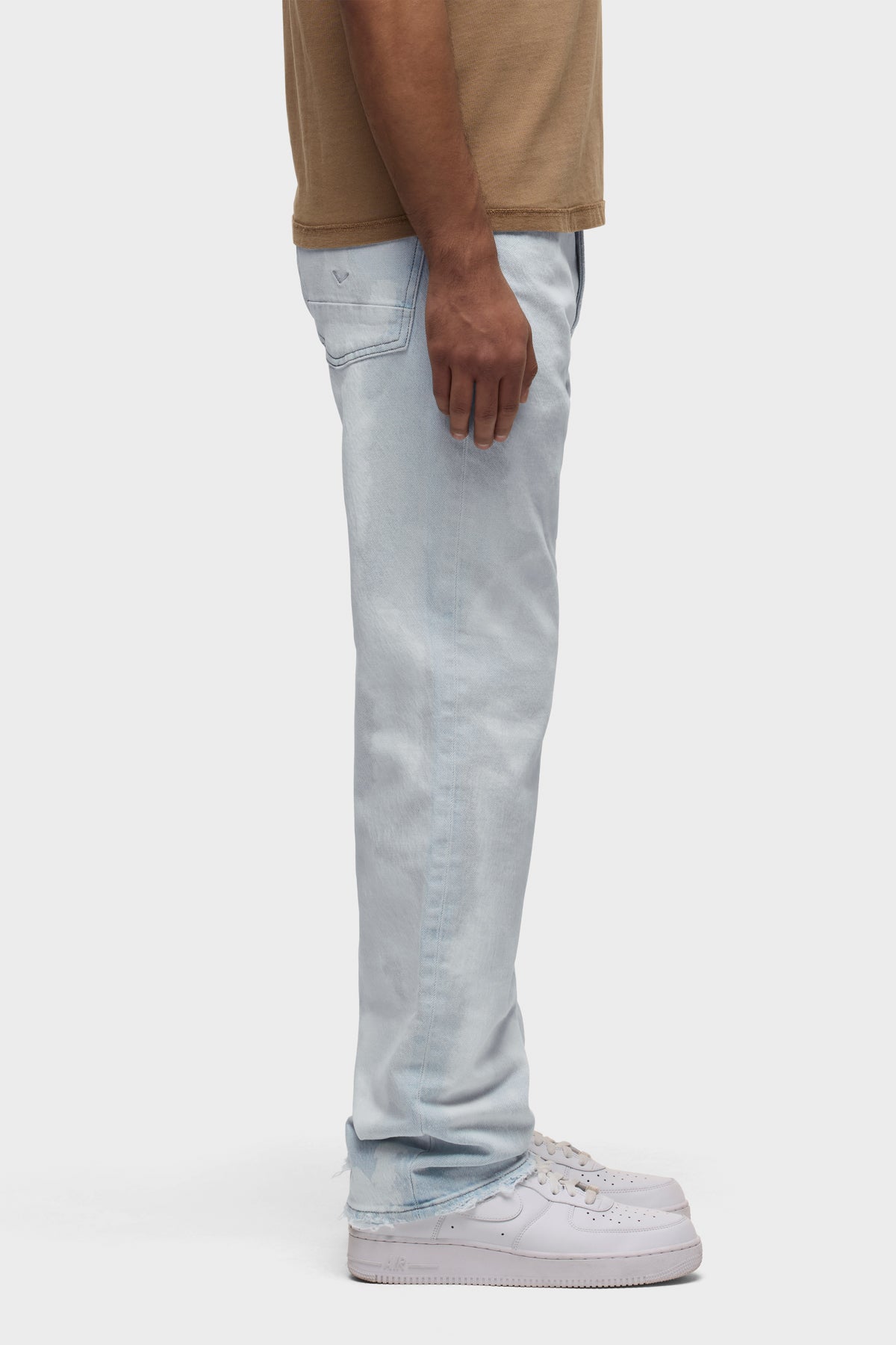 - The Wes Classic Straight Jean is a mid-rise, easy straight leg that fits slim through the hip. Bleached Cloud is a super light indigo wash with an all-over uneven treatment made to look like dirty stains and spots. This pair is made of rigid denim with classic five-pocket detailing. Each pant is custom dyed, and one of a kind. The dying process can vary from piece to piece and is what makes this garment unique.