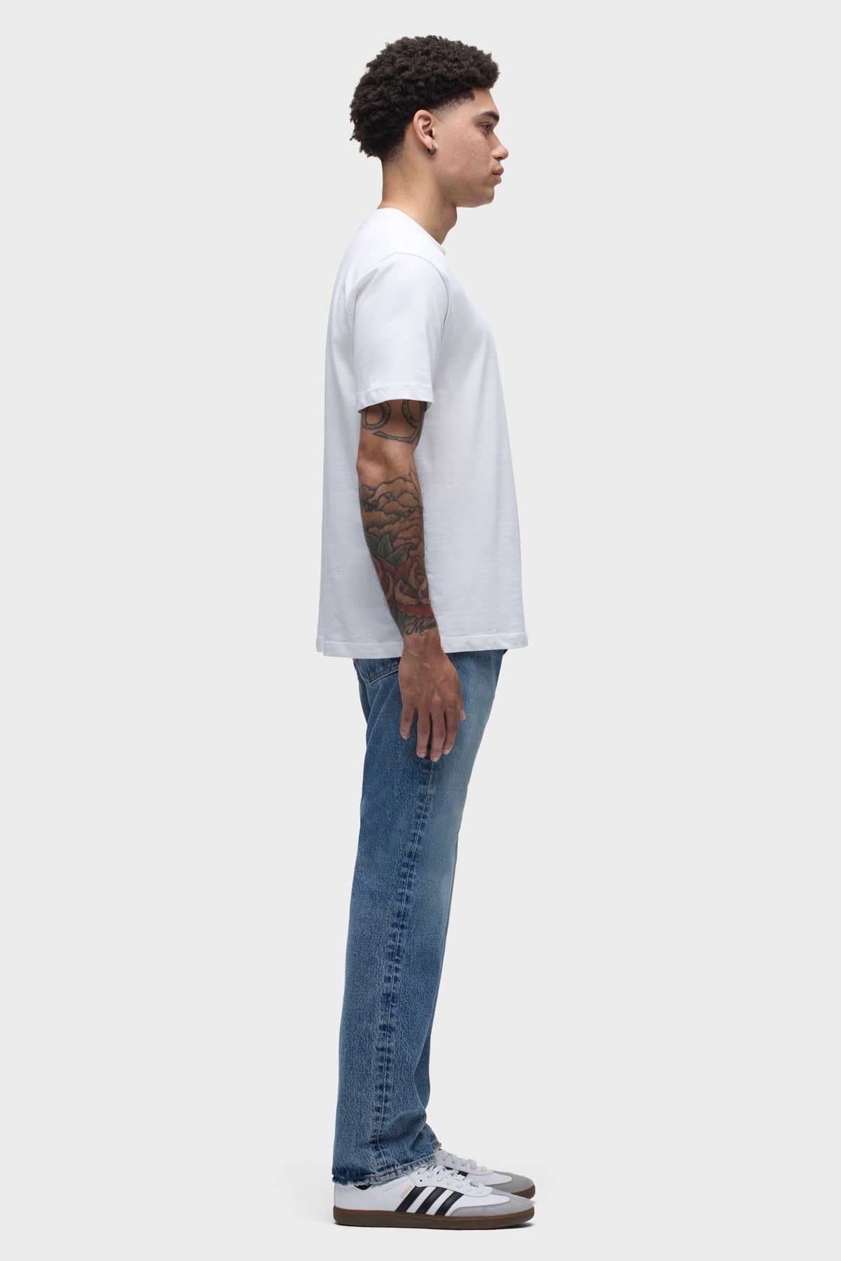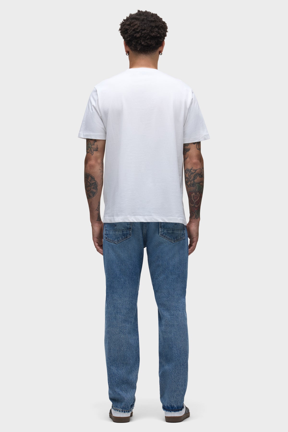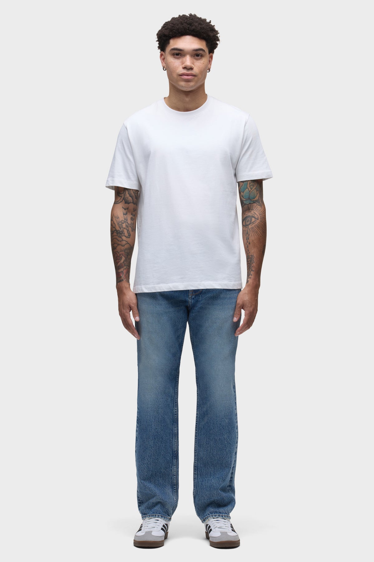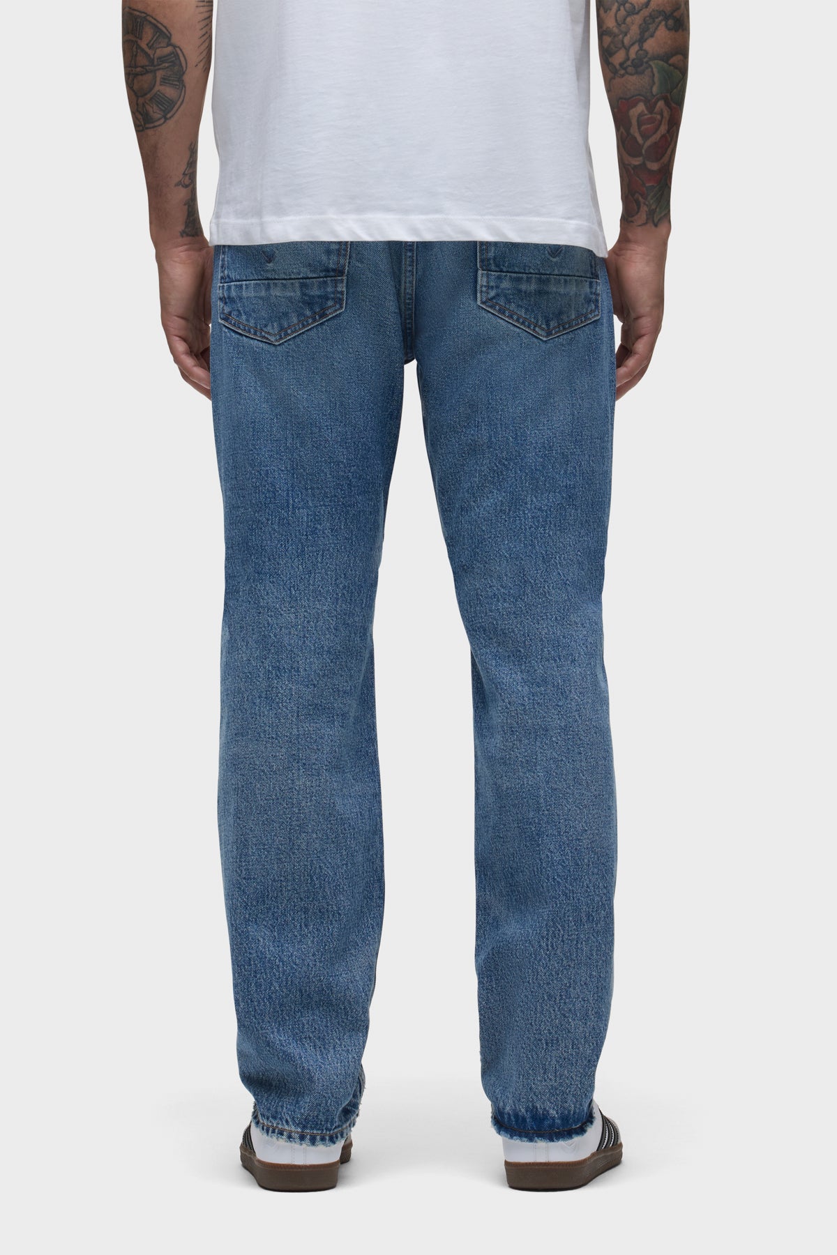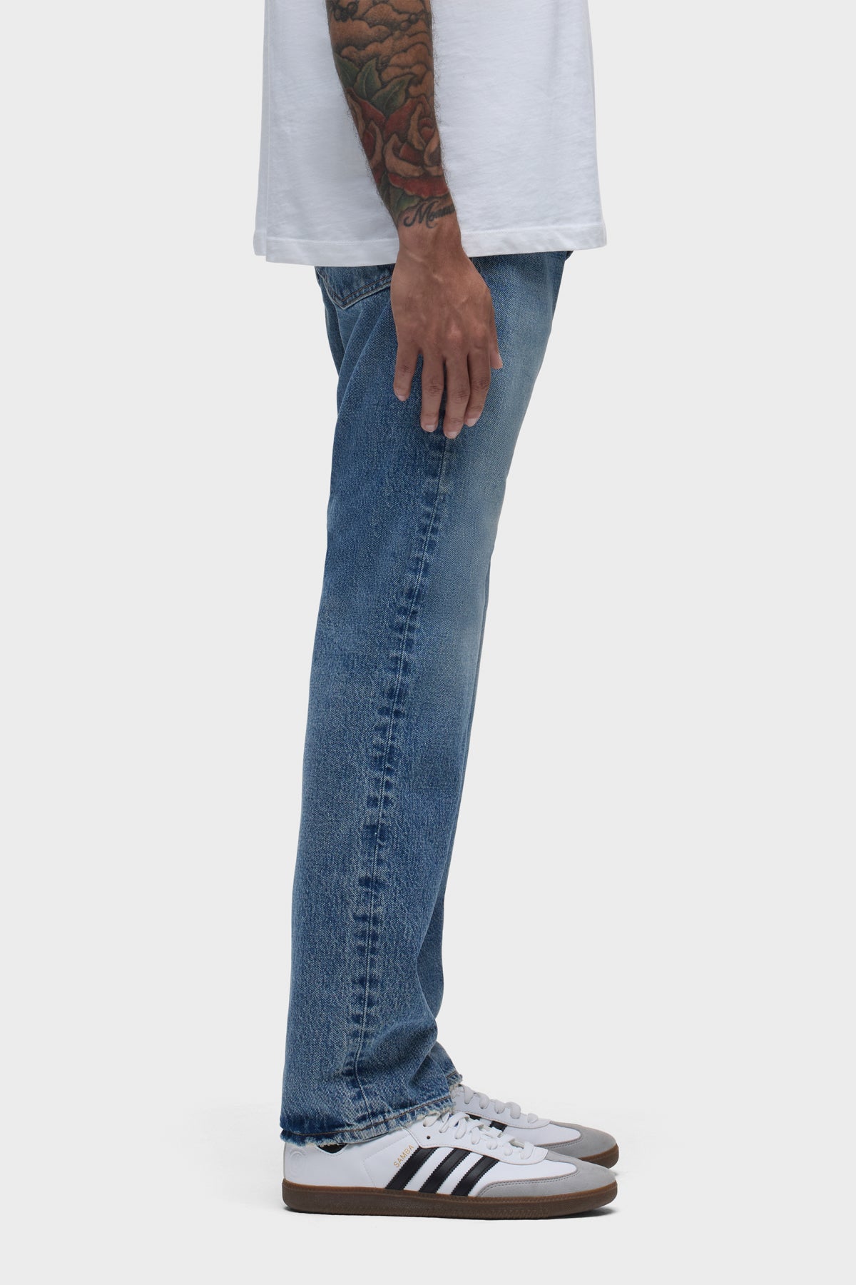 - The Wes Classic Straight Leg Jean is a mid-rise, easy straight leg that fits slim through the hip. The medium indigo wash, Indio, is finished with acid washing, stone washing, bleaching, whiskering and edge grinding. This pair is made of rigid denim with classic five-pocket detailing, contrast topstitching, stainless steel bright-blasted hardware, and a saddle leather back patch.