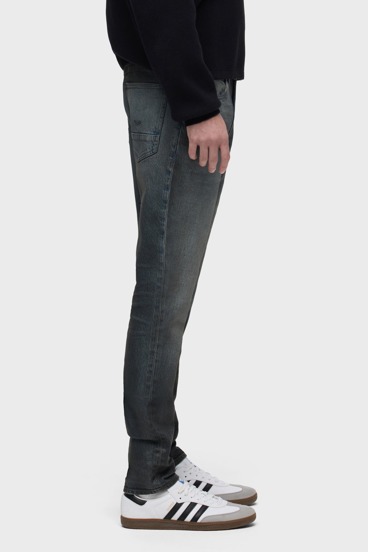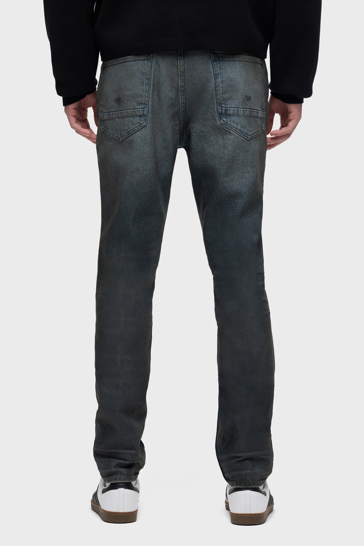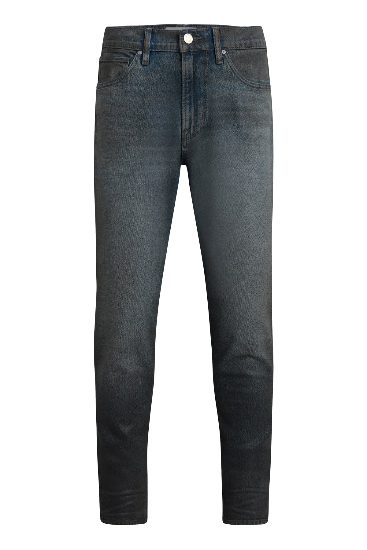 - For a snug fit, look no further than our Zack Skinny Jean. Mid-rise, slim through the hip and thigh with a narrow leg and 34” inseam. Done in premium comfort stretch denim with a medium, vintage-inspired Coated Charcoal wash and a mist coating for subtle sheen and uneven pigmentation. Dull nickel hardware and signature embroidery on back waistband finish the look.