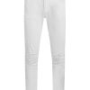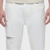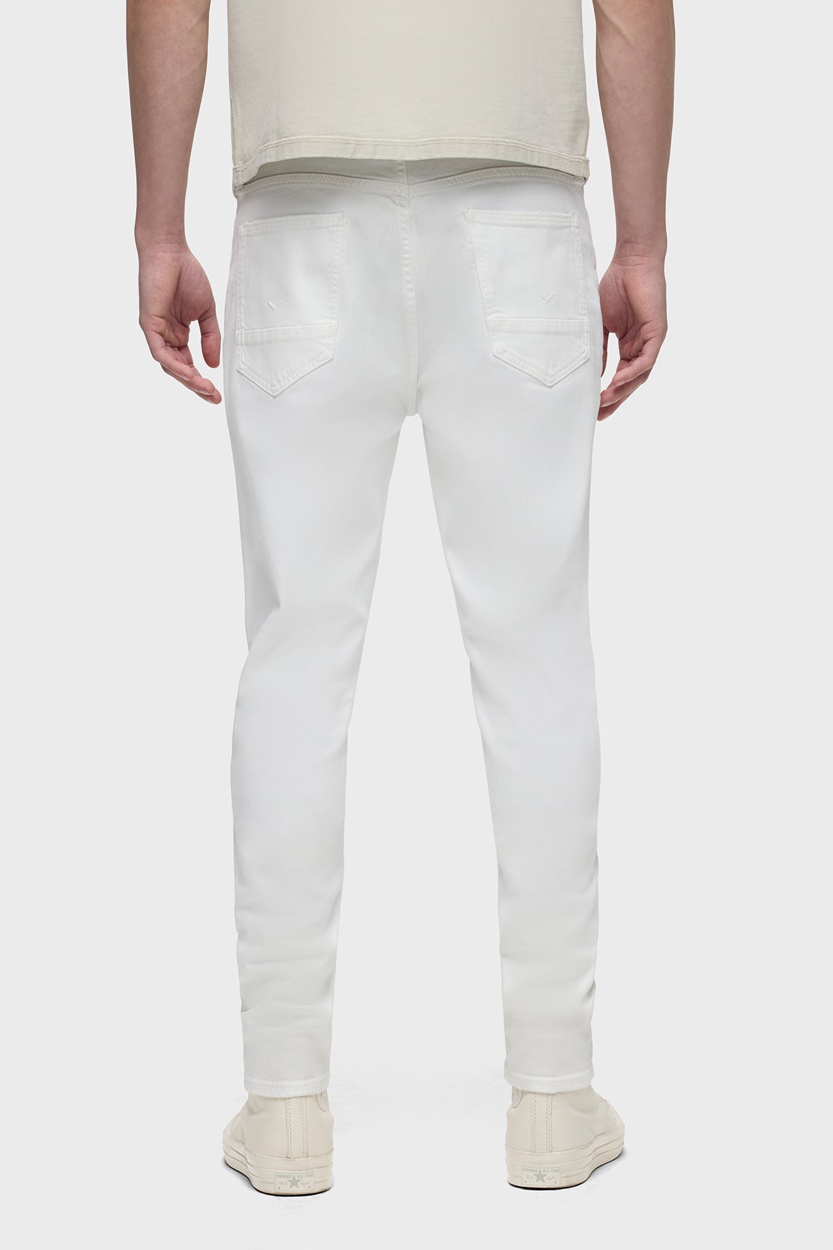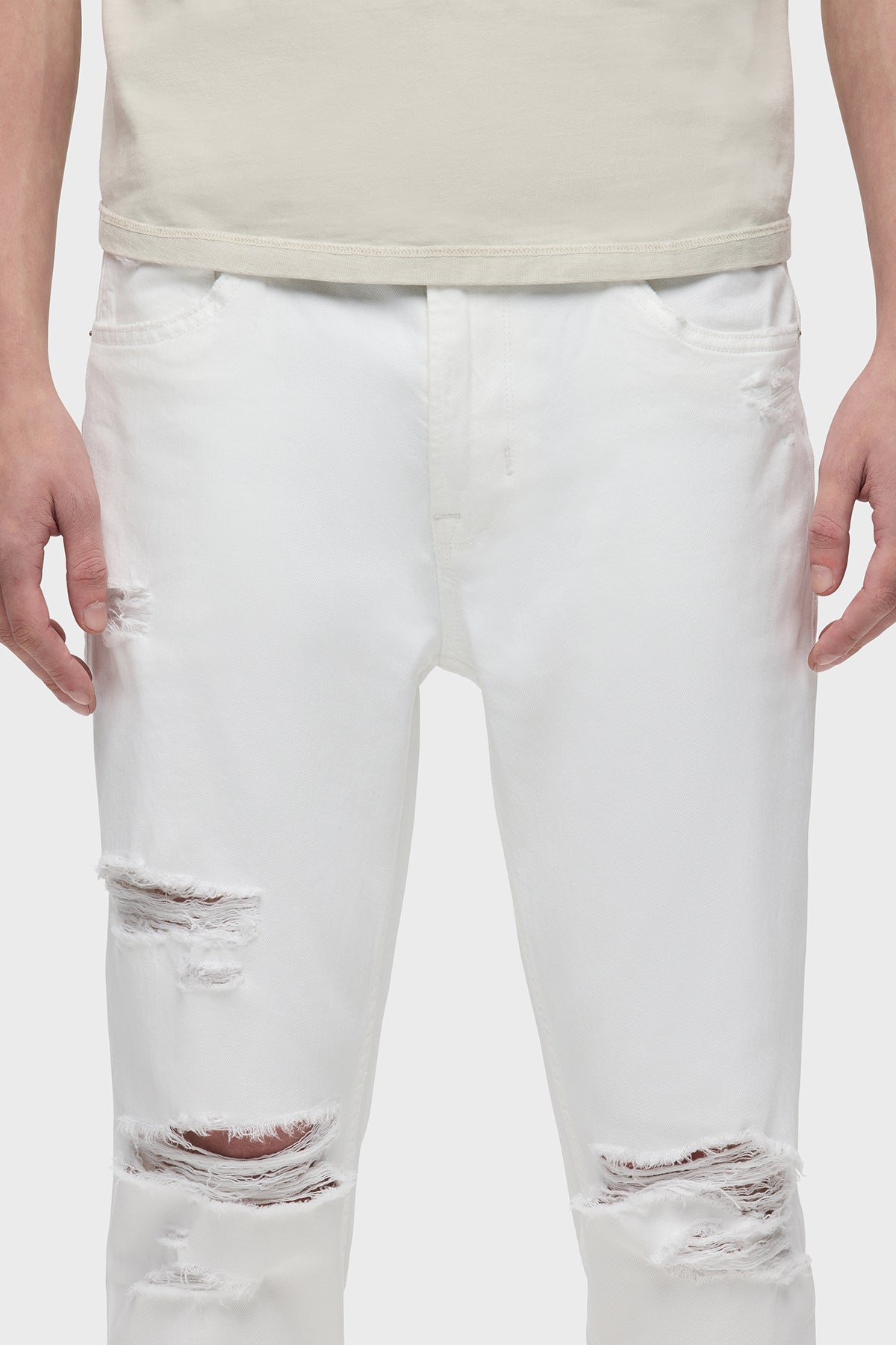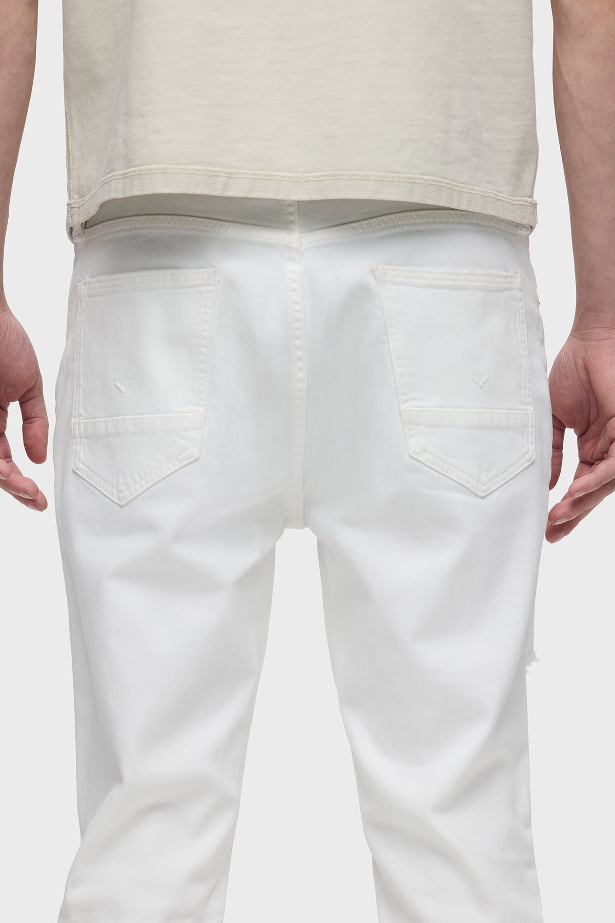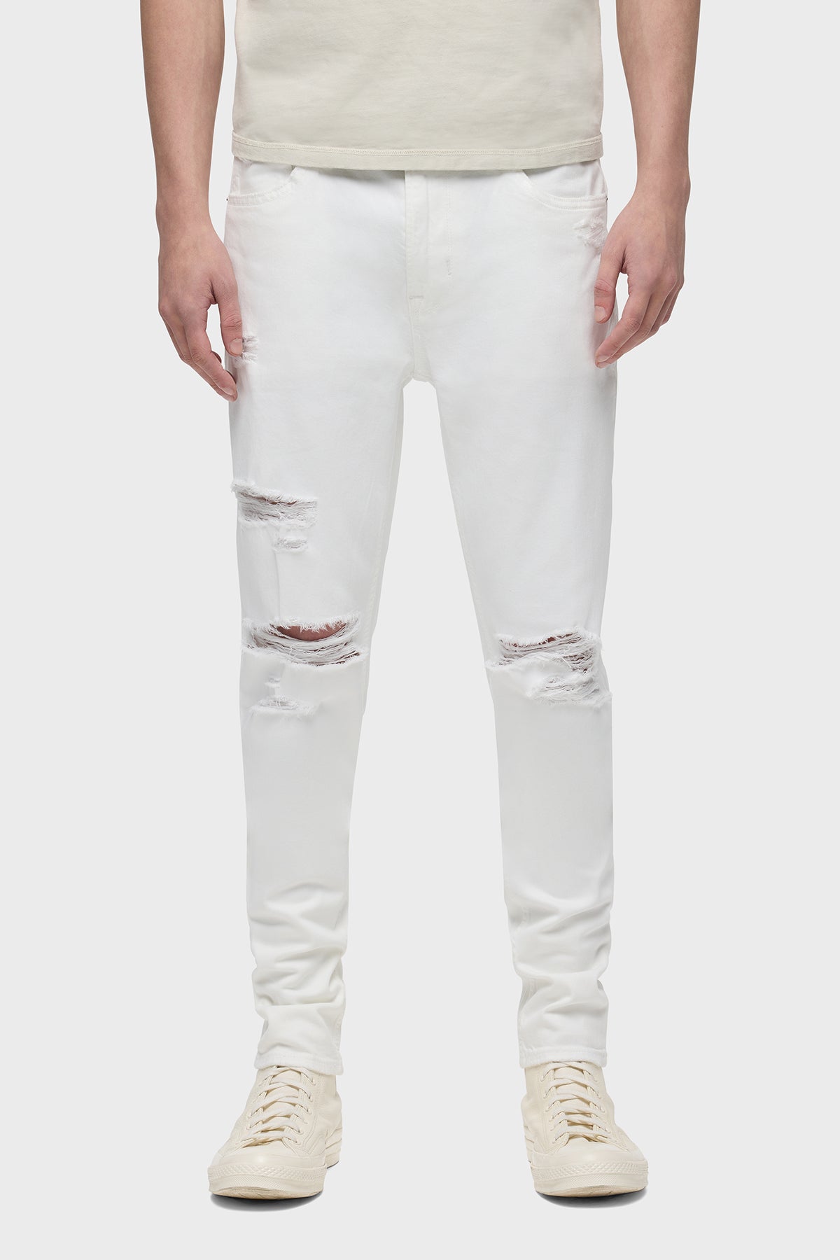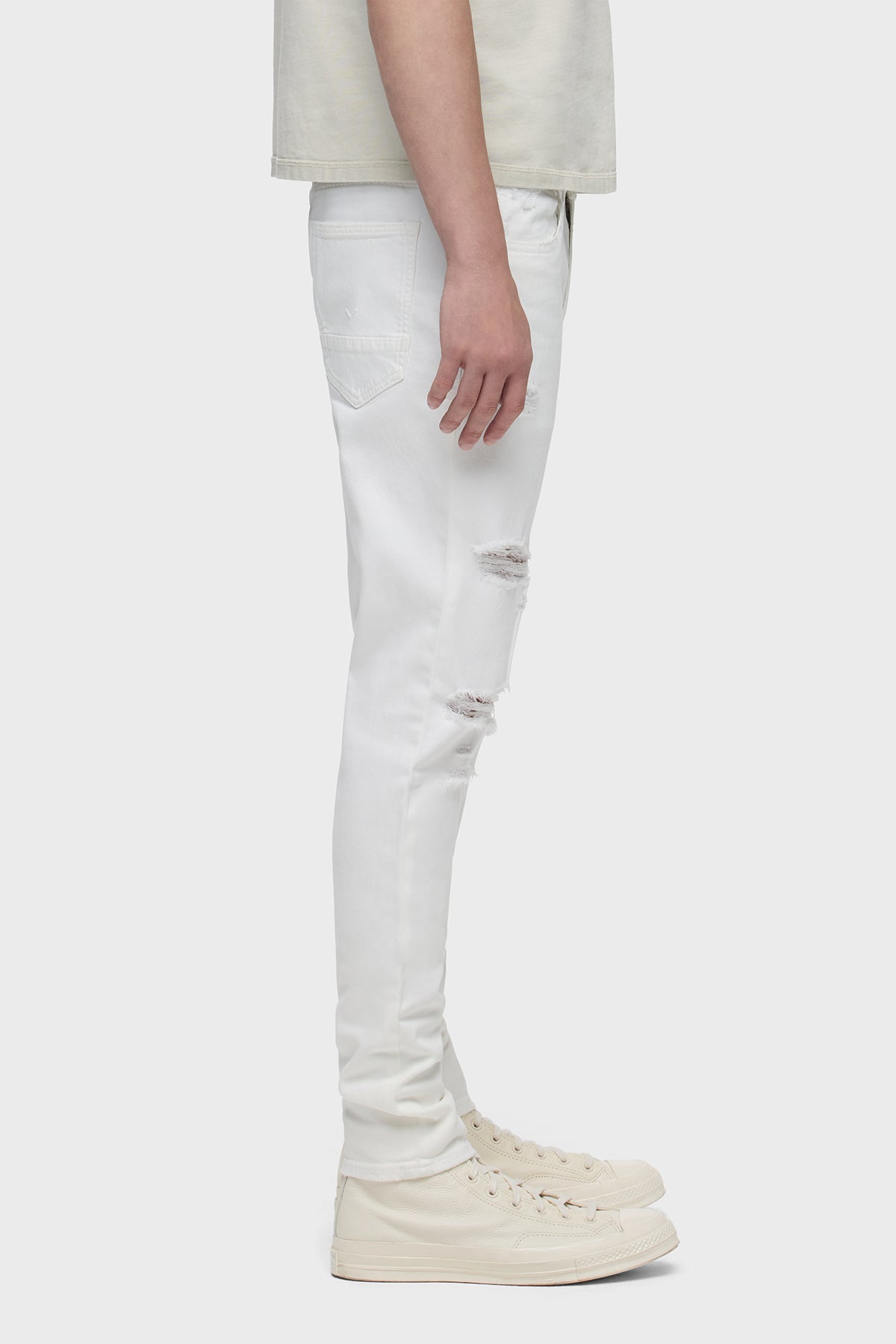- For a snug fit, look no further than our Zack Skinny Jean. Mid-rise, slim through the hip and thigh with a narrow leg. Unknown is a white wash, heavily distressed at the knee, it’s cut from 12.75-ounce Italian denim that has an authentic, worn-in vintage feel with a hint of stretch for added softness, comfort, and flexibility.