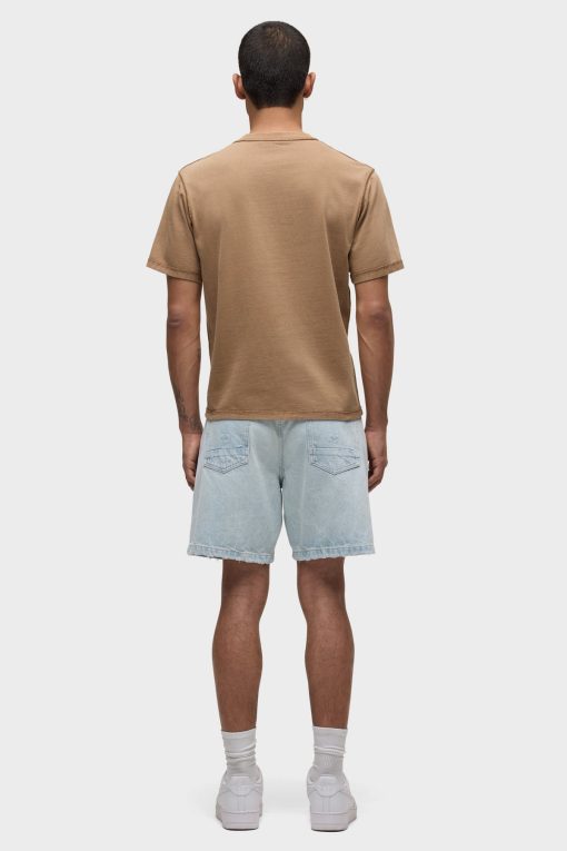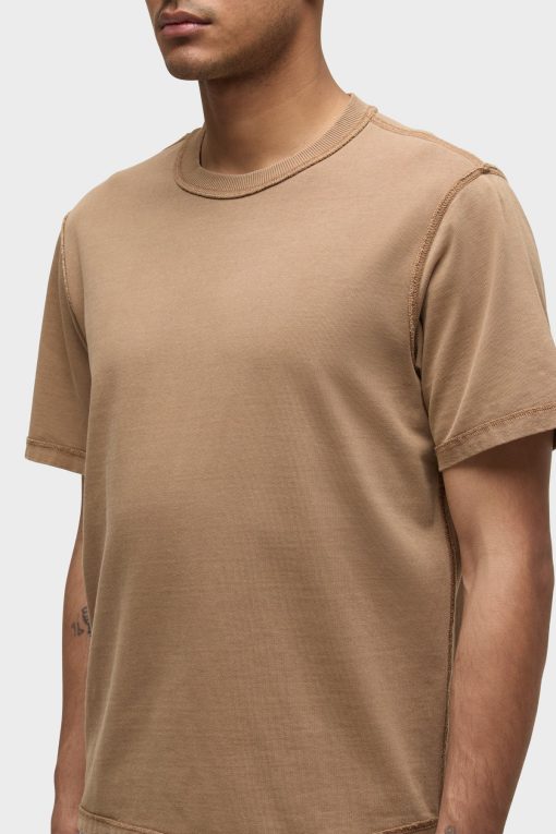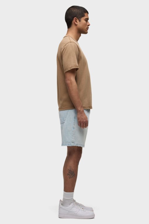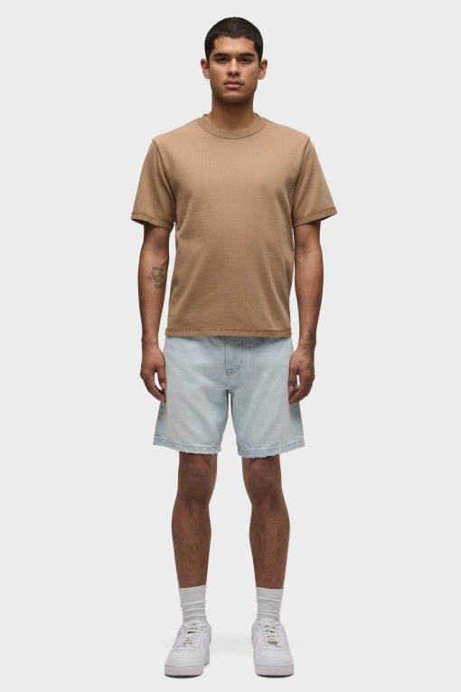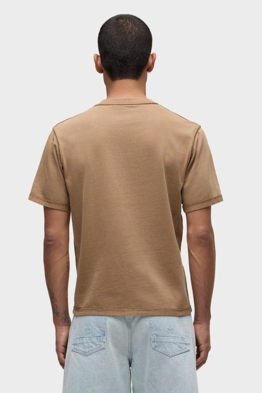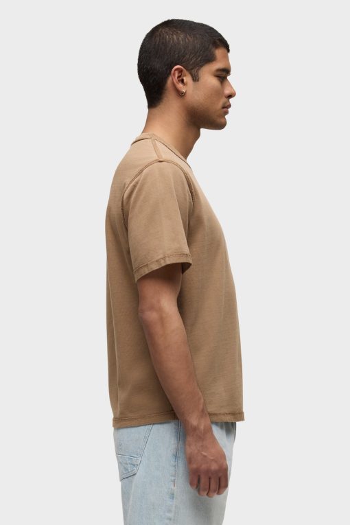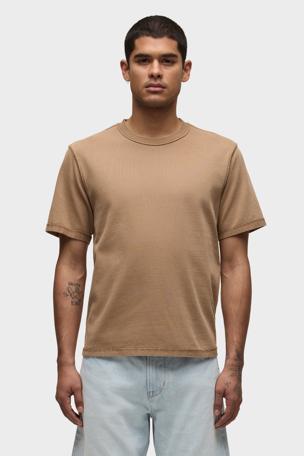 - Our Heavyweight Tee in Desert Brush is made from 100% cotton in a reactive overdyed darker brown shade with a slightly cropped, boxy fit and a ribbed crew neckline. The tee is finished with reverse-seam details and stone washed to give a soft feel and worn-in look.