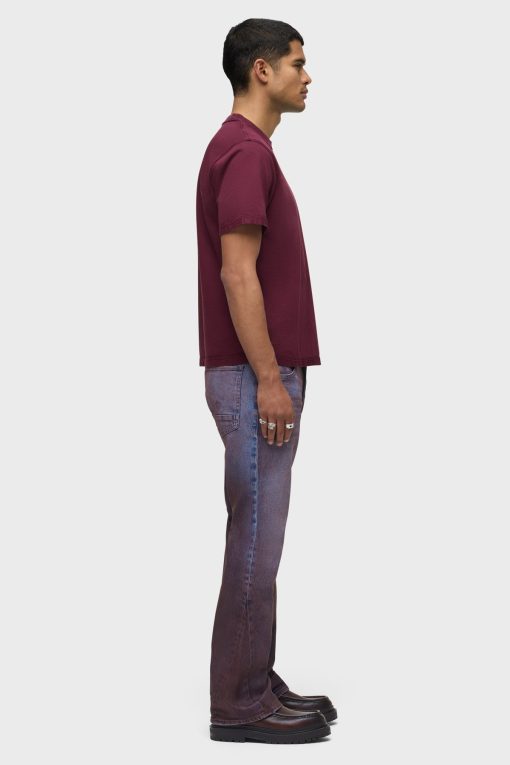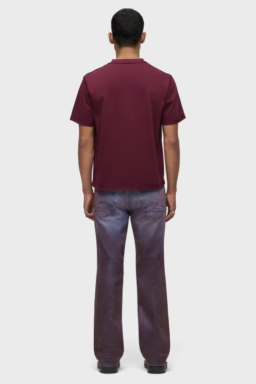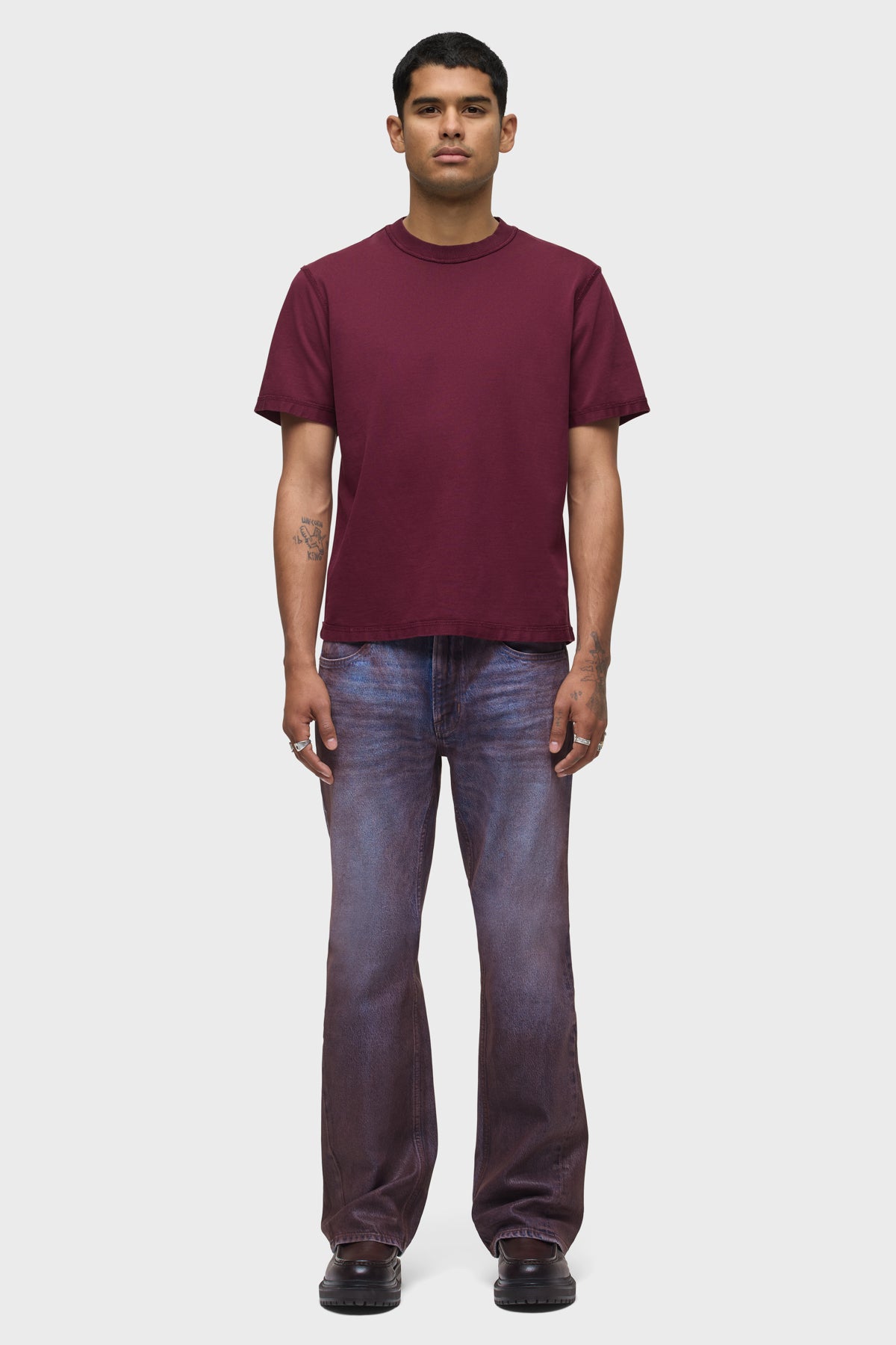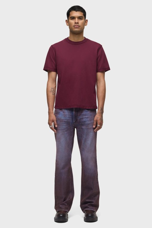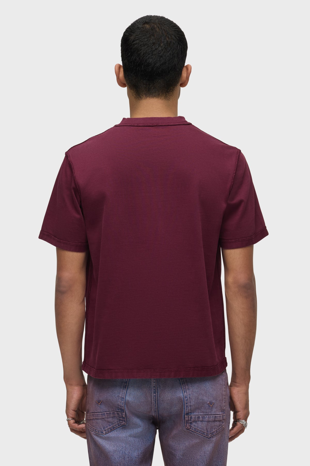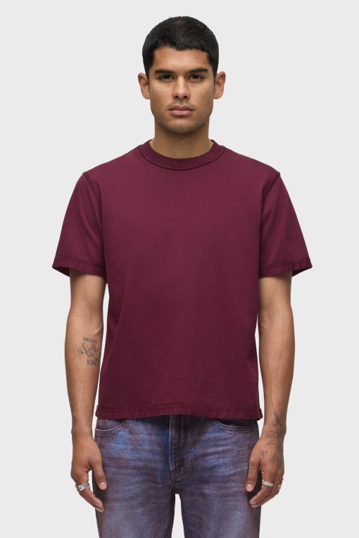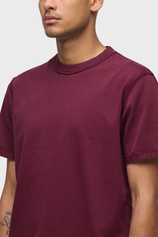 - Our Heavyweight Tee in Port is made from 100% cotton in a maroon shade with a slightly cropped, boxy fit and a ribbed crew neckline. The tee is finished with reverse-seam details and stone washed to give a soft feel and worn-in look.