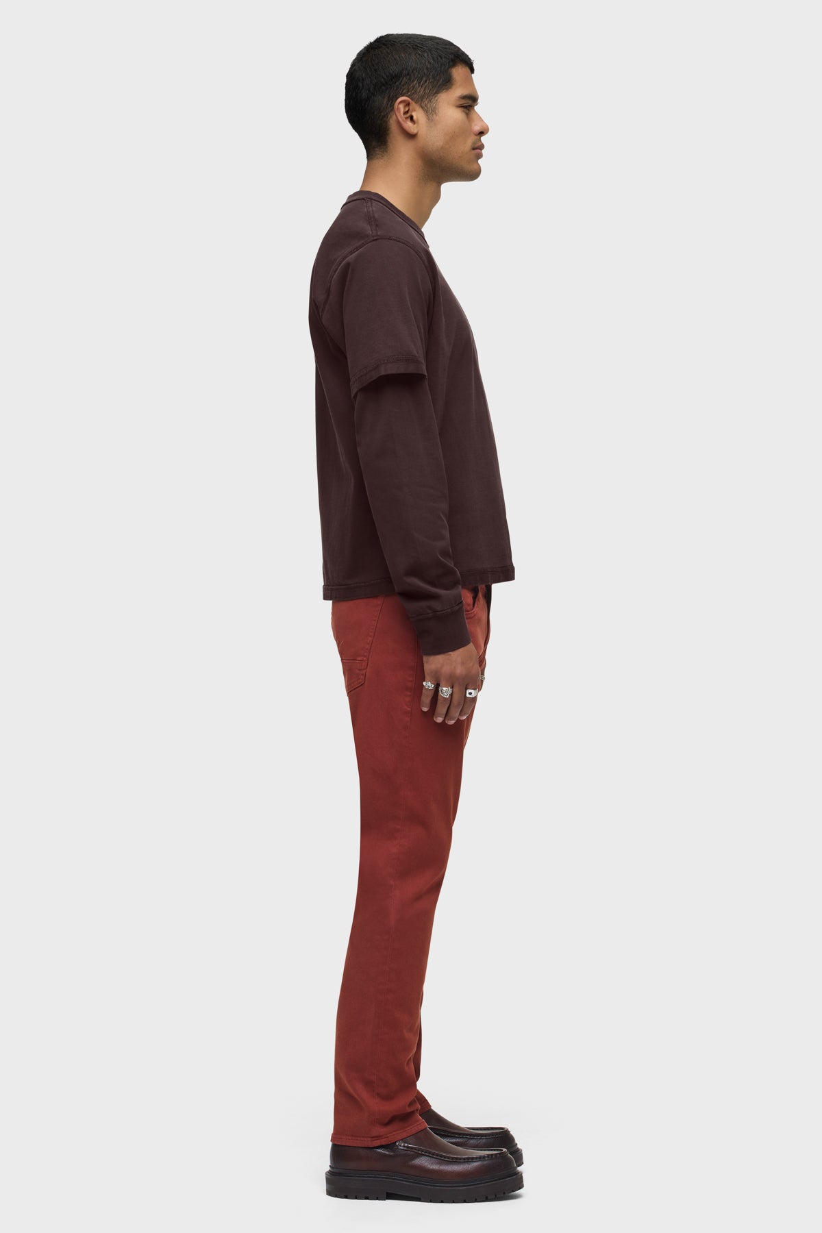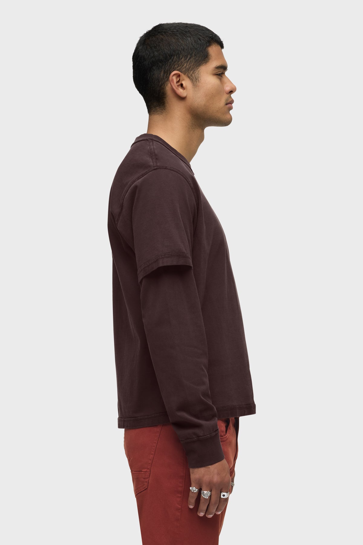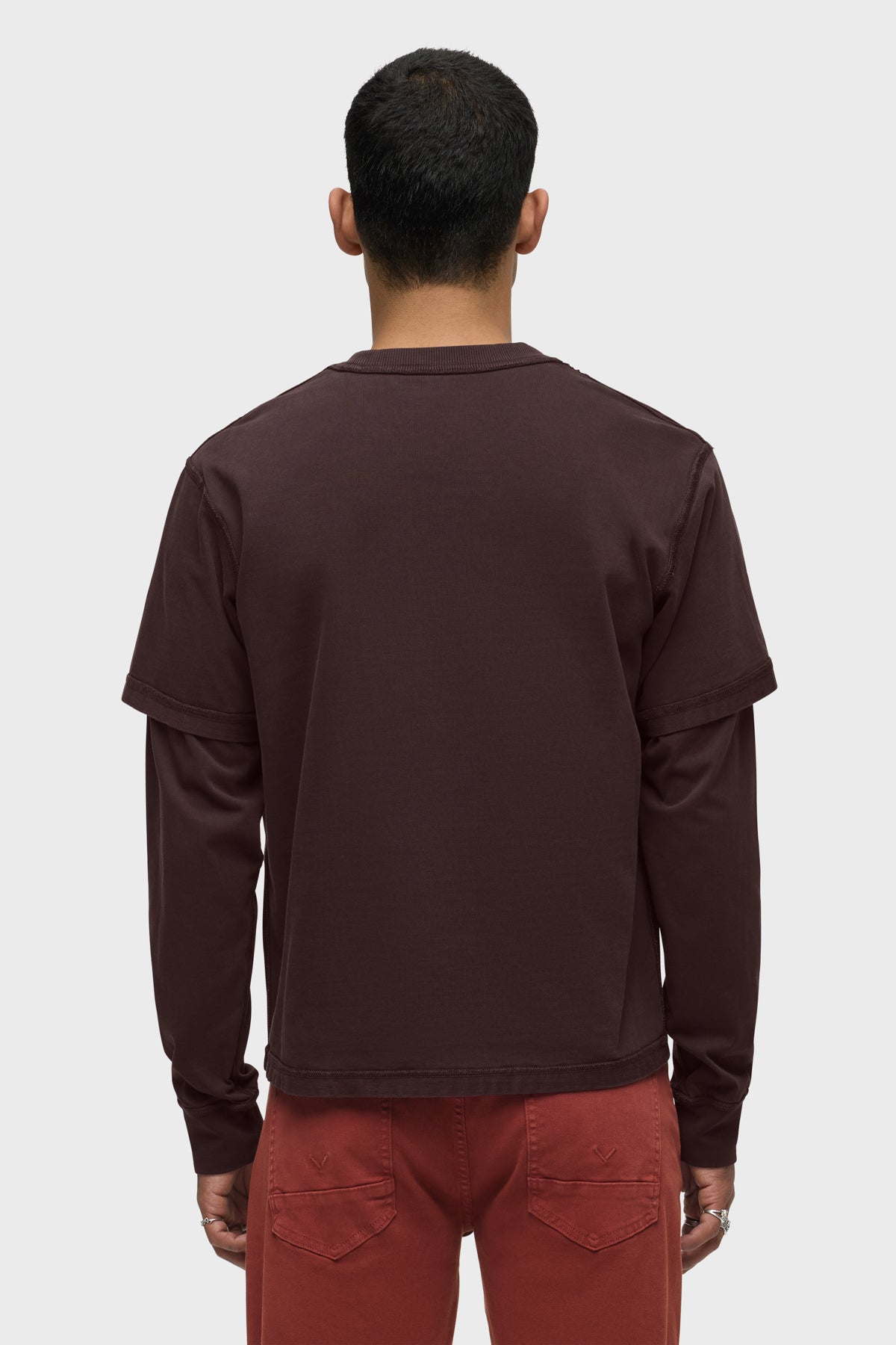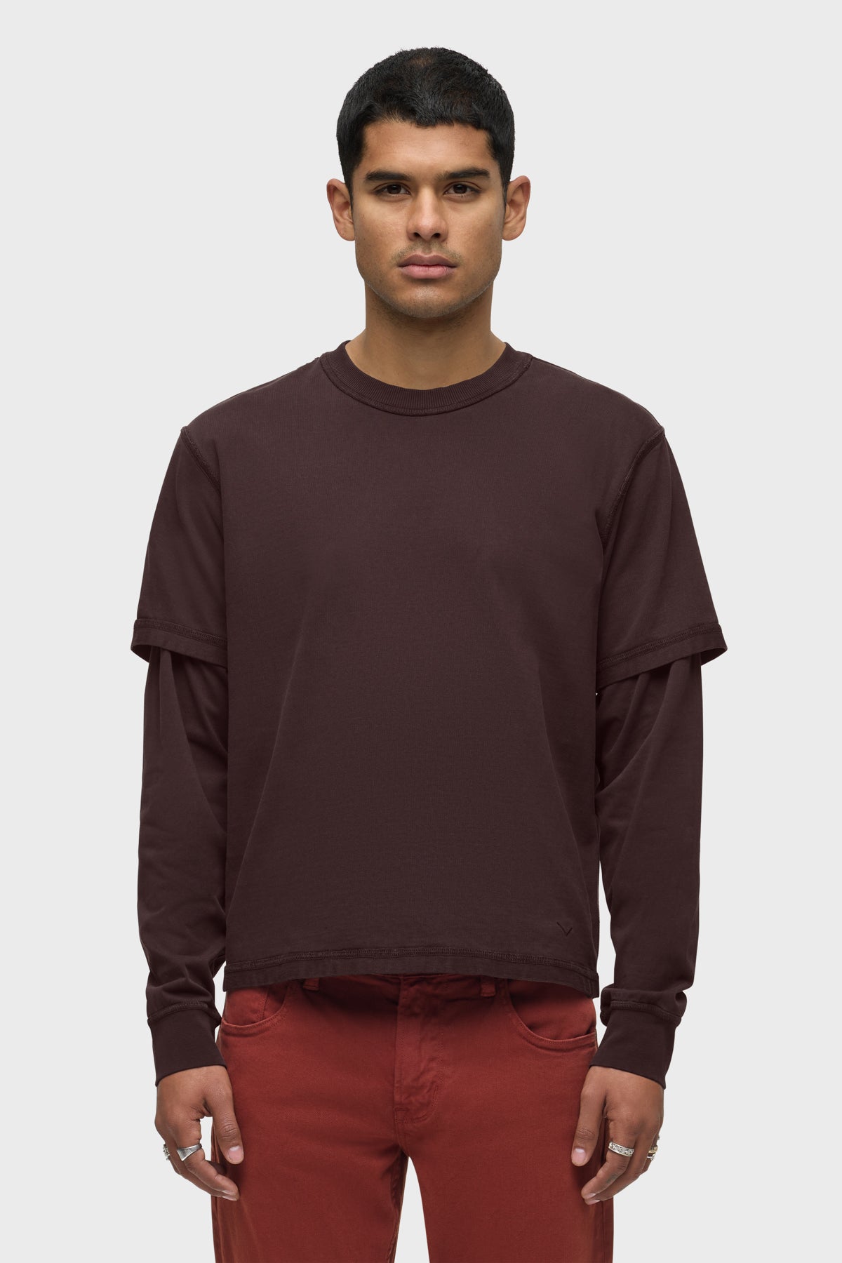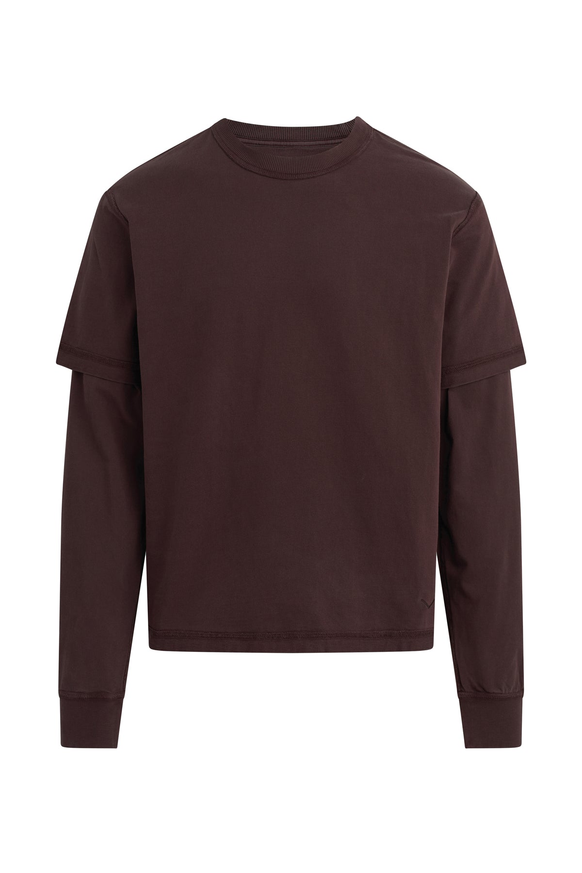 - The Hybrid Long Sleeve Tee is made from heavyweight cotton jersey in Rich Brown, a dark brown shade. The style features the throwback combo of a relaxed-fit short sleeve tee layered over a lightweight cotton jersey long sleeve tee.
