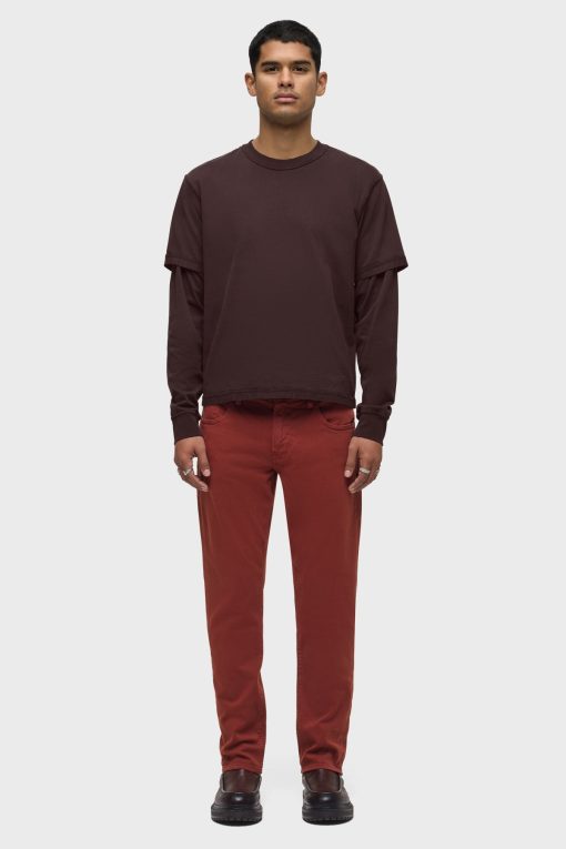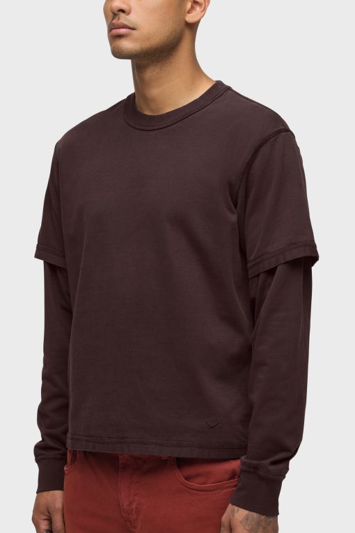 - The Hybrid Long Sleeve Tee is made from heavyweight cotton jersey in Rich Brown, a dark brown shade. The style features the throwback combo of a relaxed-fit short sleeve tee layered over a lightweight cotton jersey long sleeve tee.