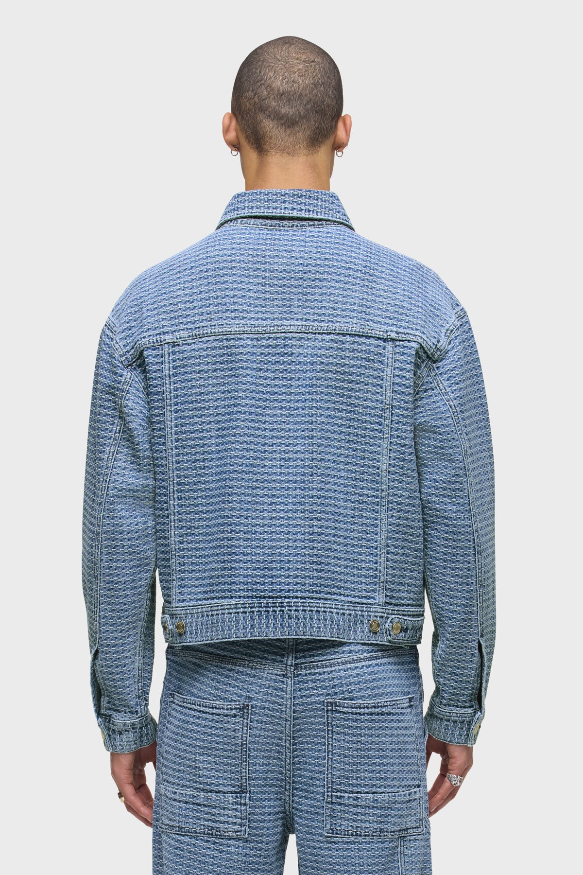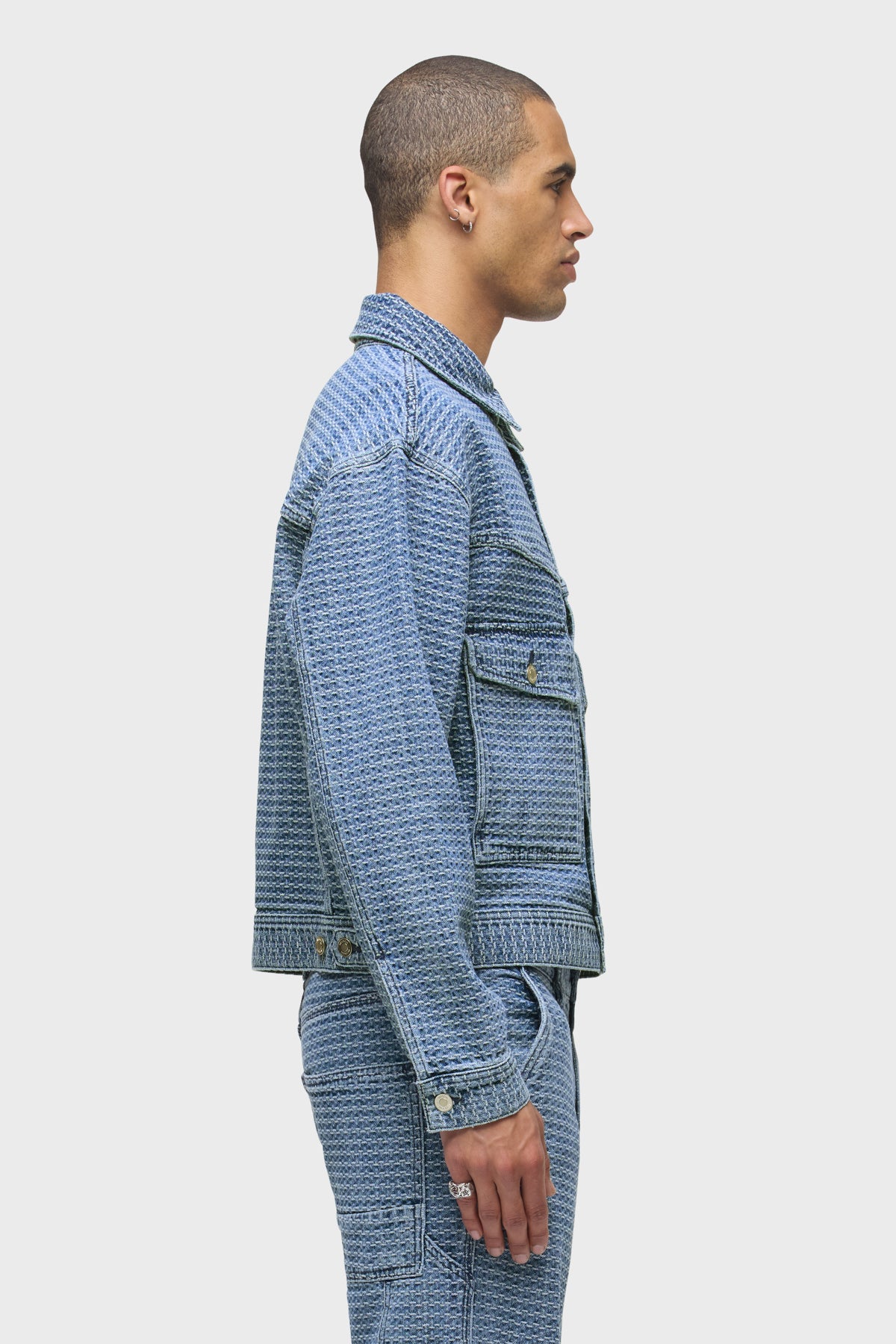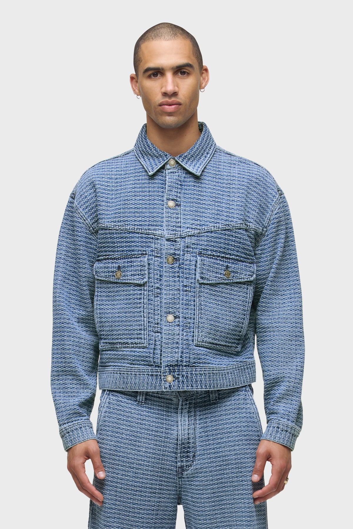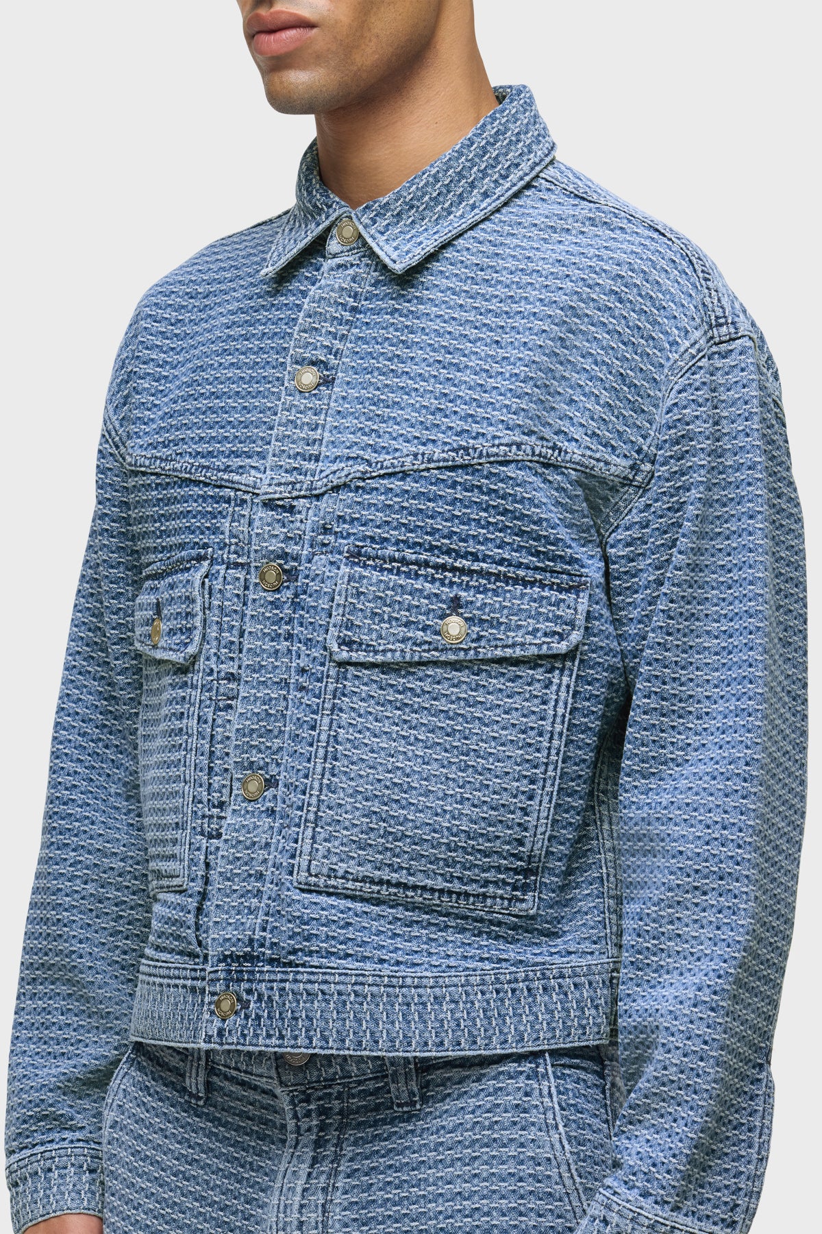 - A new interpretation of our classic trucker jacket, the Trucker Jacket in Jacquard Indigo gives a nod to western design with a front and back yolk. This jacket features an indigo jacquard fabrication for added visual interest and texture.