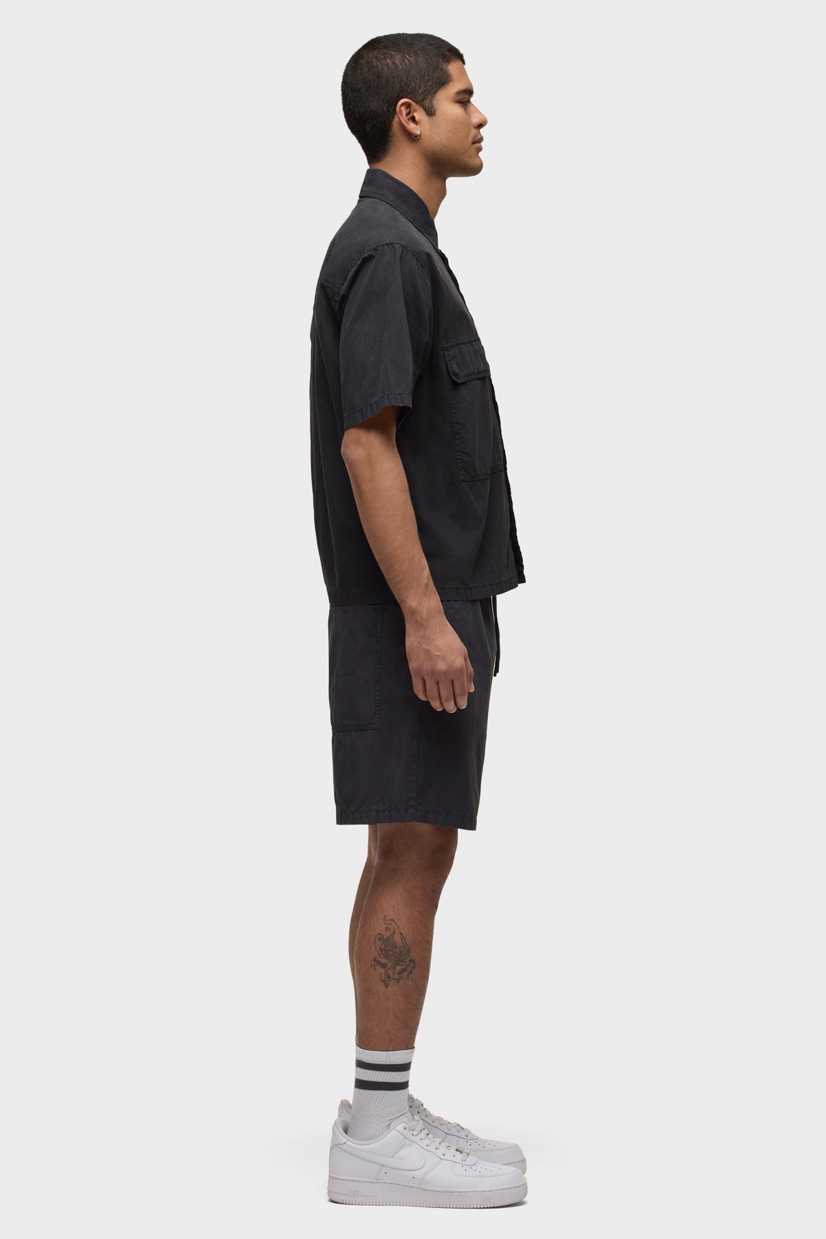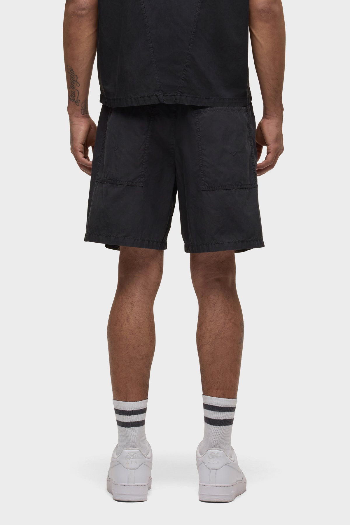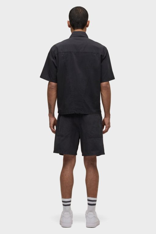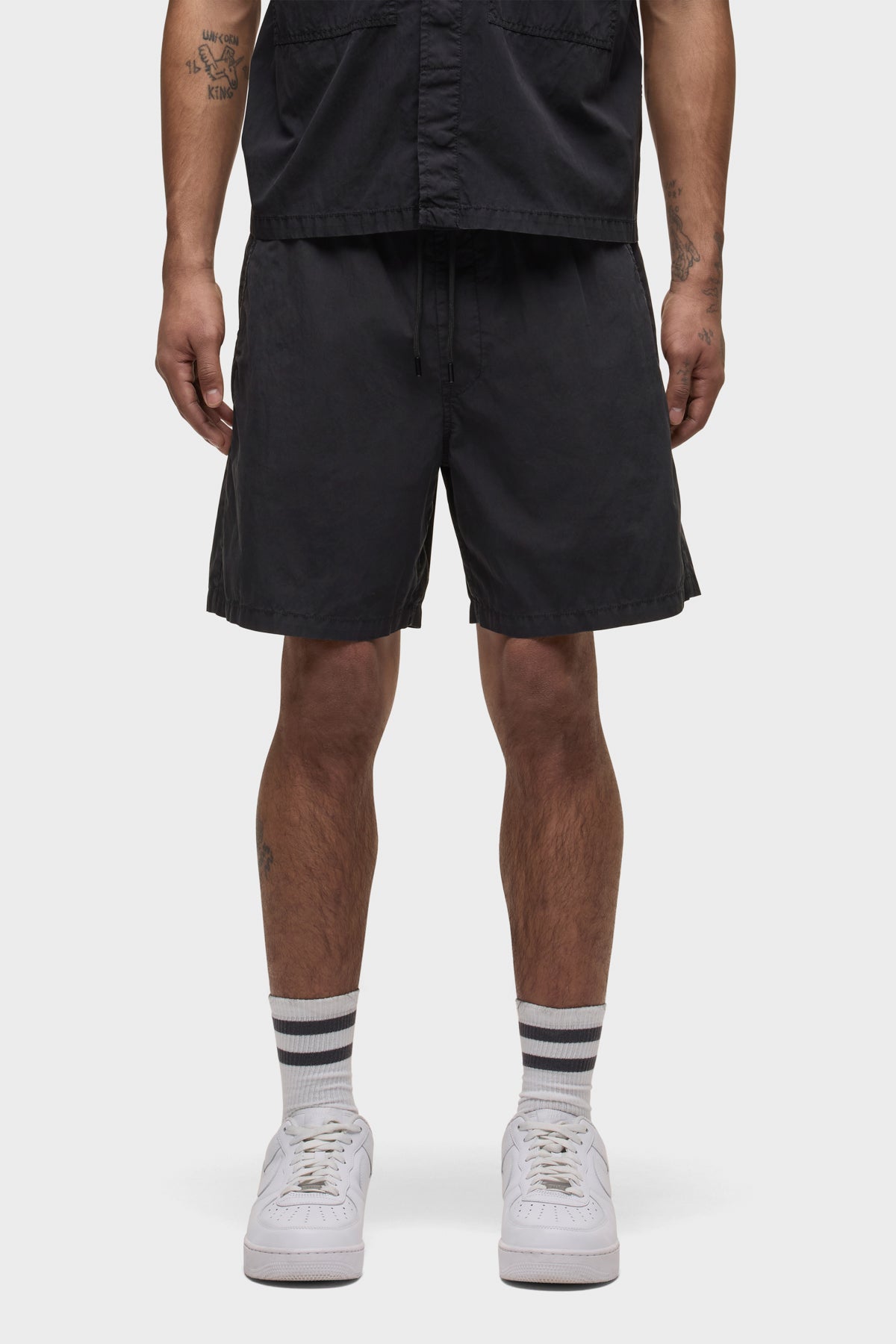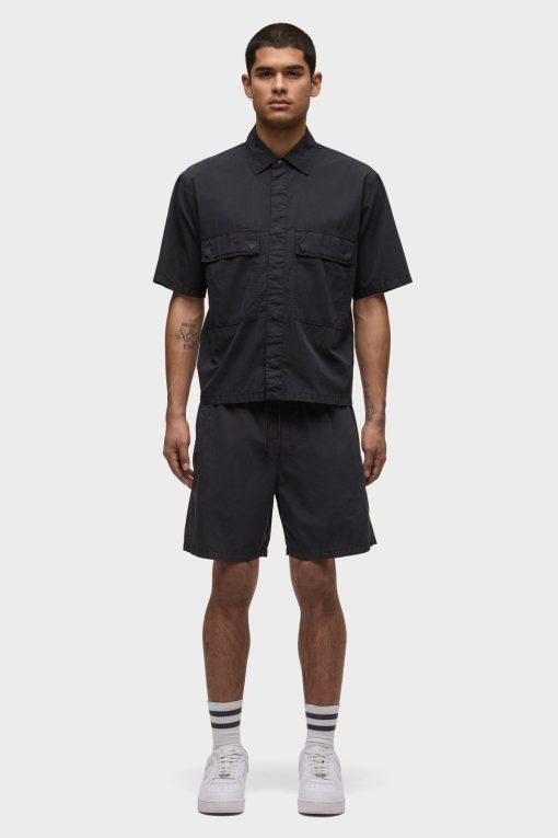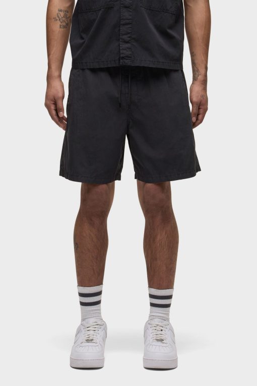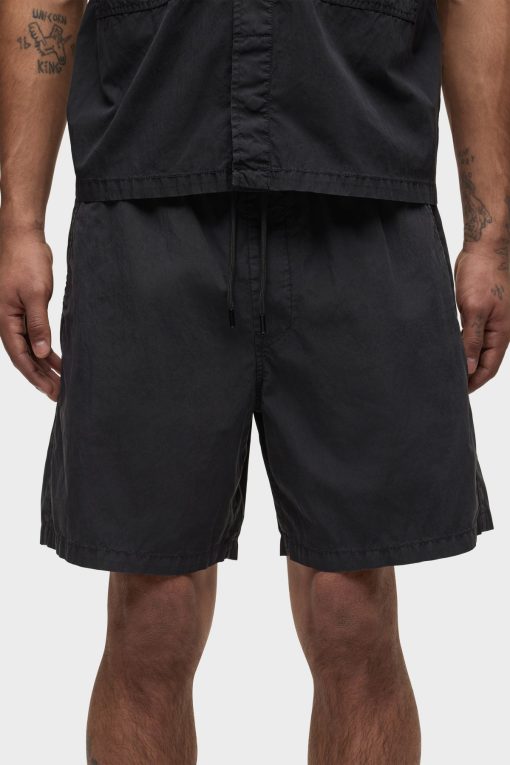 - Crafted from lightweight nylon in an overdyed black shade, the Nylon Drawstring Short in Black Slate has a relaxed fit and slightly shorter length. A drawcord waistband and two back patch pockets finish the look.