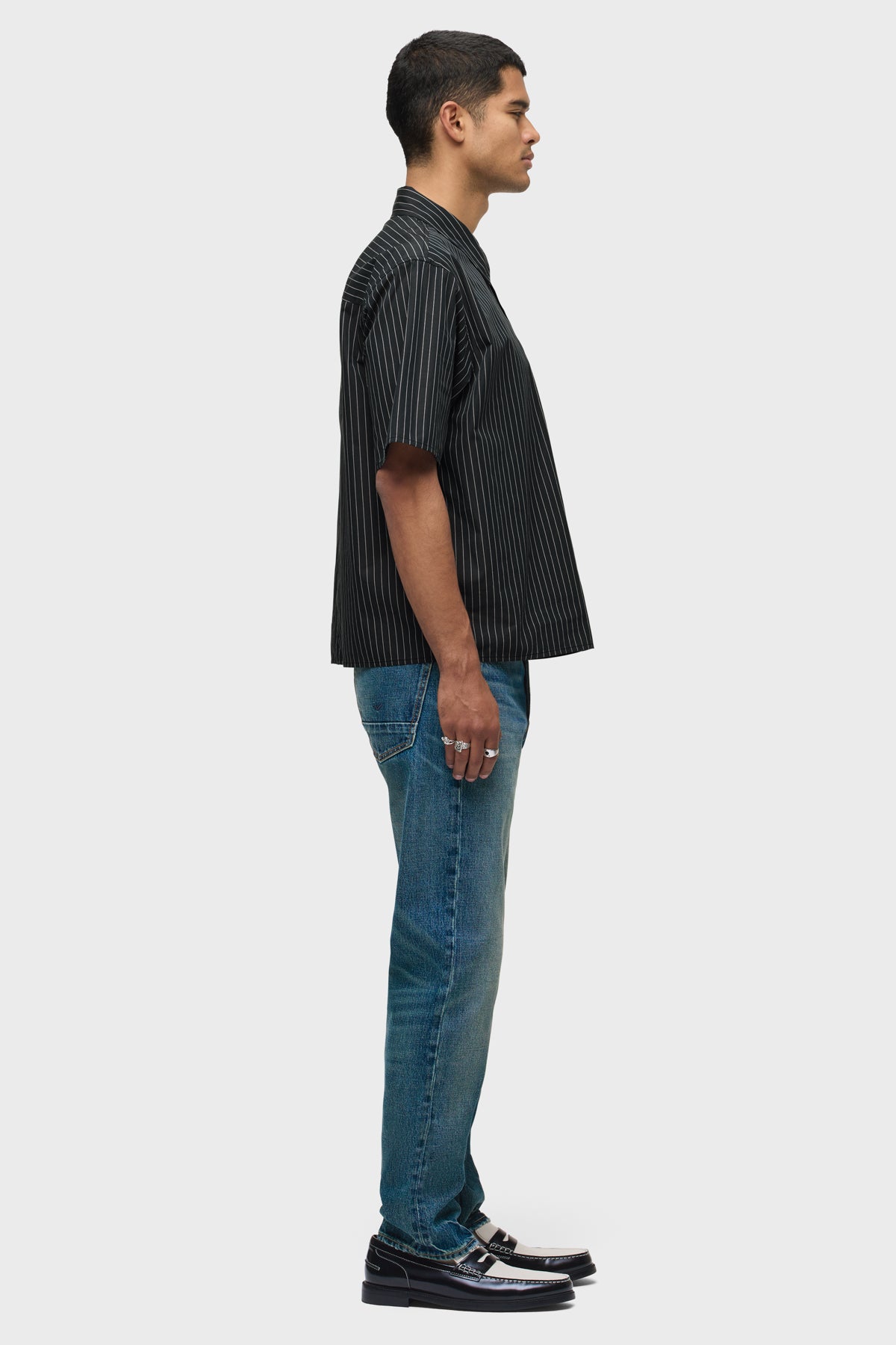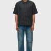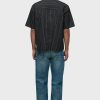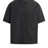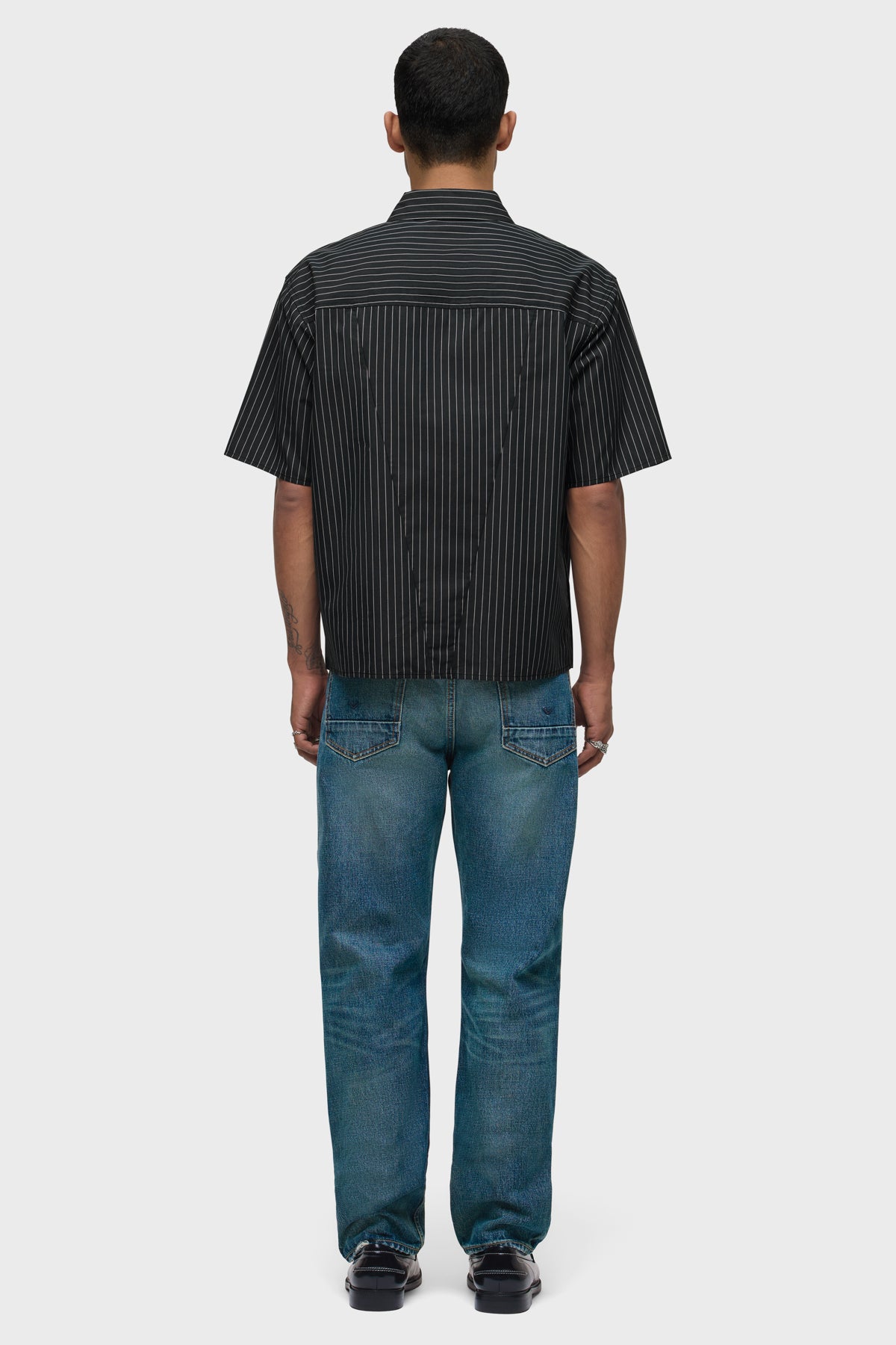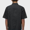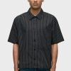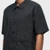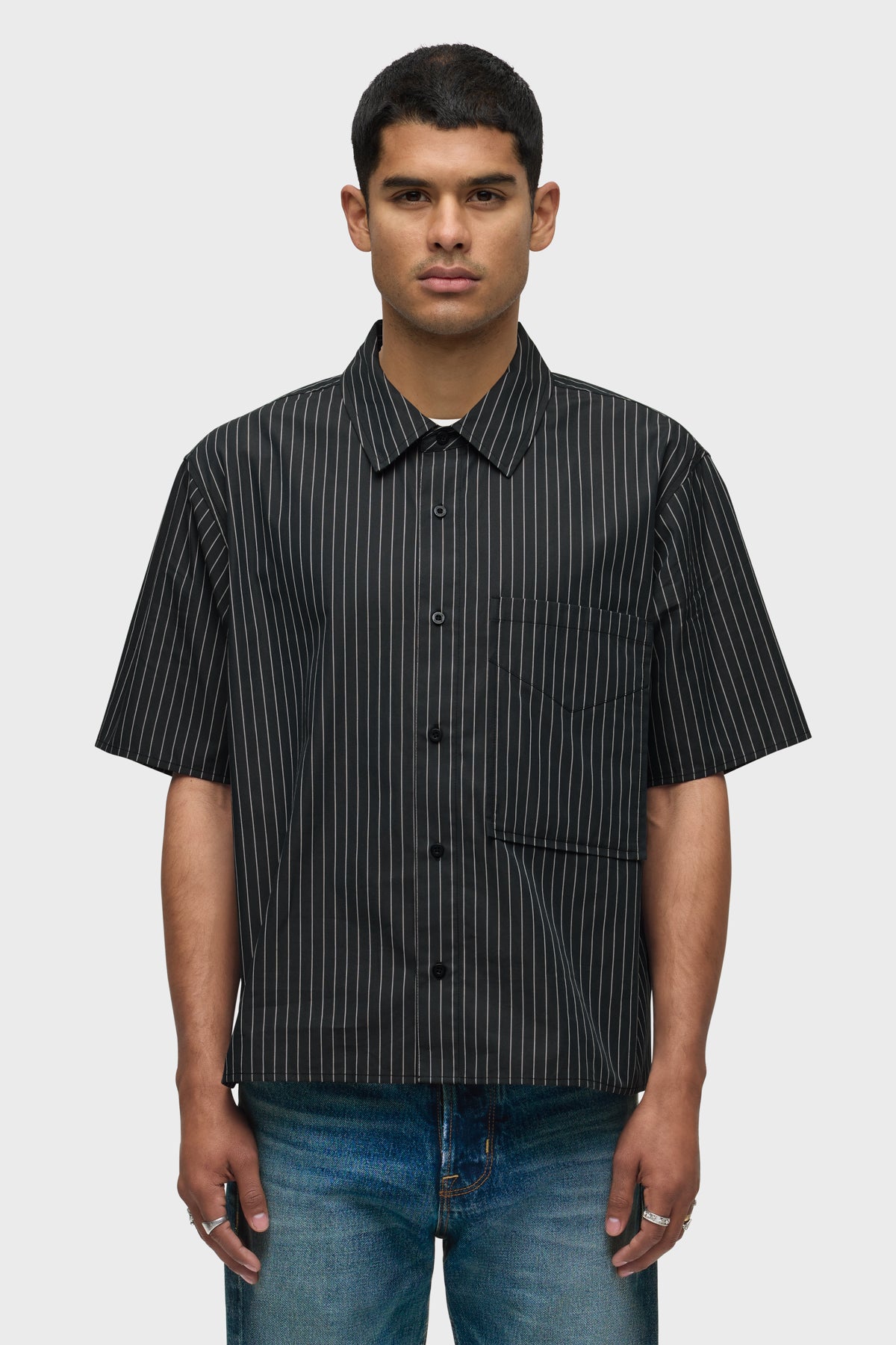 - Our Rex Short Sleeve Shirt in Black Stripe is cut from black striped poplin with a white accent. It features a pointed collar and stitched hem.
