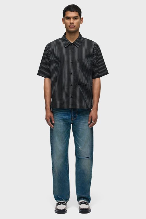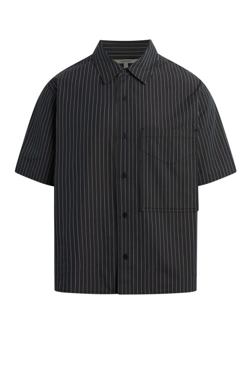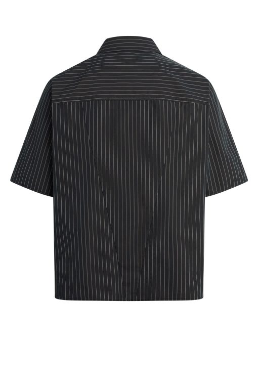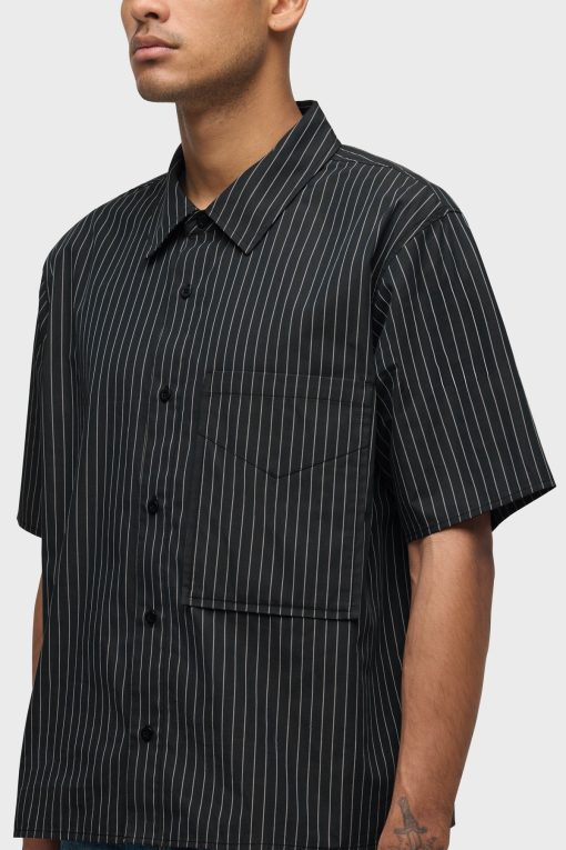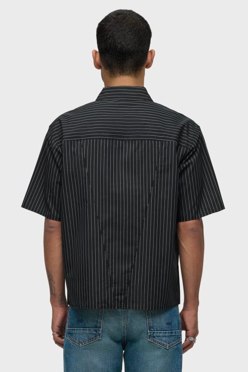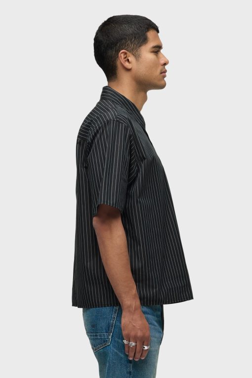- Our Rex Short Sleeve Shirt in Black Stripe is cut from black striped poplin with a white accent. It features a pointed collar and stitched hem.