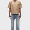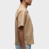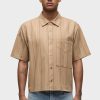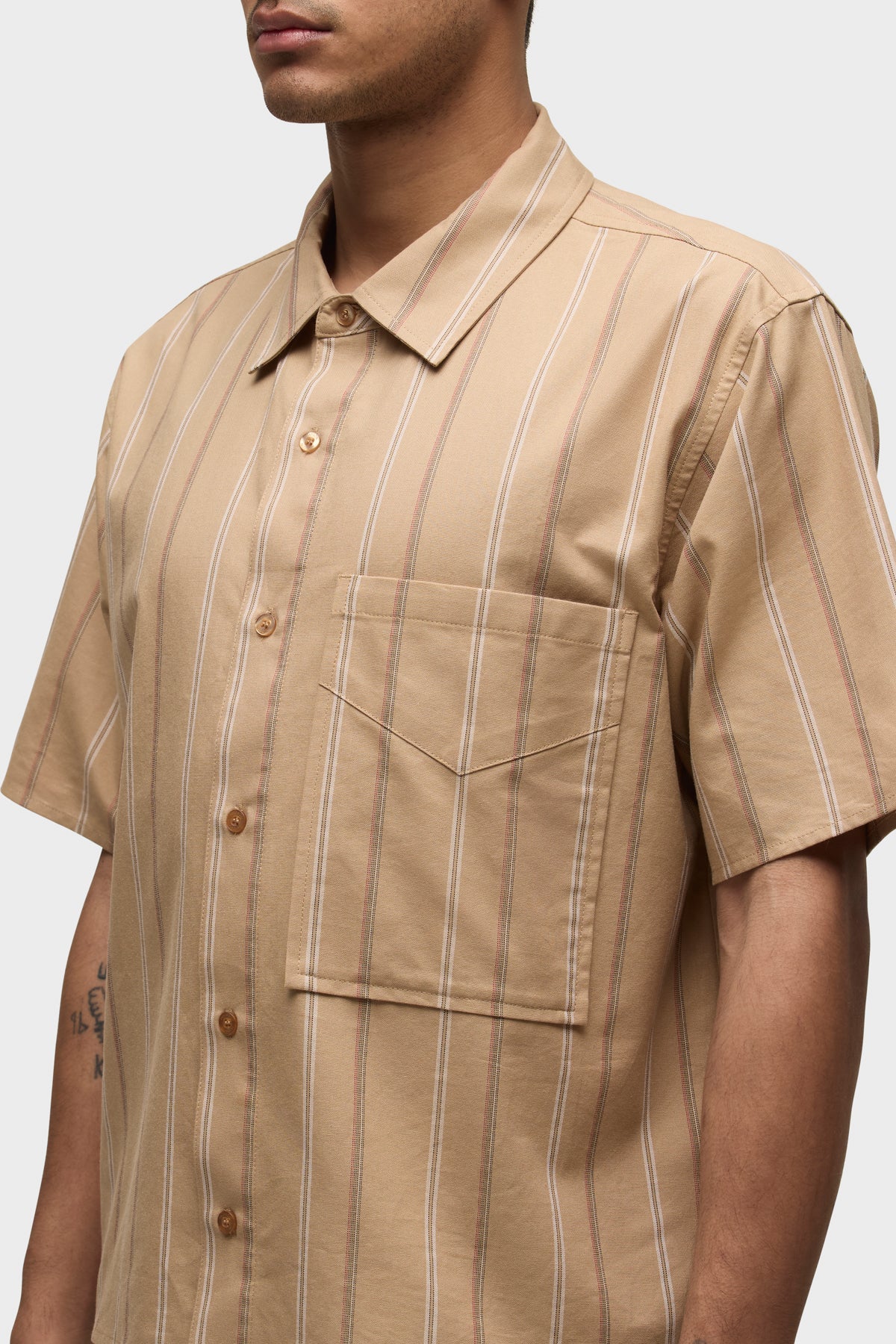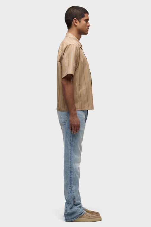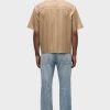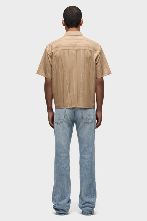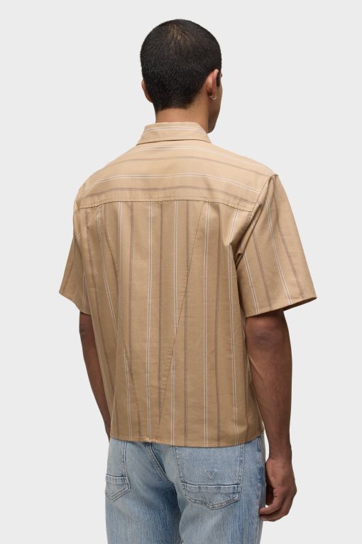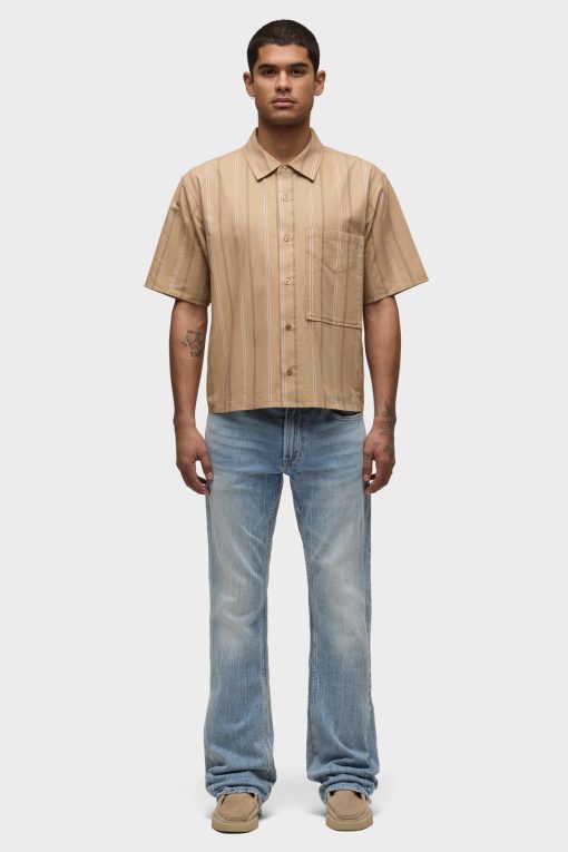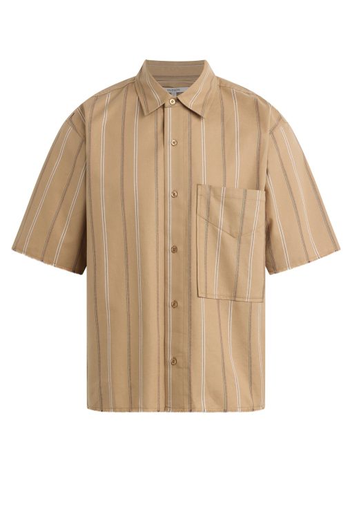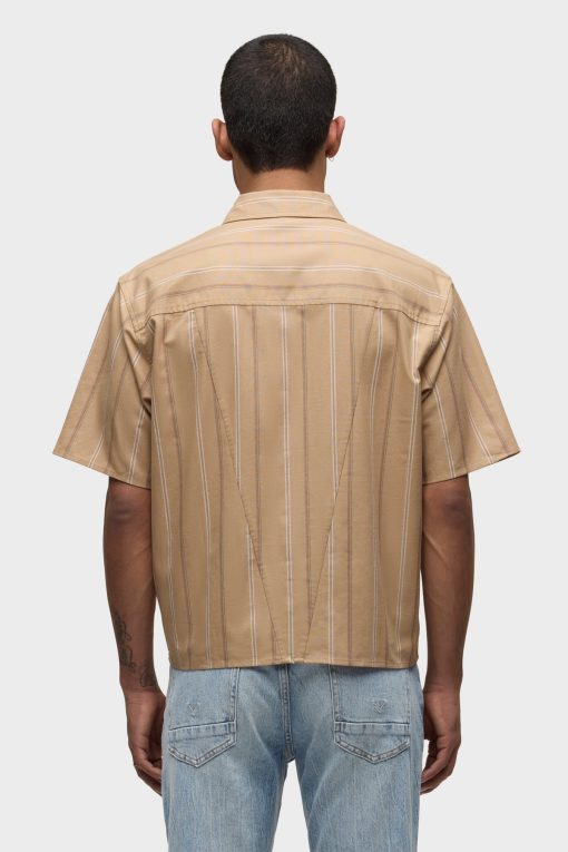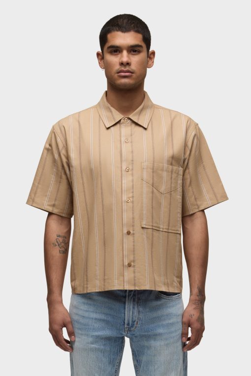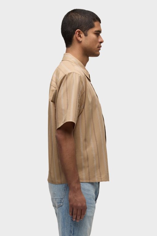 - Our Rex Short Sleeve Shirt in Camel Stripe is cut from camel striped poplin. It features a pointed collar and stitched hem.