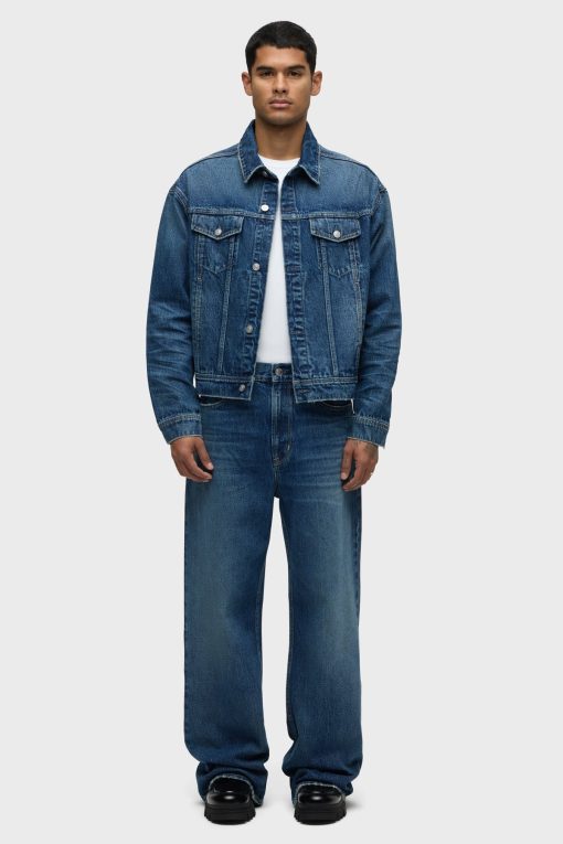 - Our Trucker Jacket in Vintage Stone is a classic trucker with a boxy, slightly cropped fit in a medium-dark wash. Made from rigid denim, the pair is finished with dull nickel hardware and grinding along the edges.