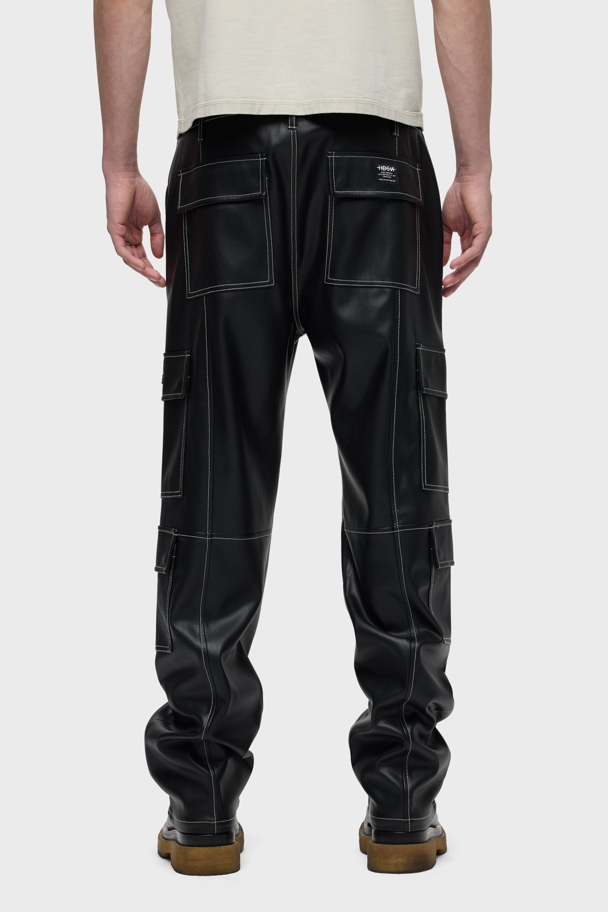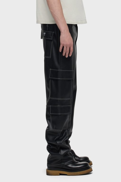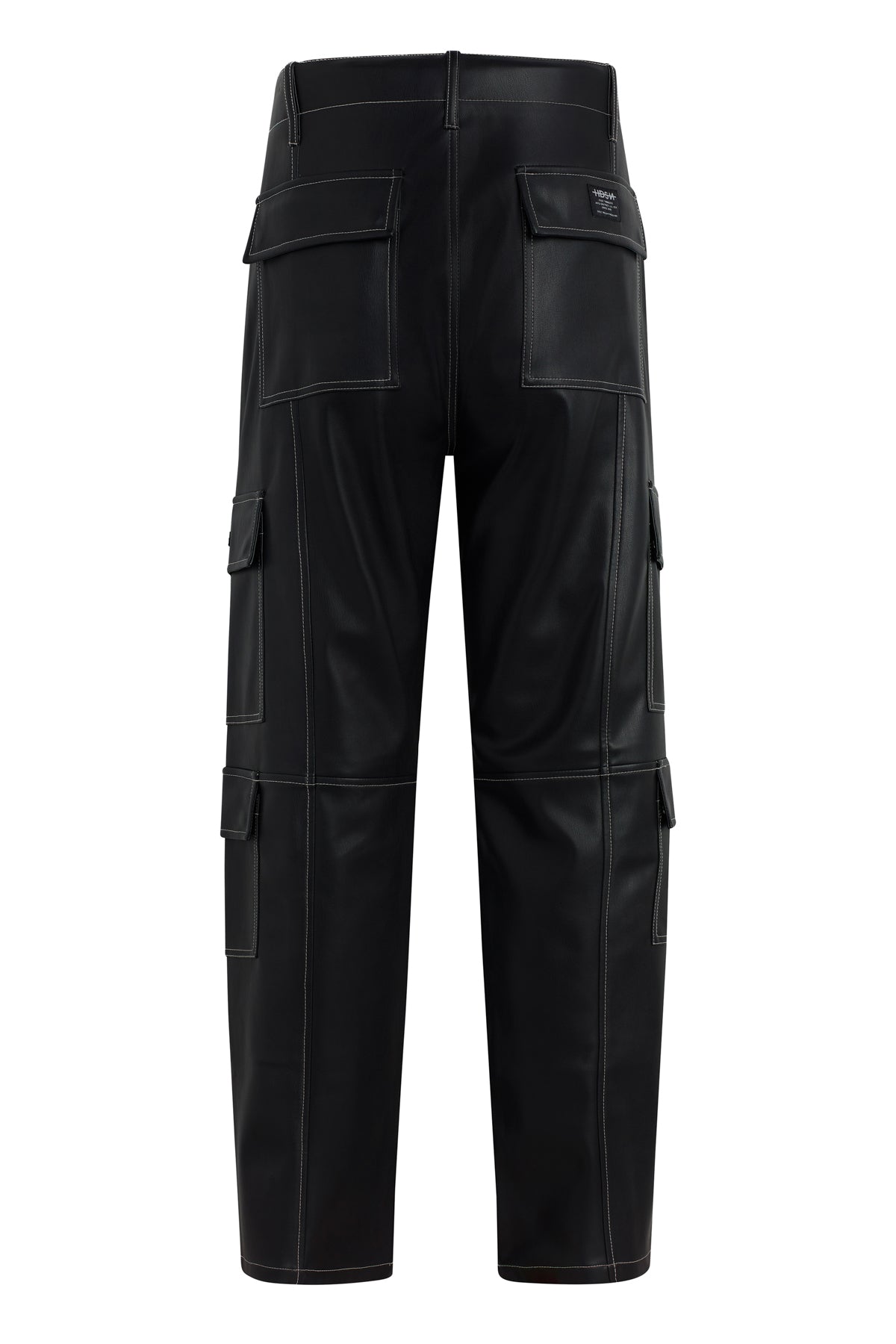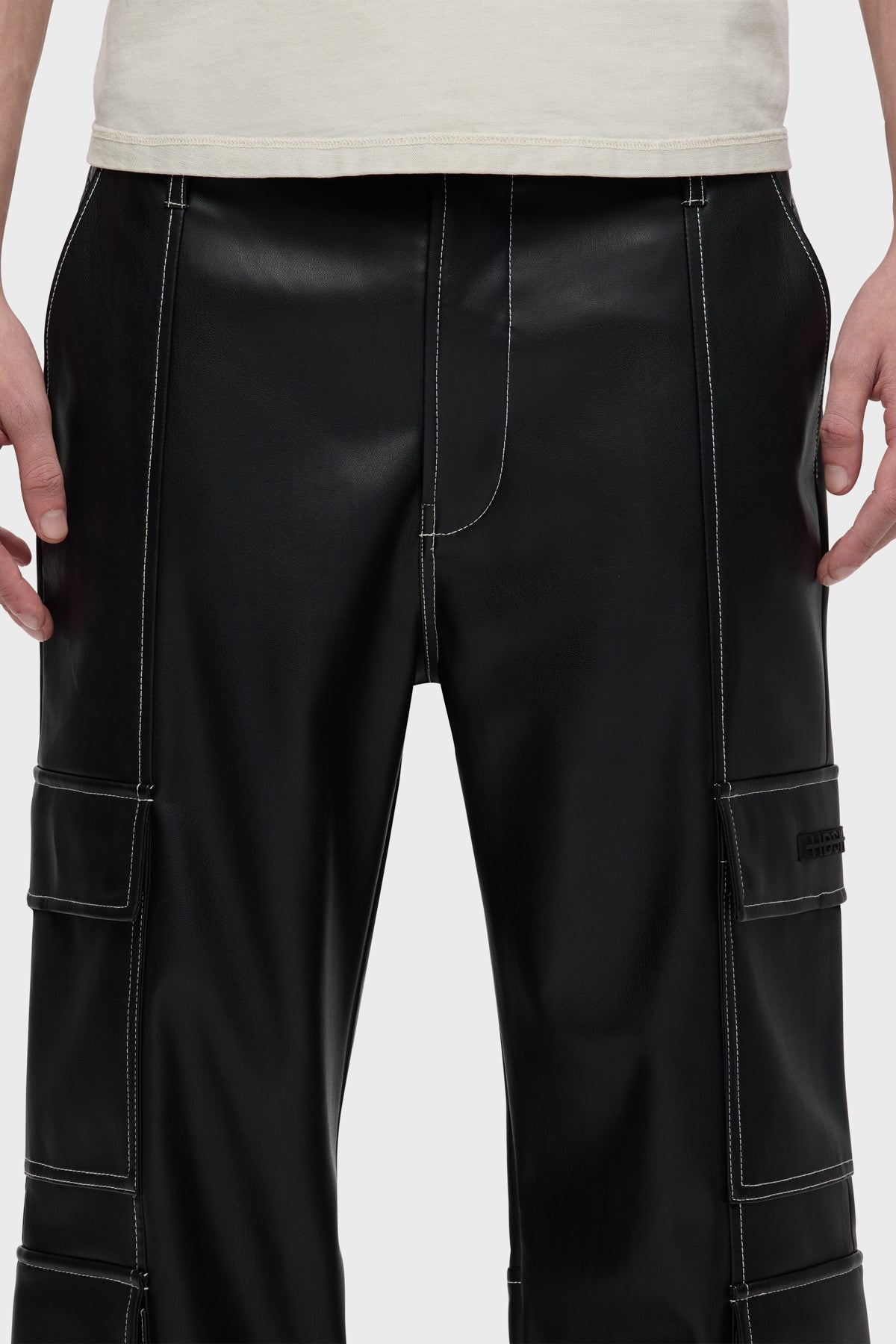 - Our Vegan Leather Baggy Cargo in Black Sky is cut from luxe, vegan leather with contrast stitching and cargo details including side and back patch pockets. For a less roomy fit, size down.