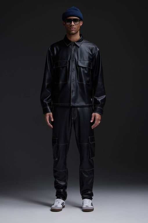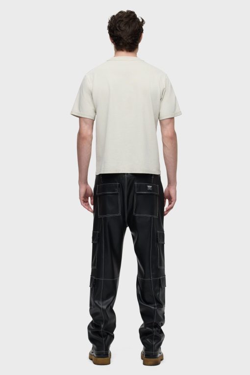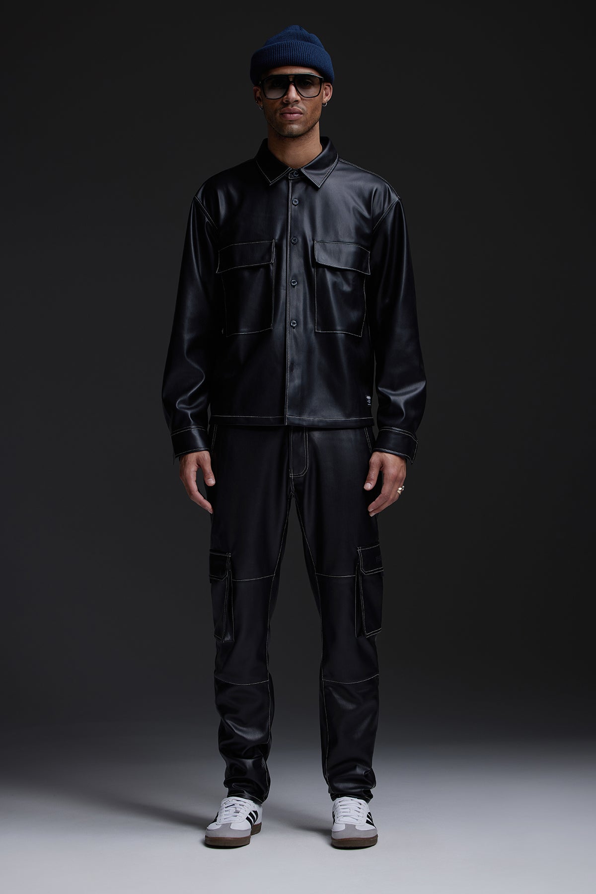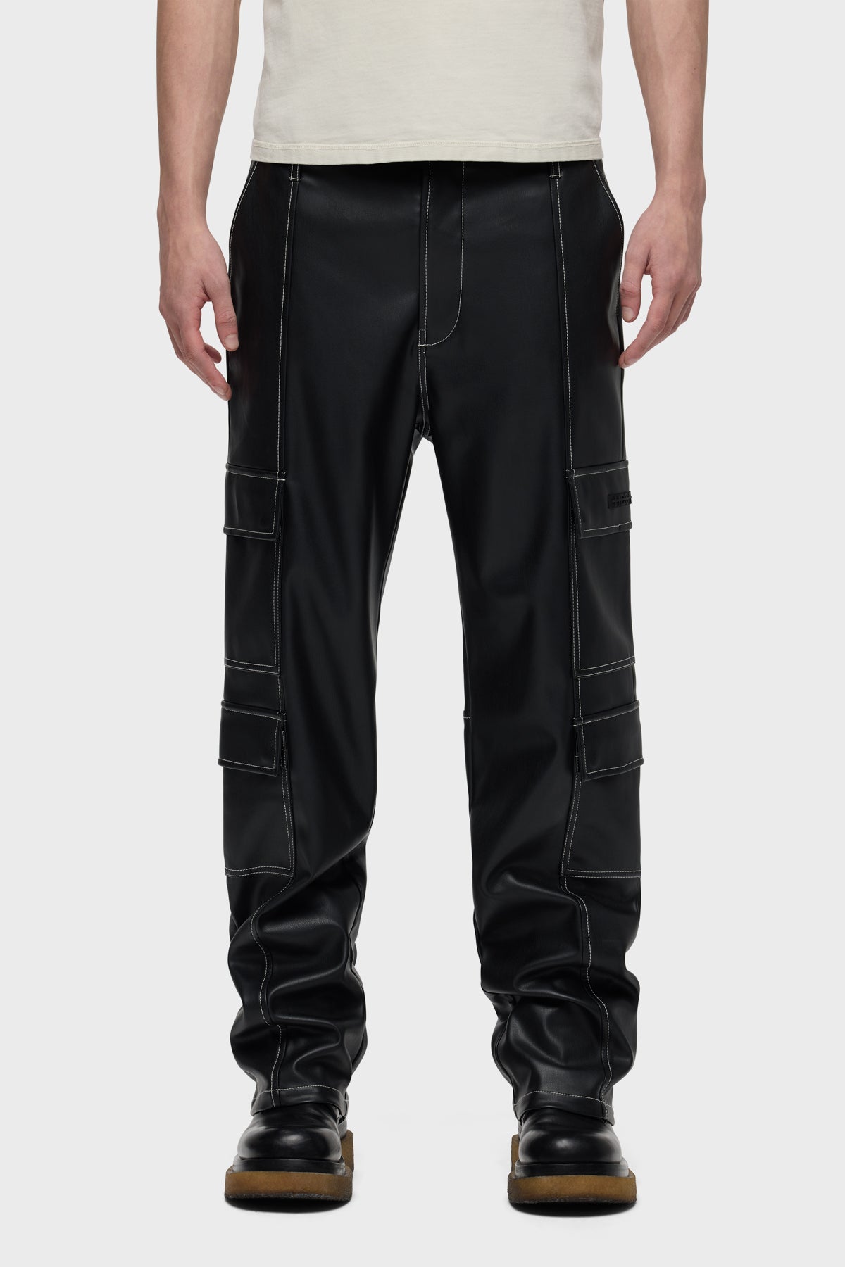 - Our Vegan Leather Baggy Cargo in Black Sky is cut from luxe, vegan leather with contrast stitching and cargo details including side and back patch pockets. For a less roomy fit, size down.