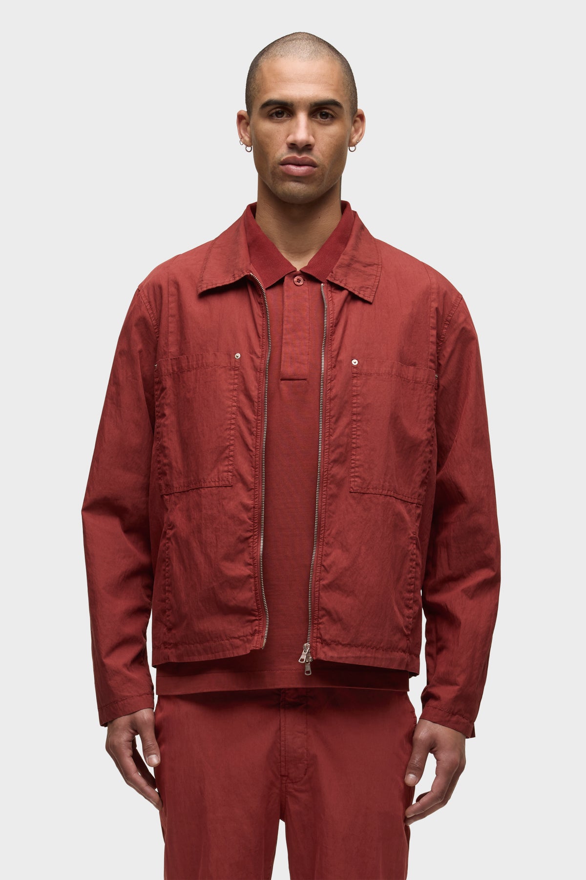 - Our Work Jacket in Red Clay offers versatile style that can be dressed up or down. Crafted from lightweight nylon in a reactive overdyed red color, it delivers a refined, sartorial look with the perfect amount of stretch for comfort and ease of movement.