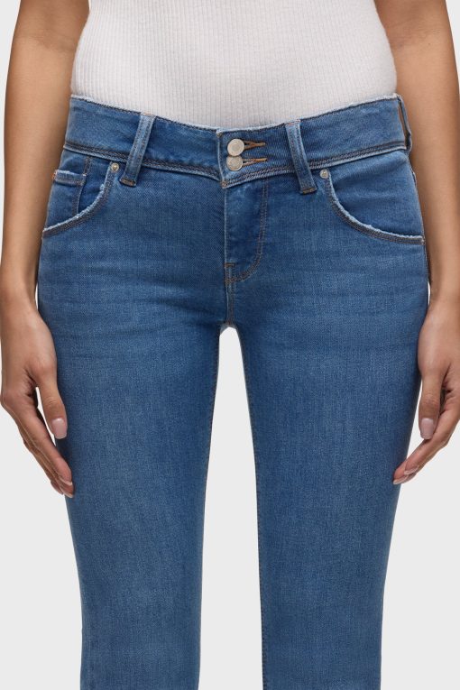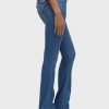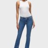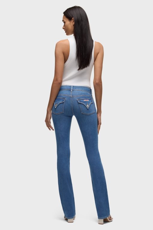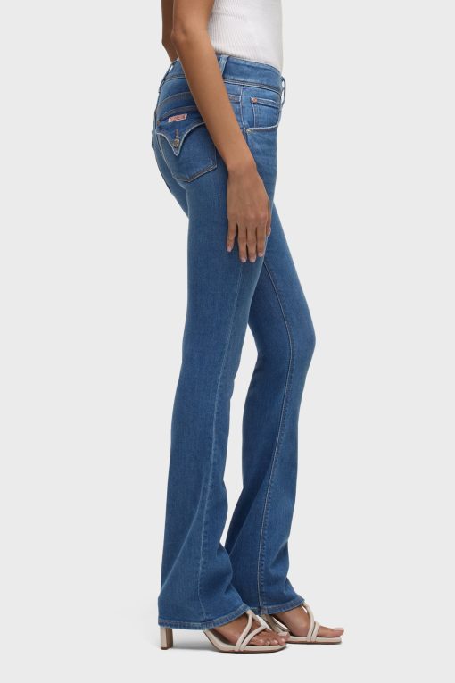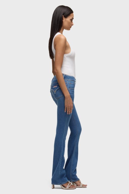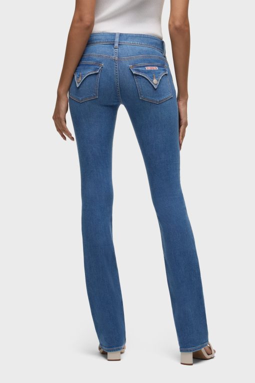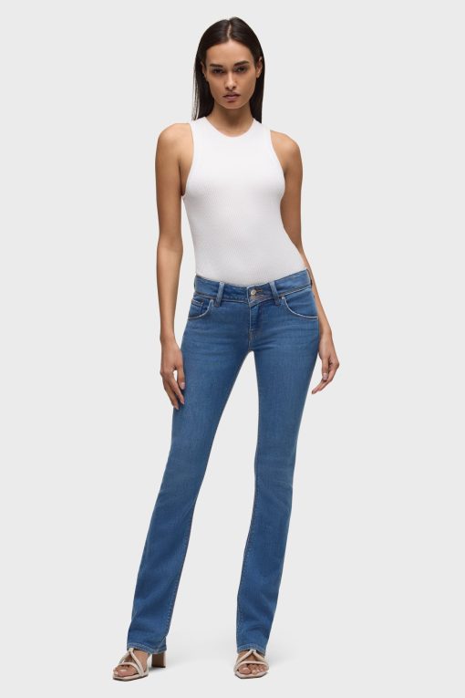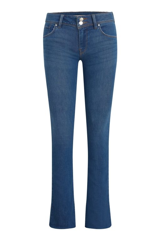 - The Beth Mid-Rise Baby Bootcut Jean with Flap in Canyon Spring features a subtly flared silhouette and our signature button-flap back pockets. This pair is made with recycled cotton and cut from lightweight stretch denim in a medium-dark indigo wash. A full-length 34.5″ inseam and raw hem complete the look.