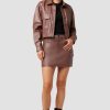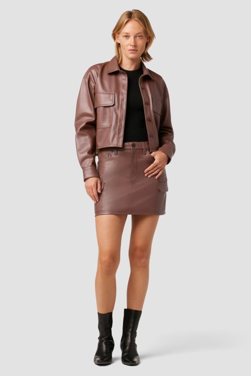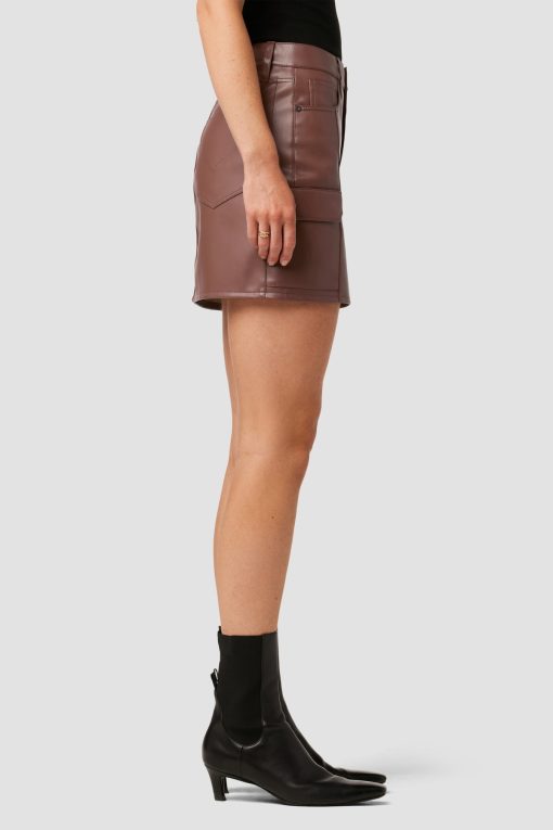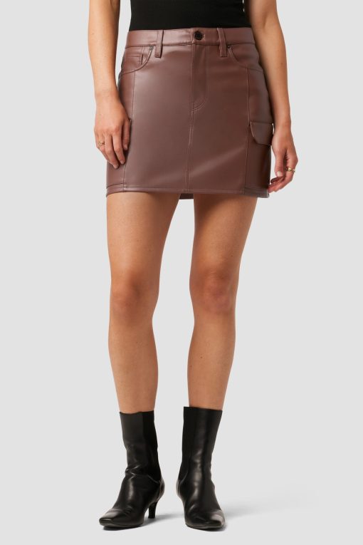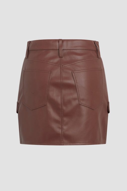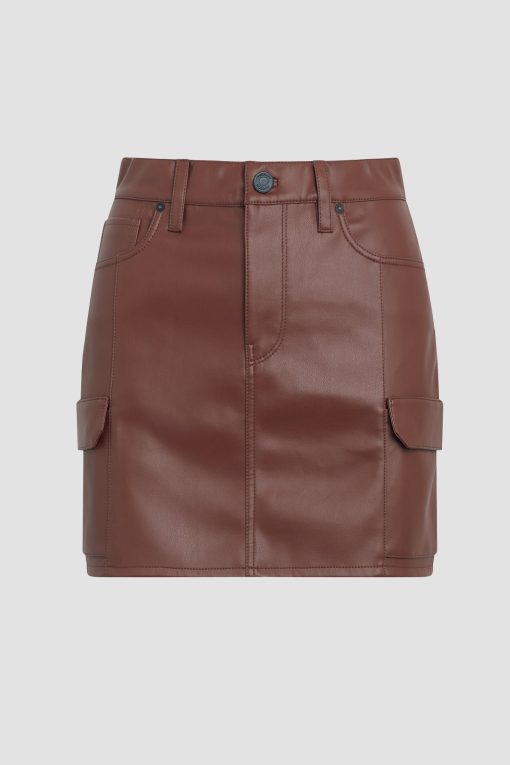 - Our Cargo Viper Mini Skirt in Cinnamon is made from luxe vegan Illusion Leather. High-rise, A-line shape. Complete with front patch pockets and clean hem.