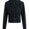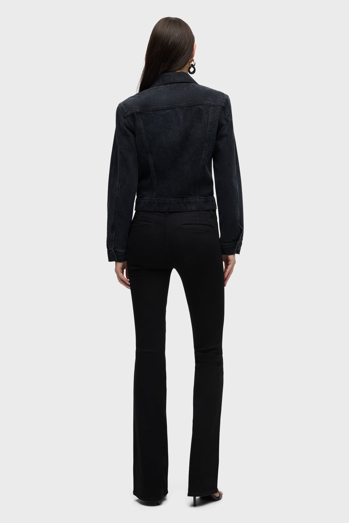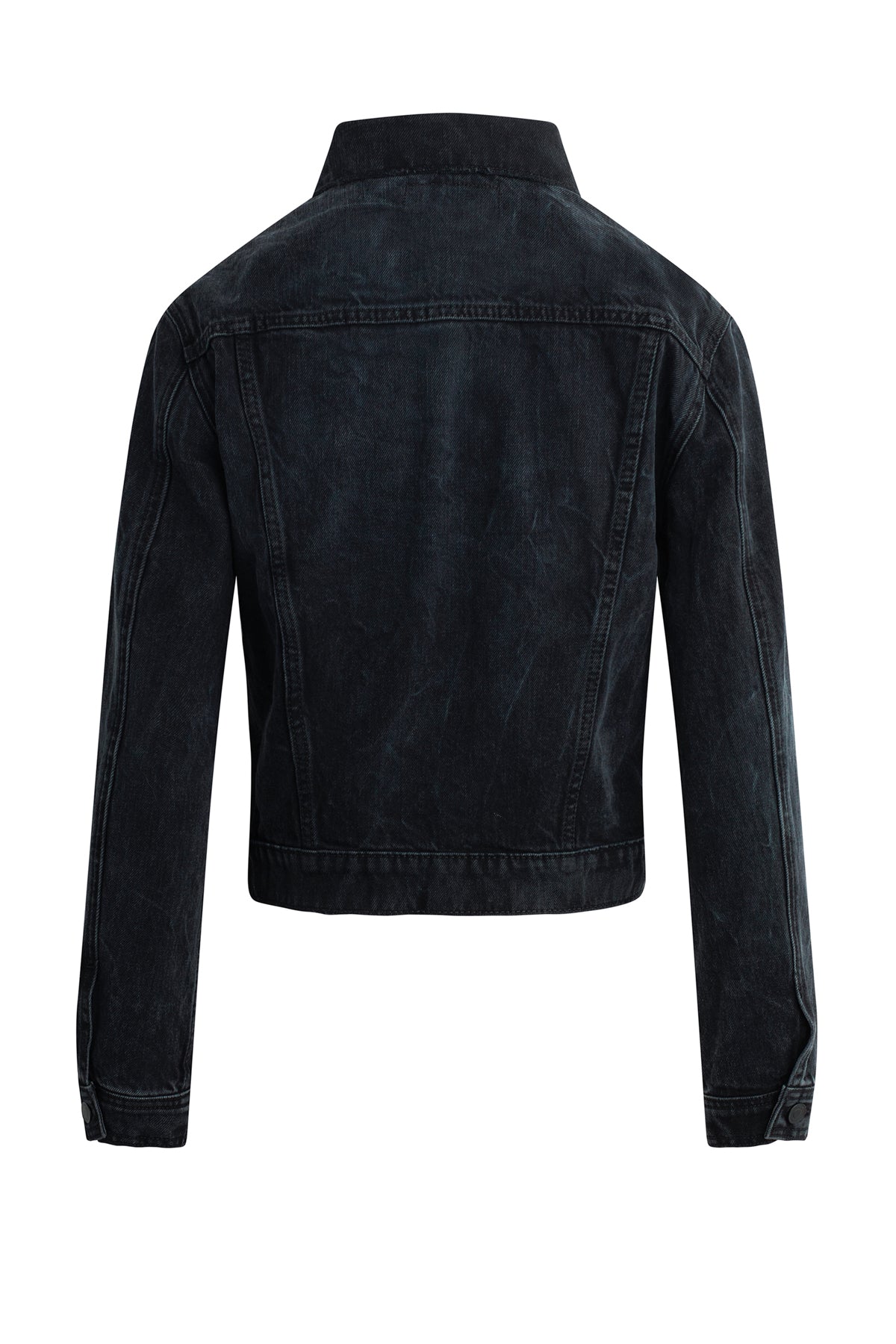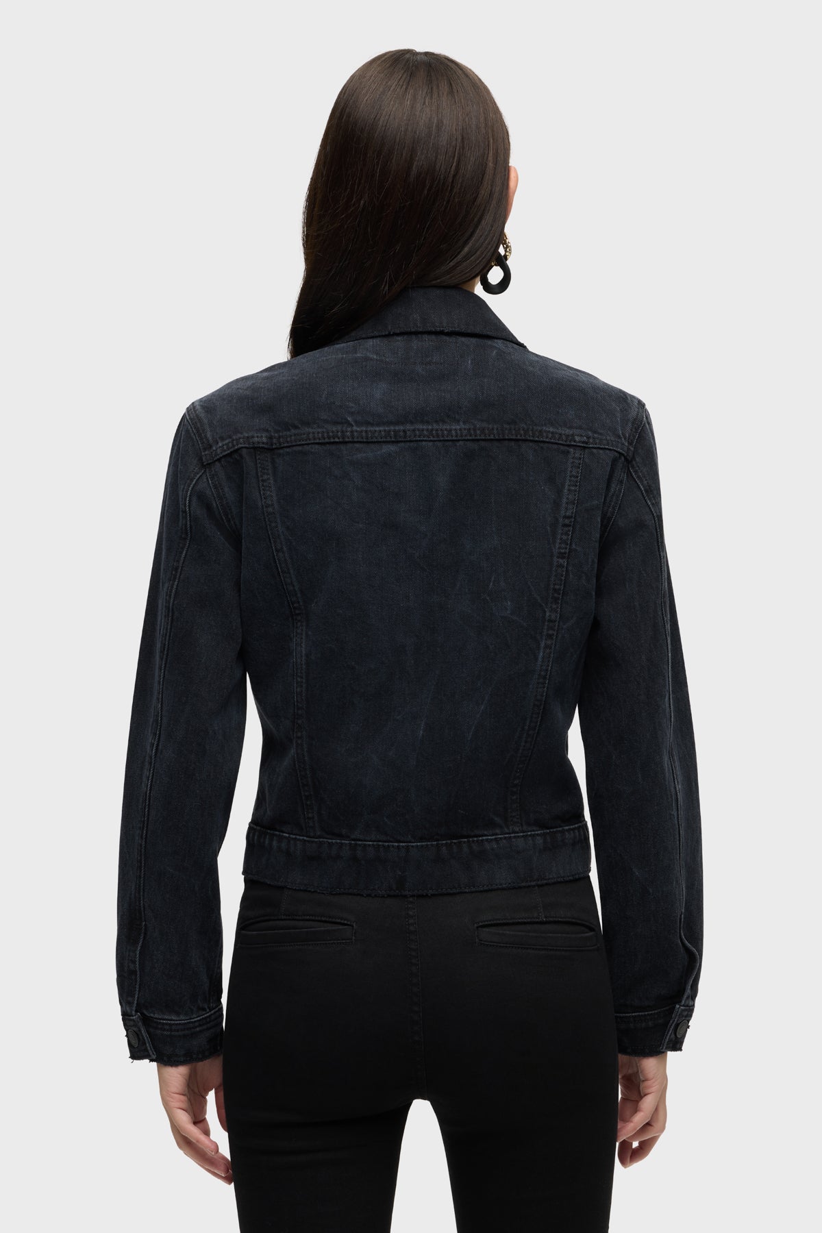 - Cut from premium Italian rigid denim, our Cinched Waist Jacket in washed black Dark Night has a pleated waist for a corset look and is finished with long sleeves, pointed collar and front buttons.