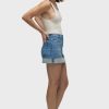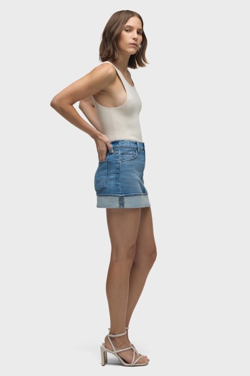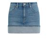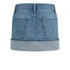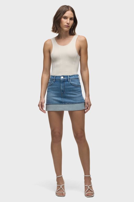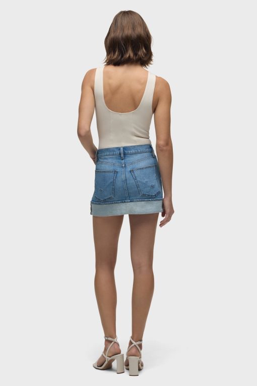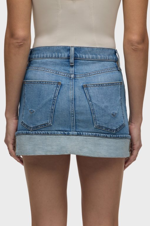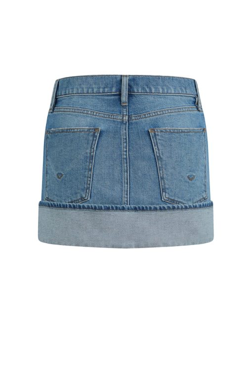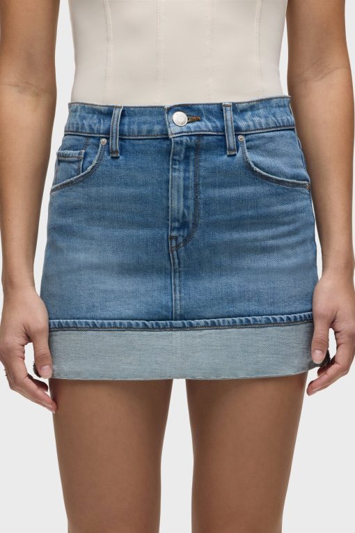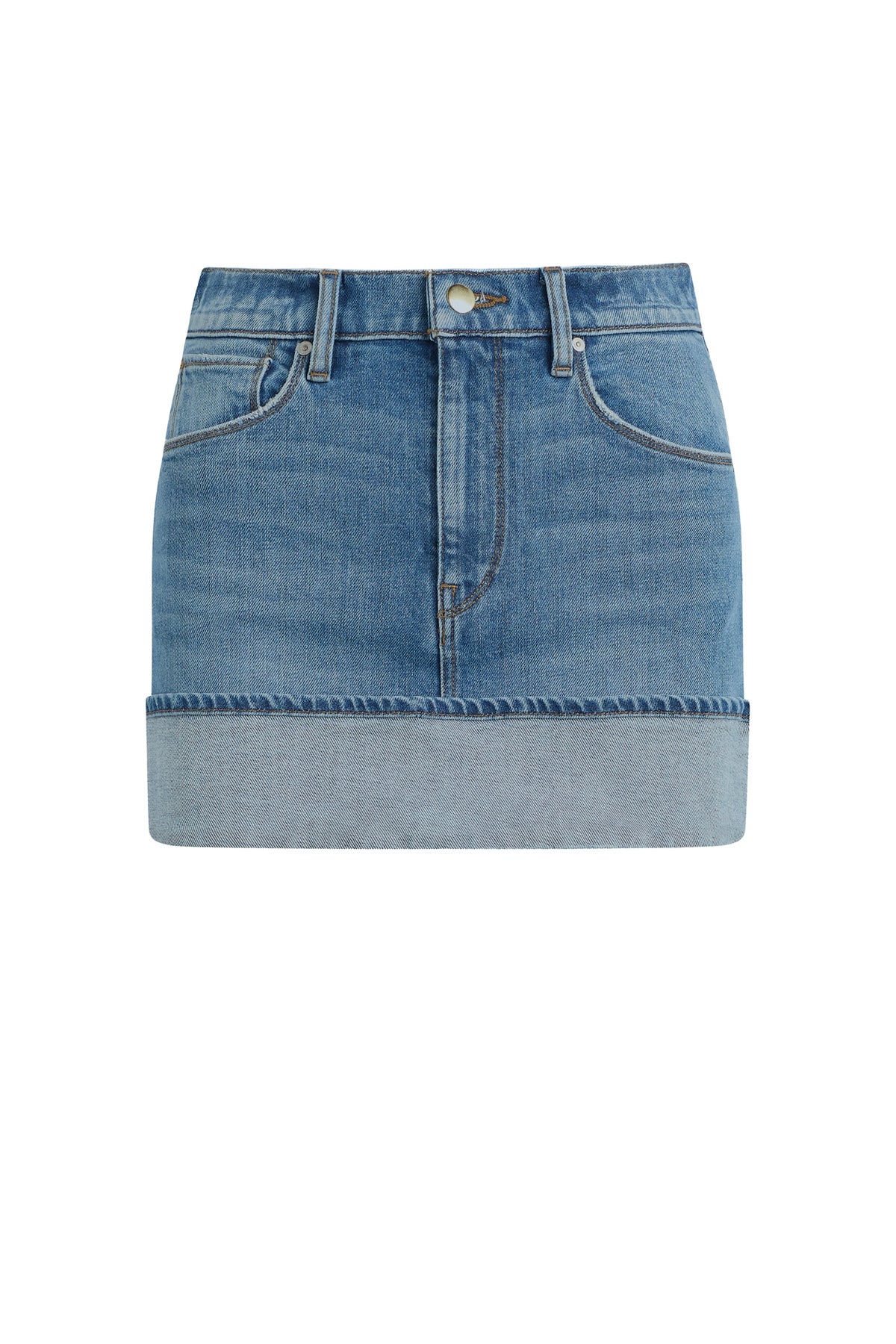 - The Cuff Mini Skirt in Parkwood has a classic mini skirt fit with 2.75″ cuff. Made of Italian comfort stretch denim, this skirt features a medium indigo wash with heavy stone washing, bleaching, whiskering and edge grinding.