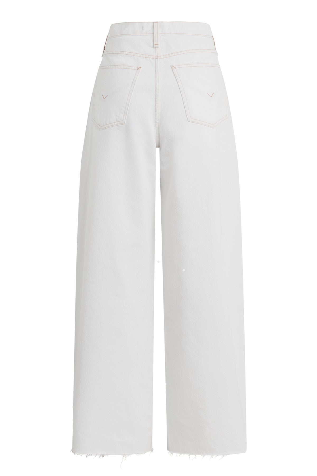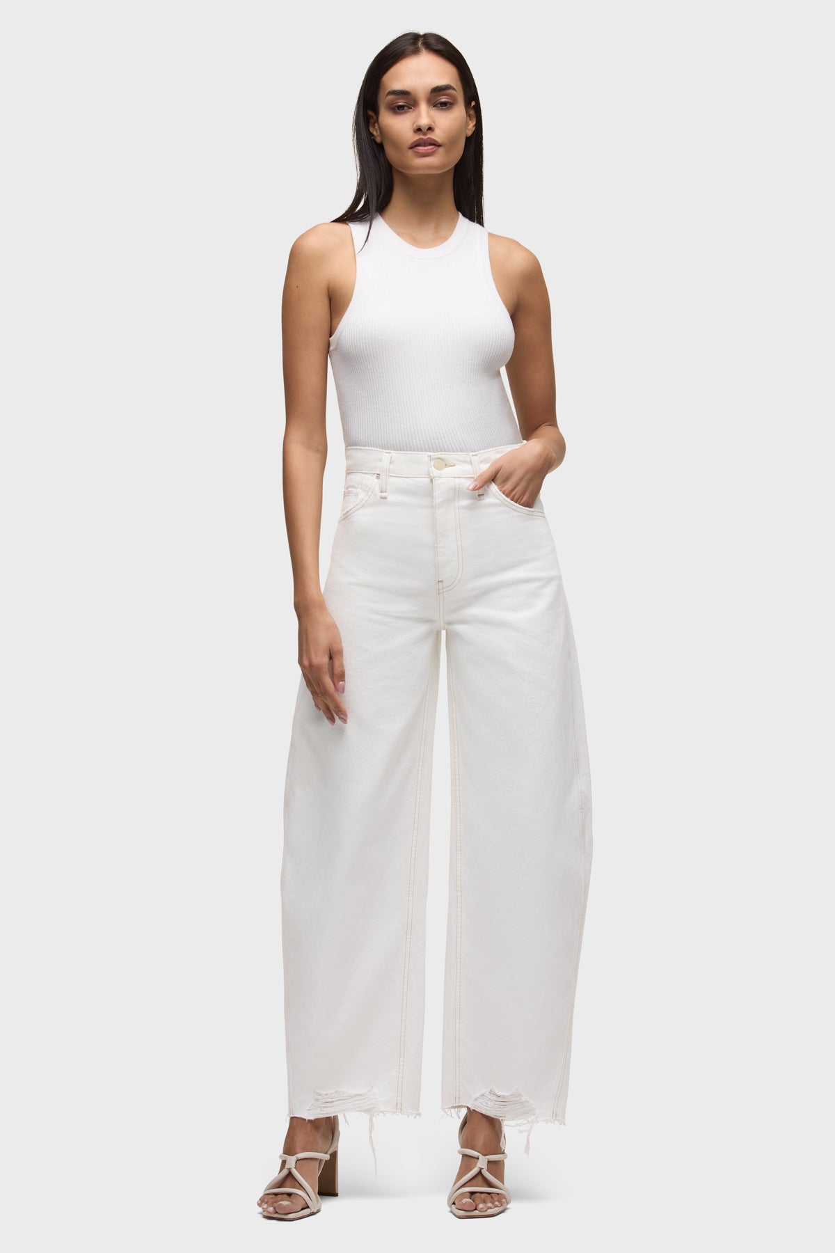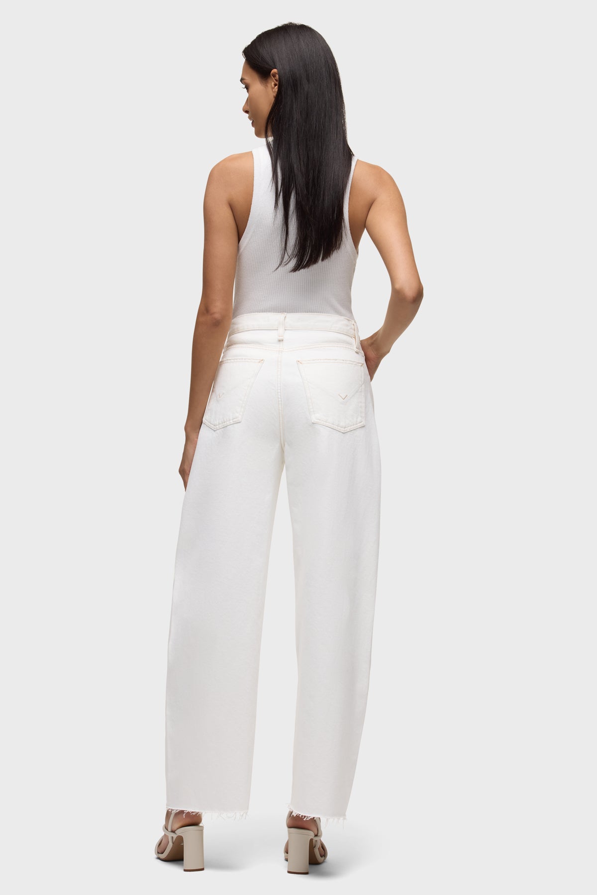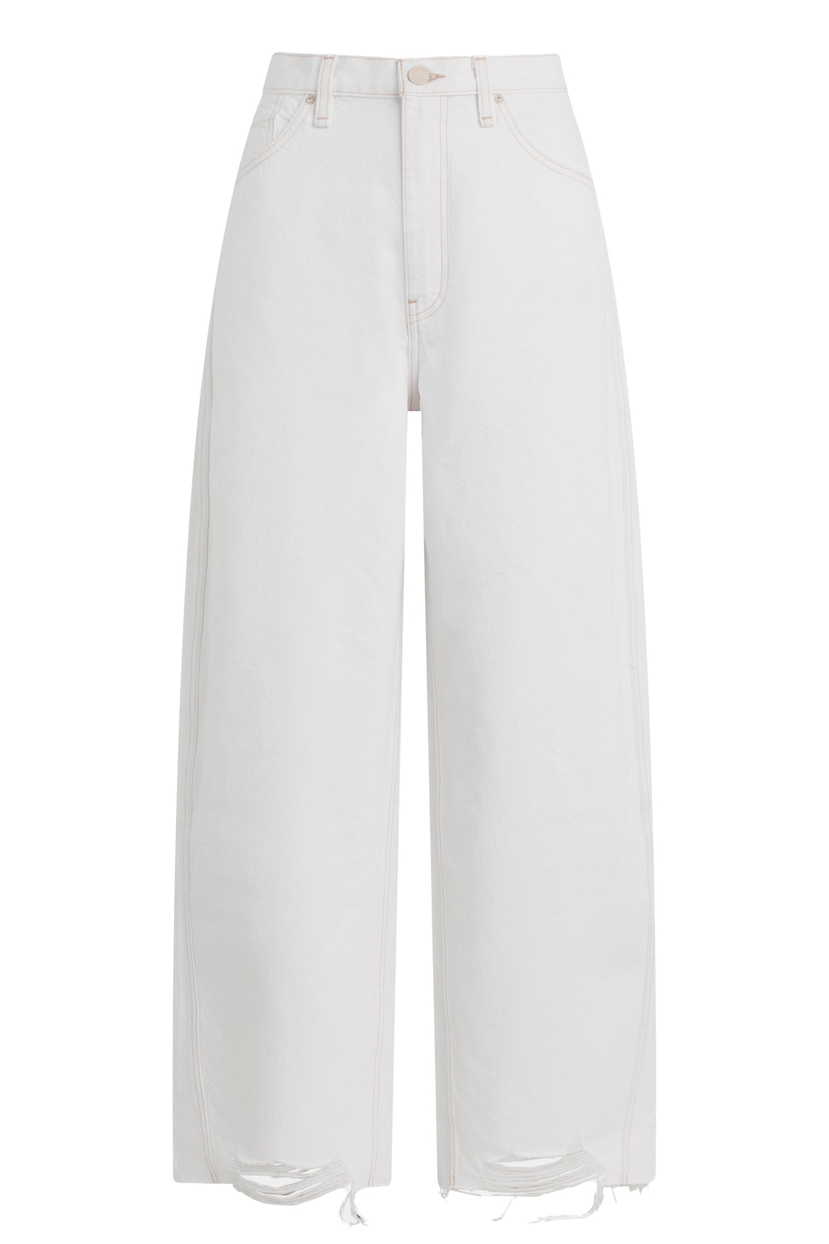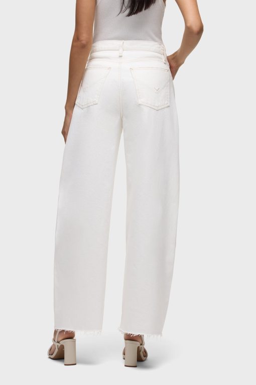 - Our Bailey Relaxed Barrel Jean in White is an on-trend, fashion-forward fit that features a rounded outseam to accentuate its barrel look. This relaxed jean has a 30″ inseam with a raw hem, and it is made of clean, white rigid denim.