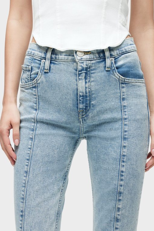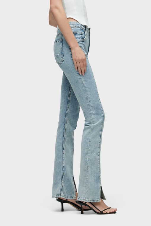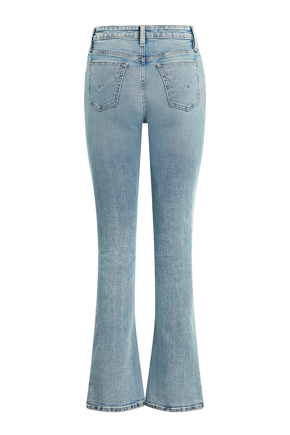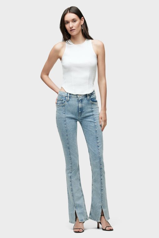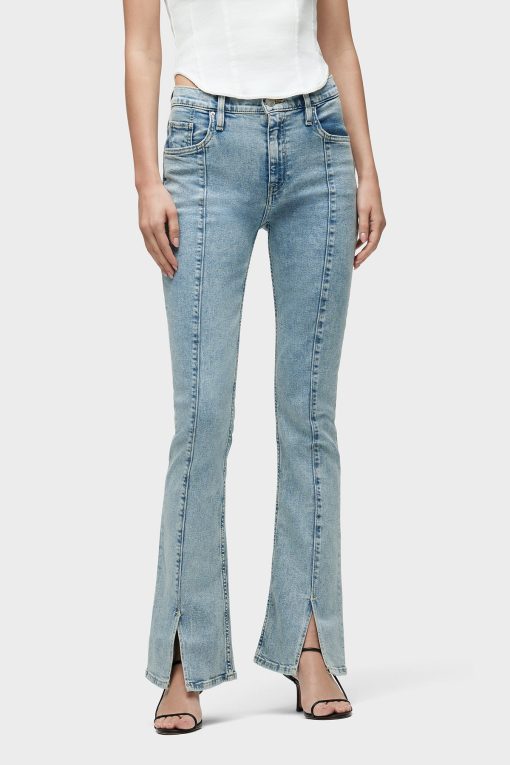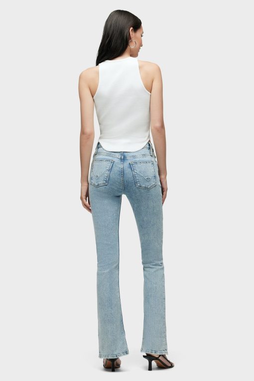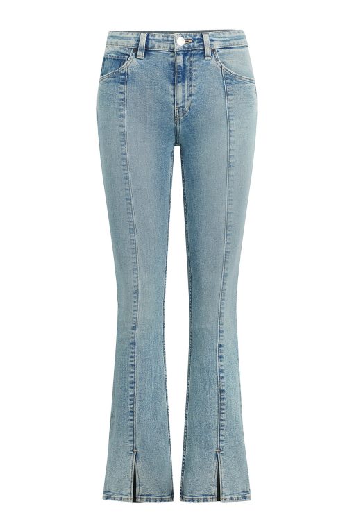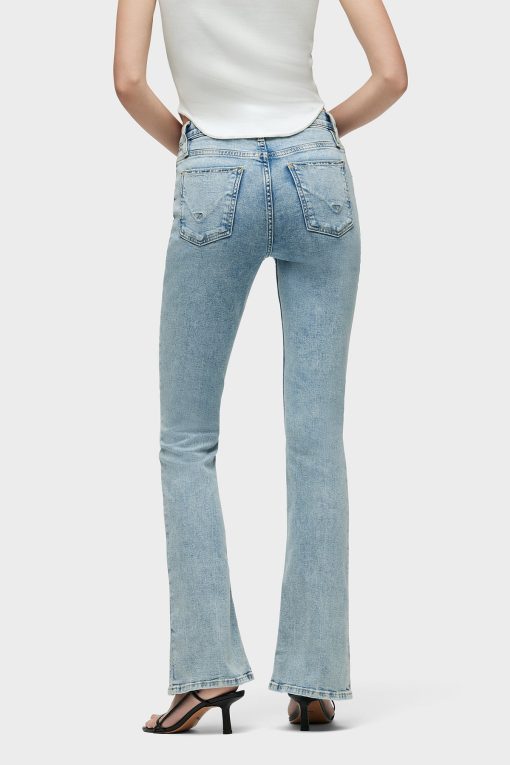 - Streamlined and flattering, our Barbara High-Rise Baby Bootcut Jean in light blue Caliber is cut for a slim, contoured fit with an elevated waistline and a gently flared leg. Made from premium stretch denim, it’s finished with grinding along the edges and slit hems.
