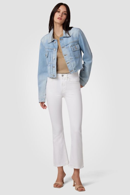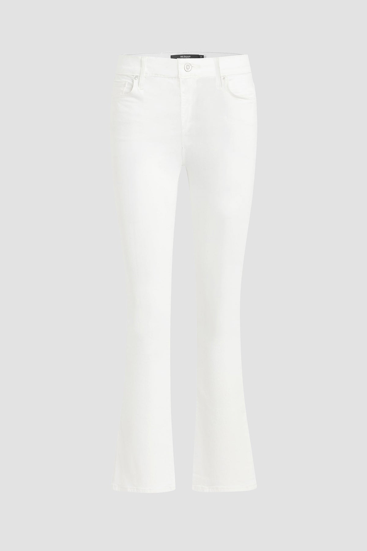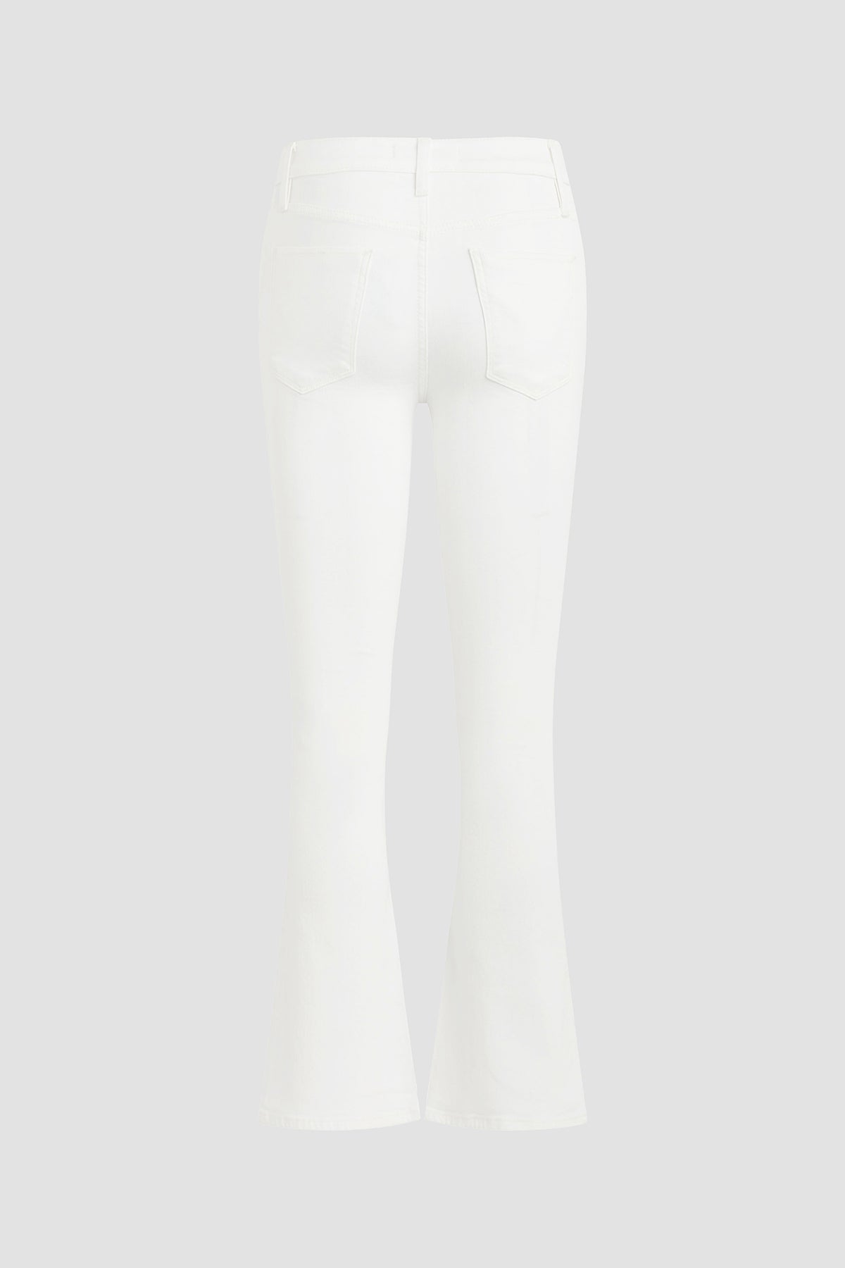 - Streamlined and flattering, our Barbara High-Rise Bootcut Crop Jean in White is cut for a slim, contoured fit with an elevated waistline and a gently flared cropped leg. Made from premium comfort stretch denim, it’s the pair your collection is missing.
