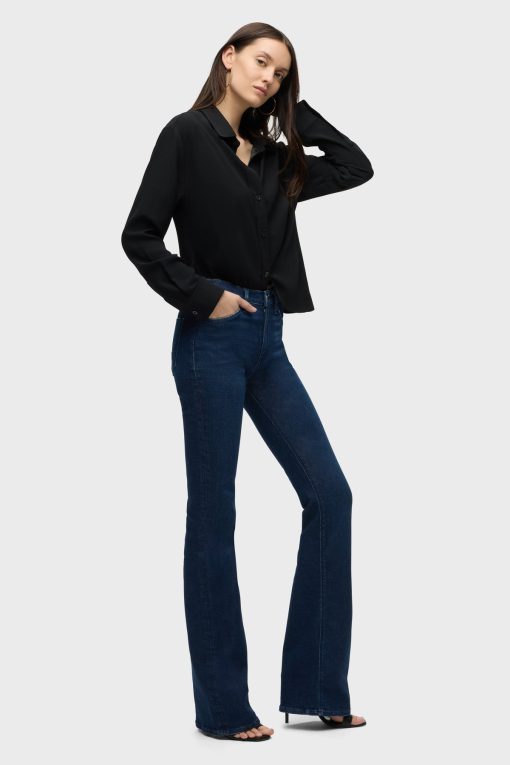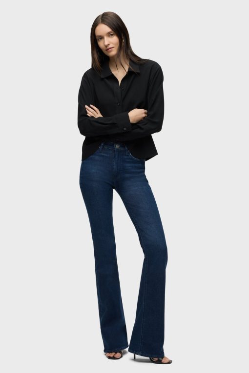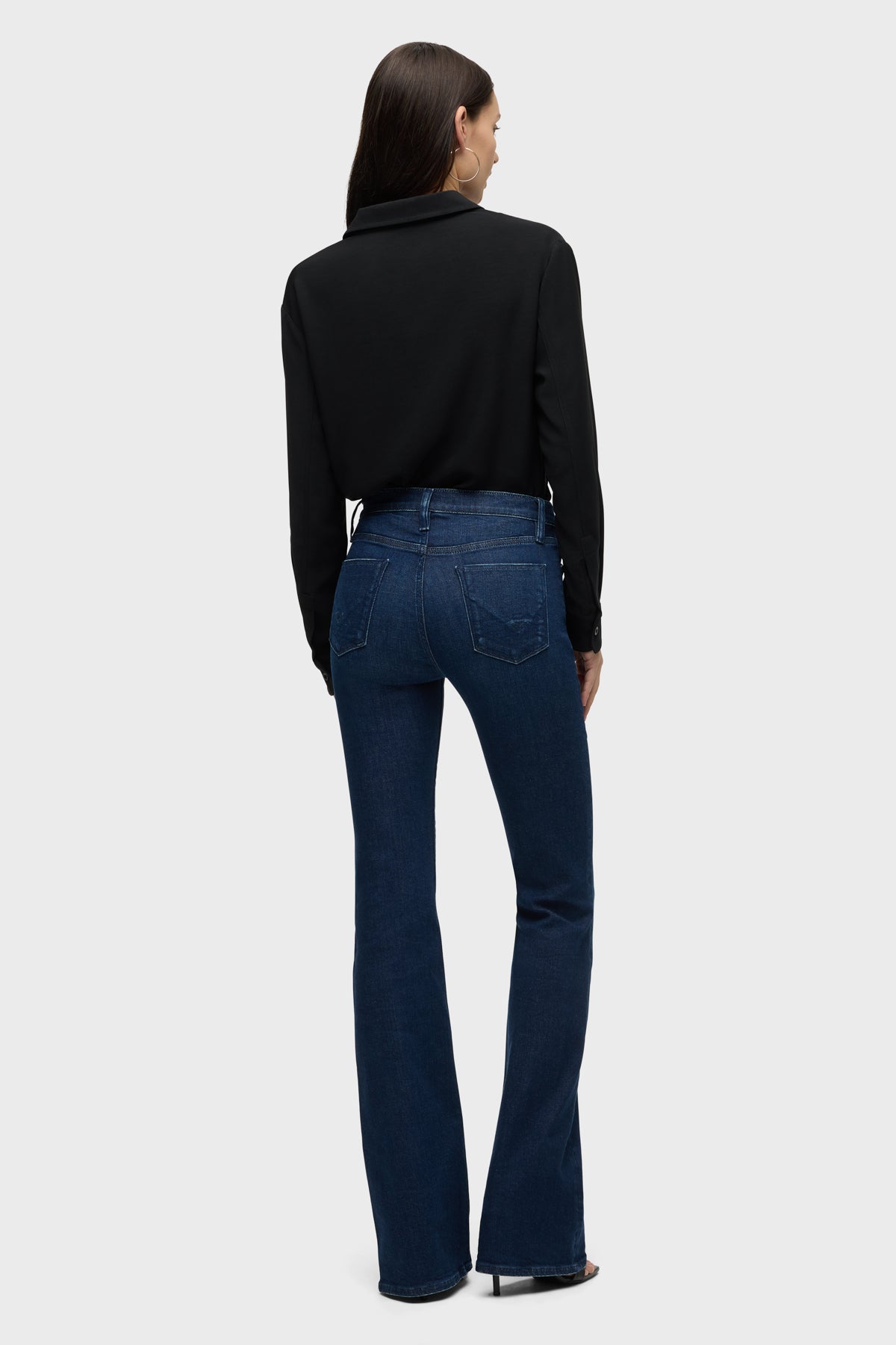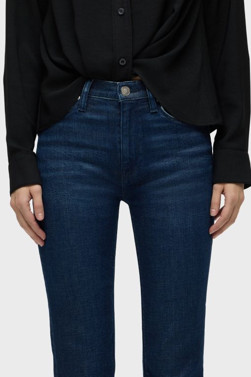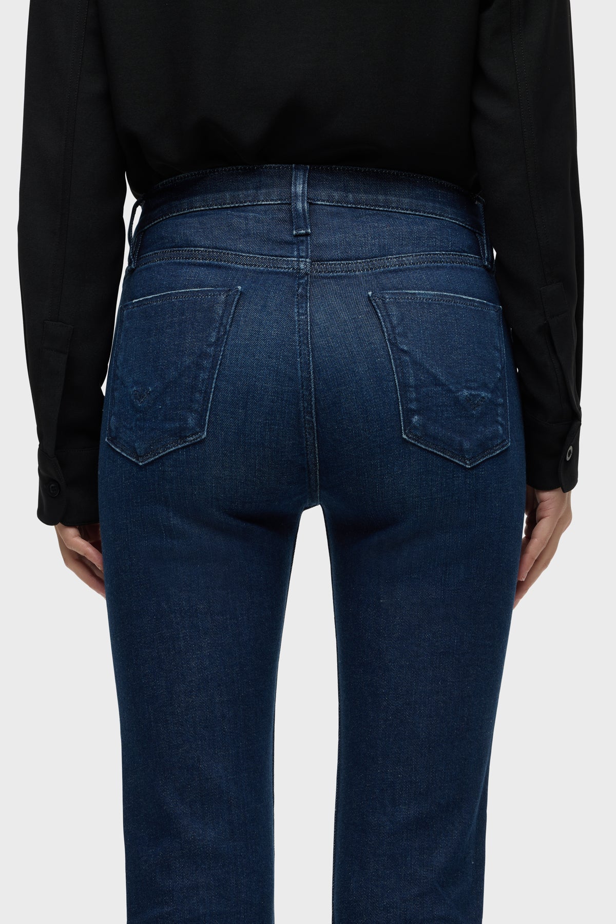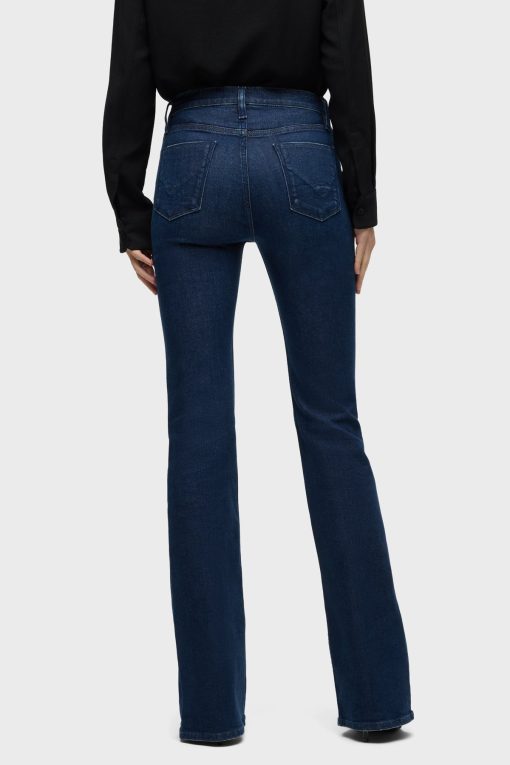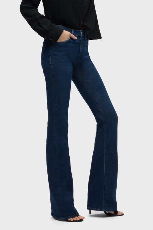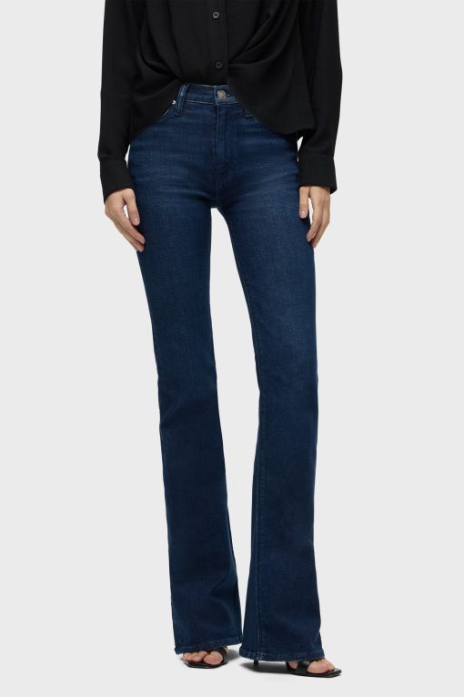 - Streamlined and flattering, our Barbara High-Rise Bootcut Jean in dark indigo Athens is cut for a slim, contoured fit with an elevated waistline and a gently flared leg. Made from a breathable premium stretch denim, it’s finished with whiskering, edge grinding and classic five-pocket details.