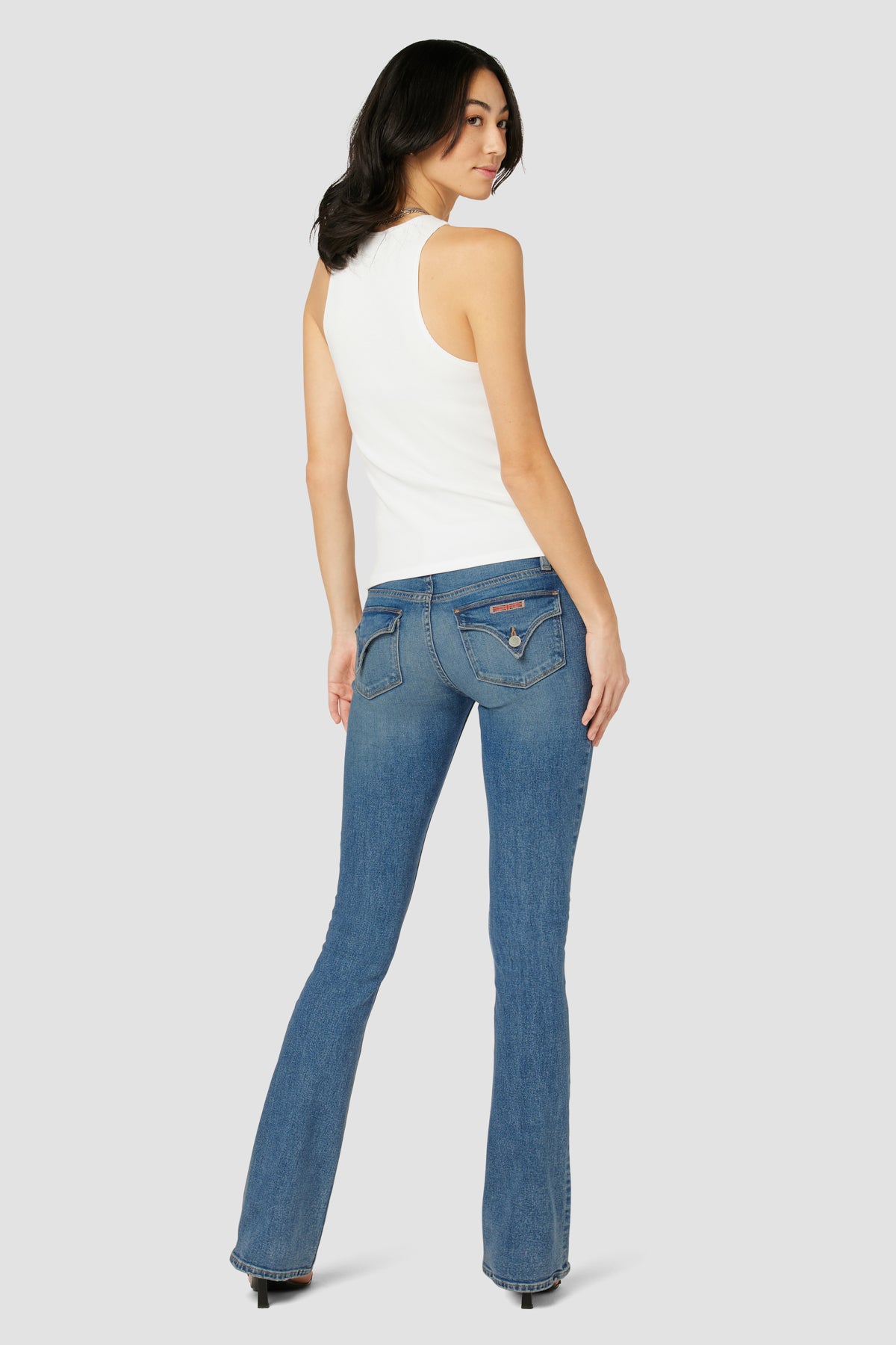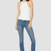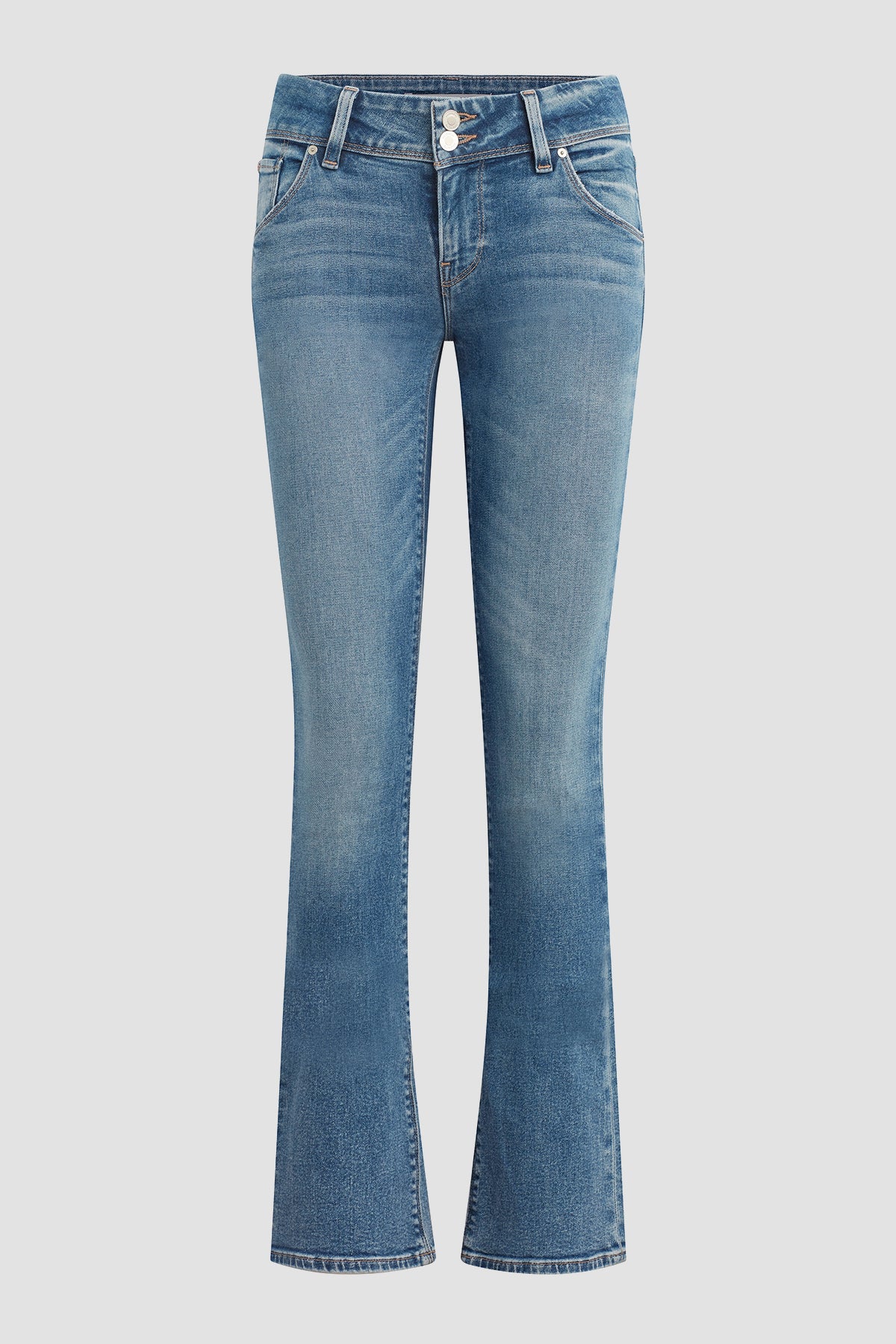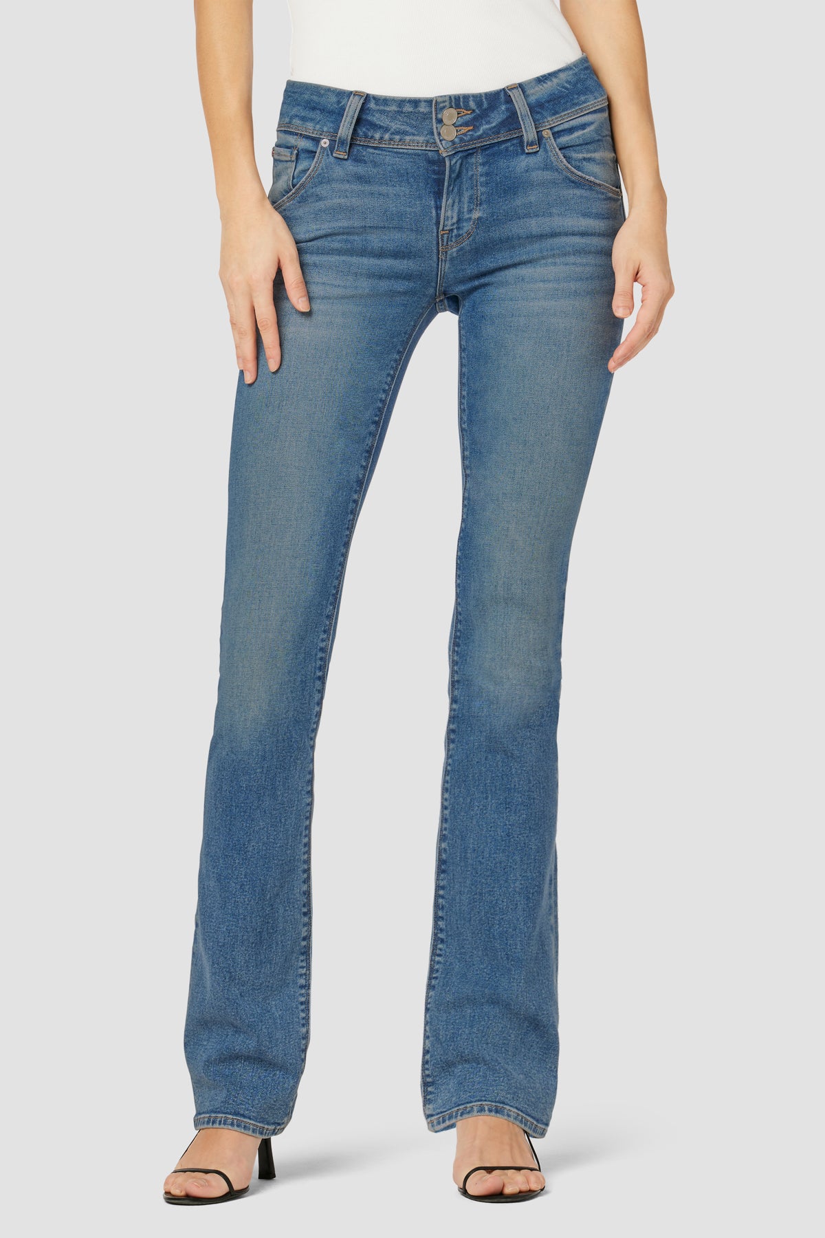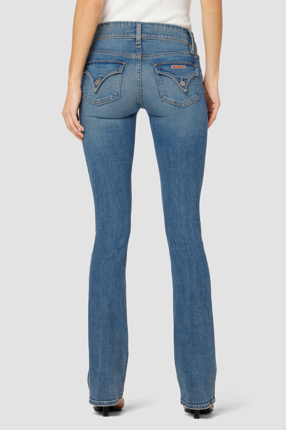 - Cut with premium super stretch denim that smooths, sculpts, and will never sag, our Beth Mid-Rise Baby Bootcut Jean in Golden features a subtly flared silhouette and our signature button-flap back pockets.