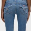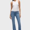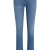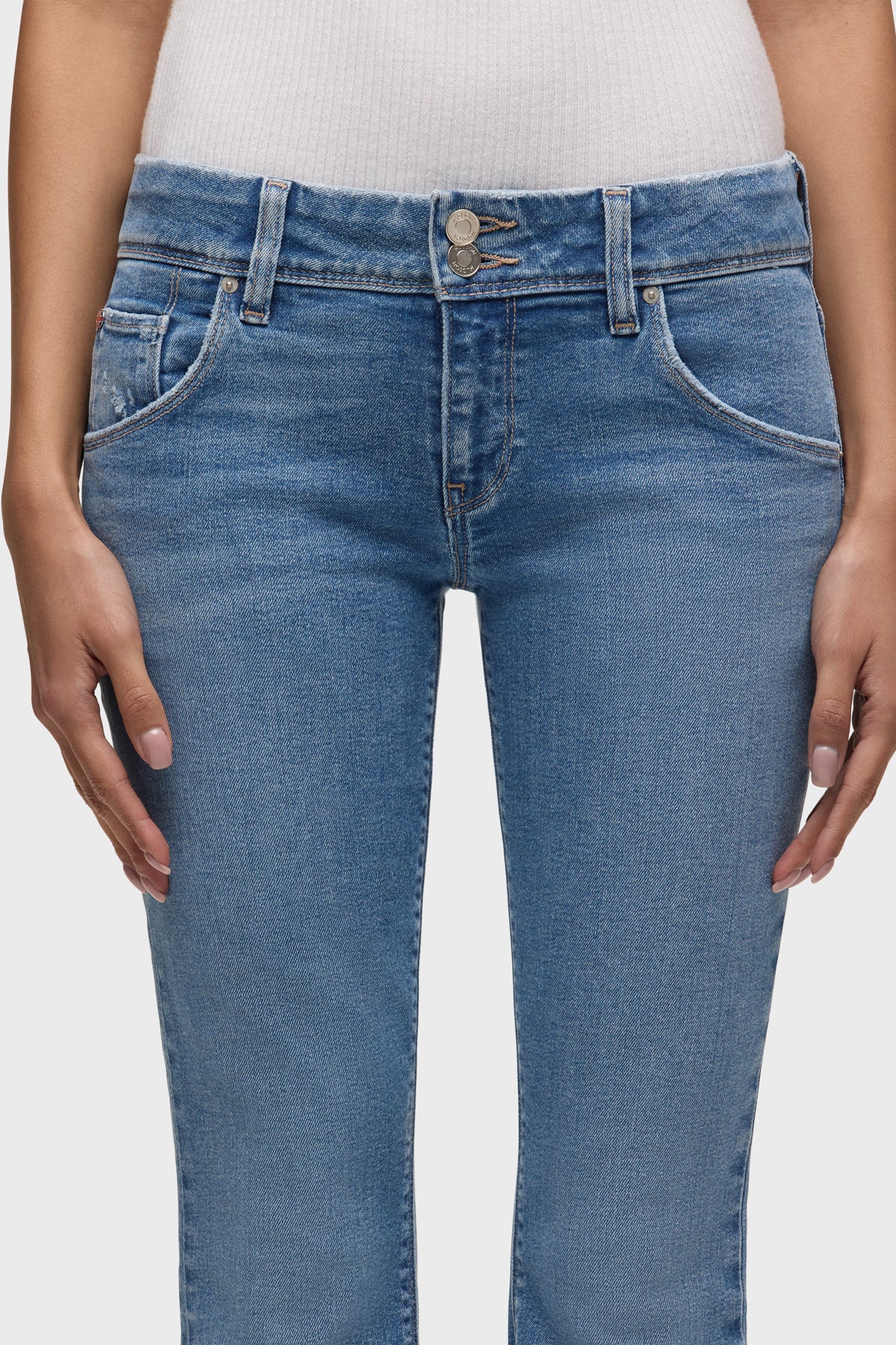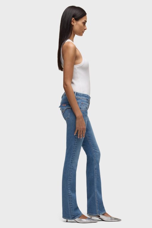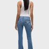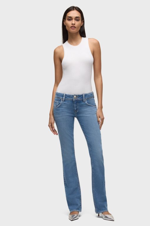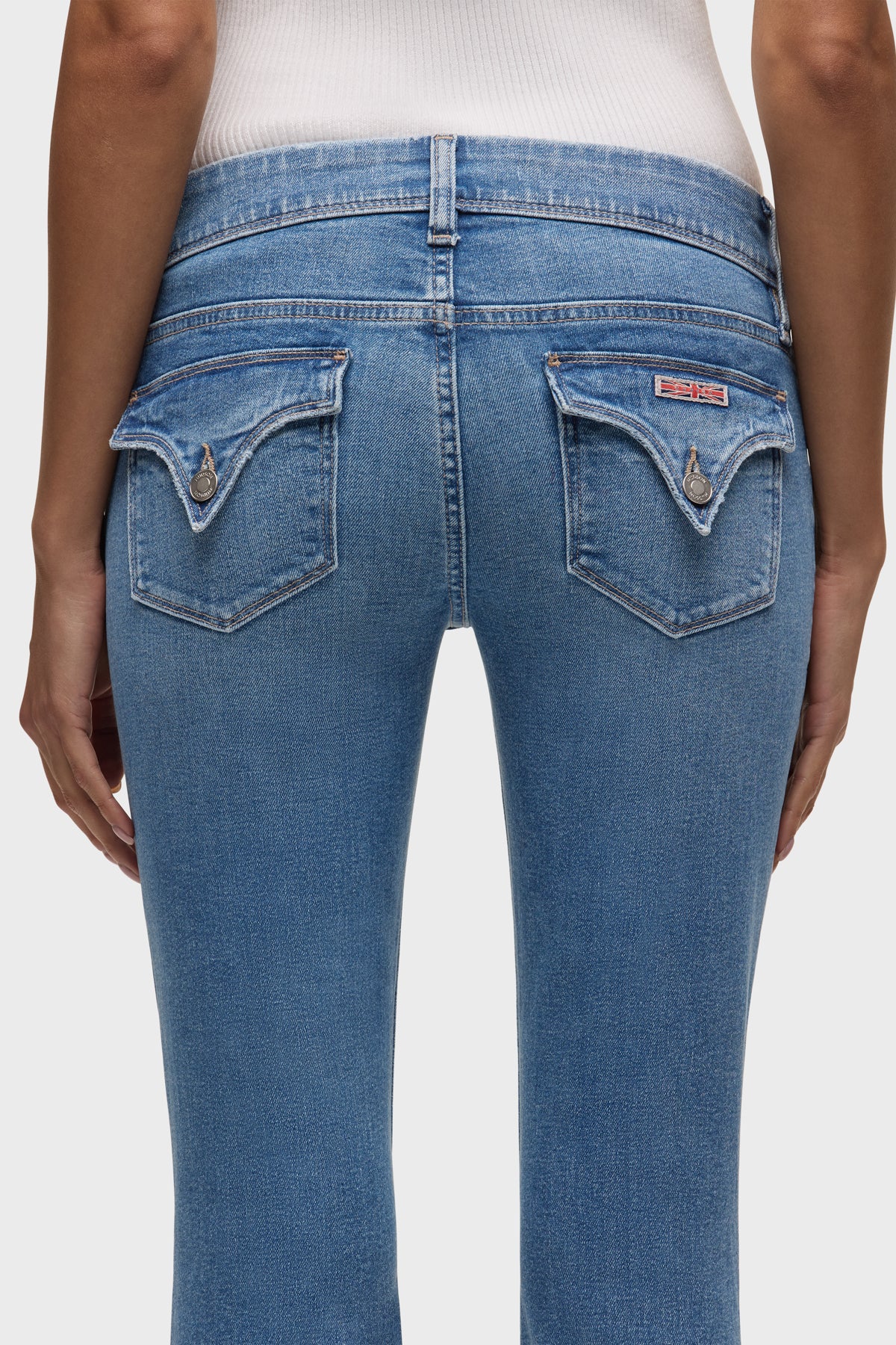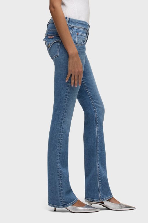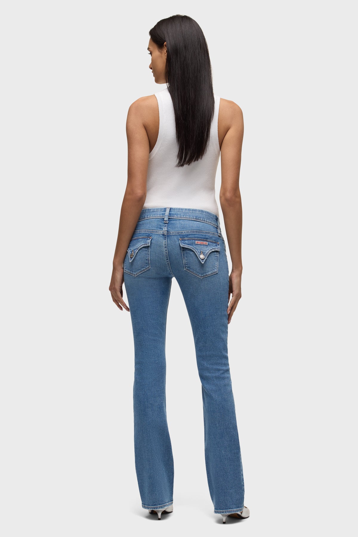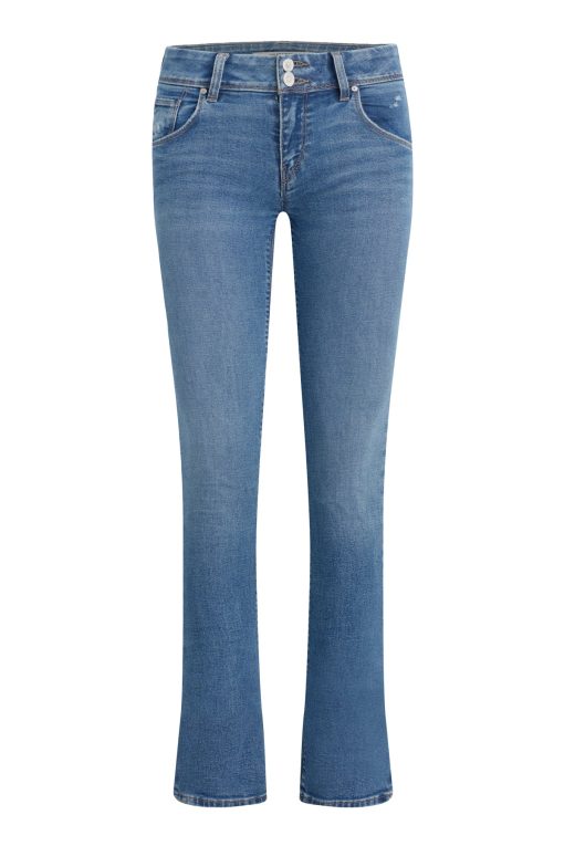 - The Beth Mid-Rise Baby Bootcut Jean in Luminaire features a subtly flared silhouette and our signature button-flap back pockets. This pair is cut from premium comfort stretch denim in a medium-light indigo wash with stone washing, bleaching, whiskering and edge grinding. A 34.5″ inseam and clean finished hem complete the look.