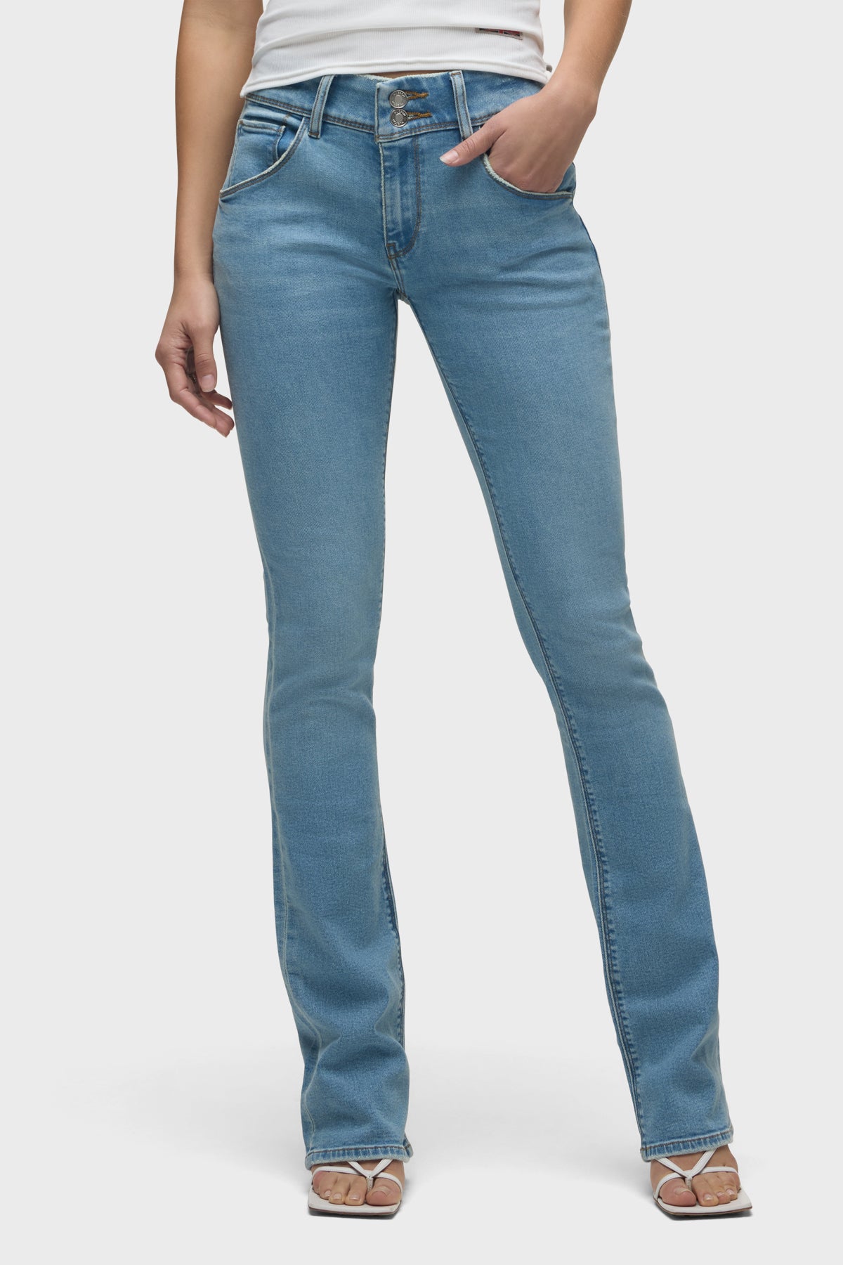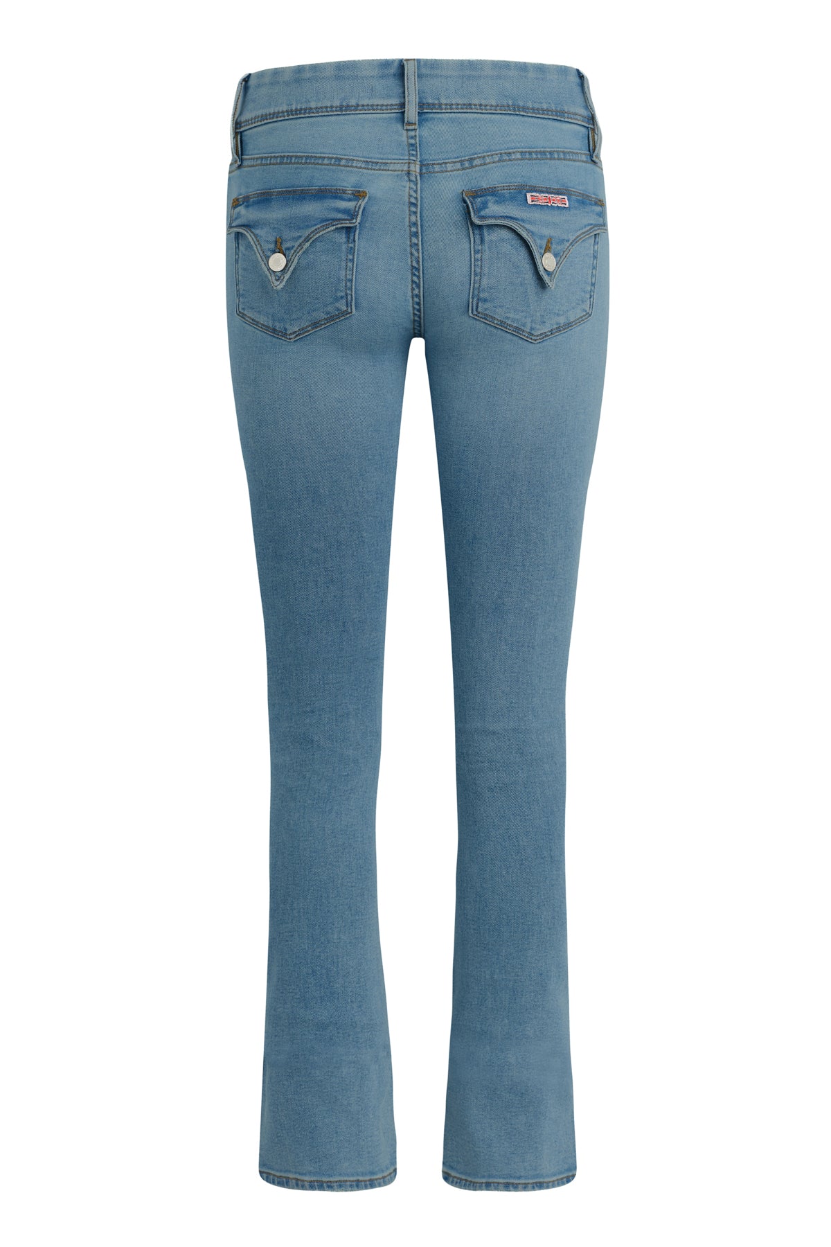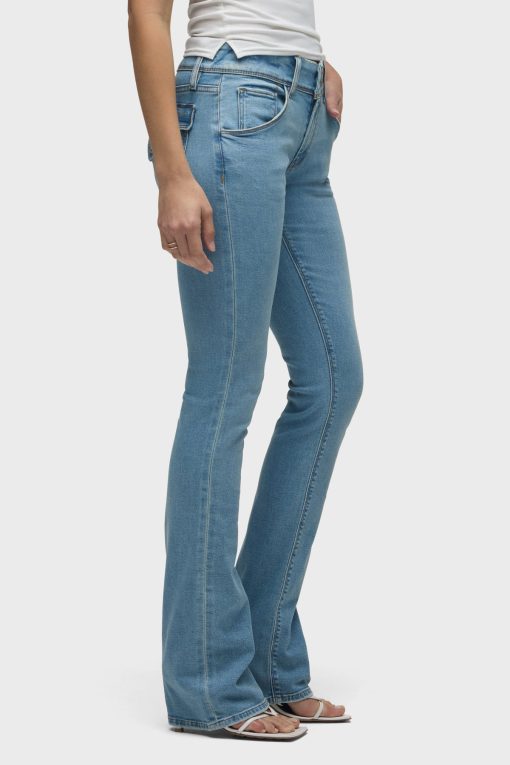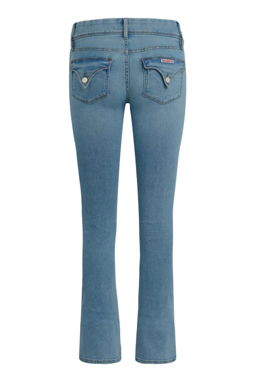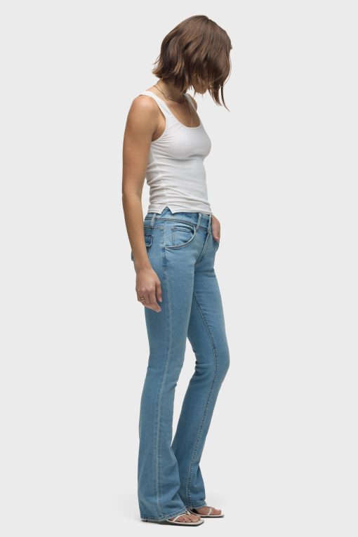 - Cut with premium stretch denim, our Beth Mid-Rise Baby Bootcut Jean in light-medium wash, Oak features a clean hem, grinding on the edges and our signature button-flap back pockets.