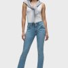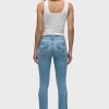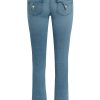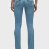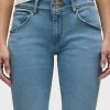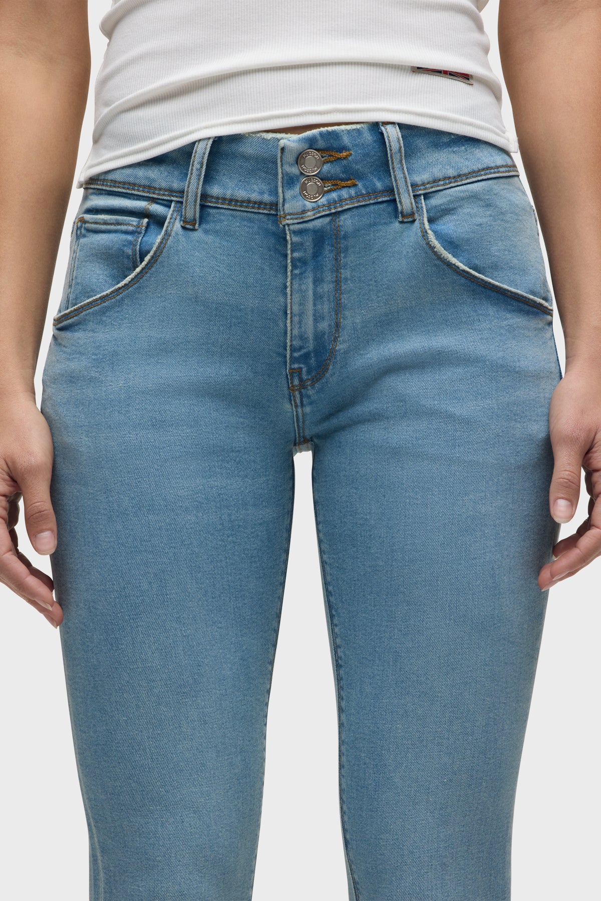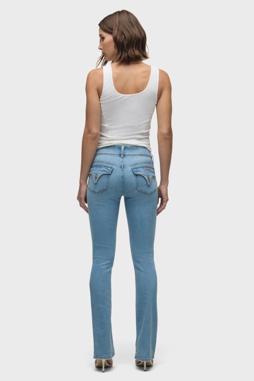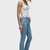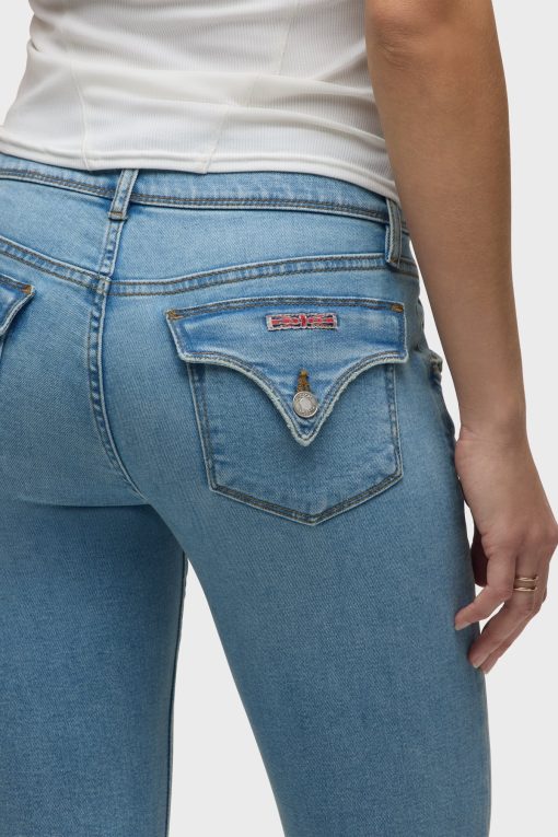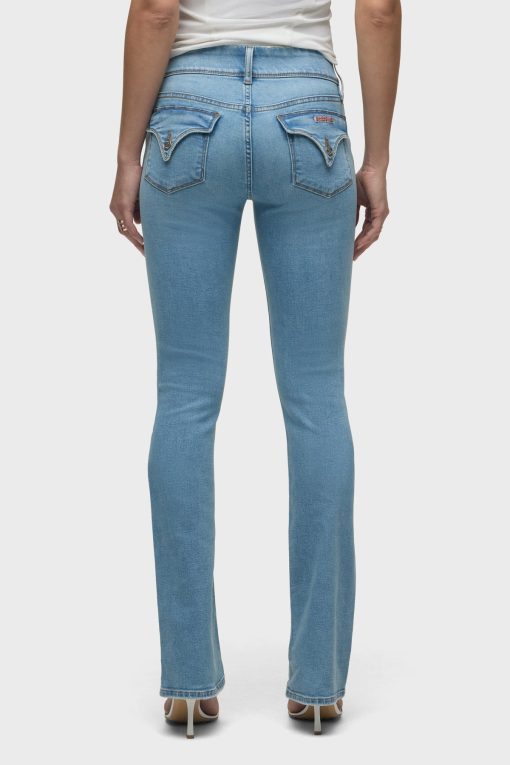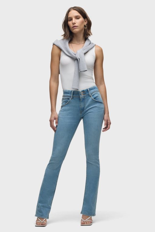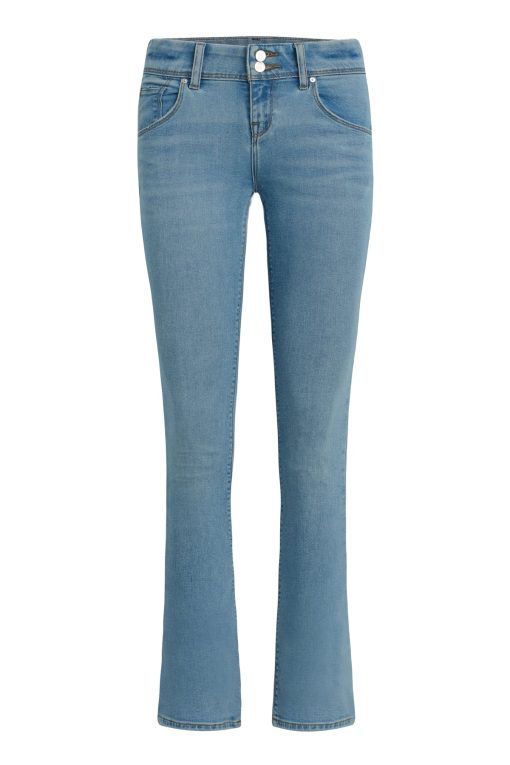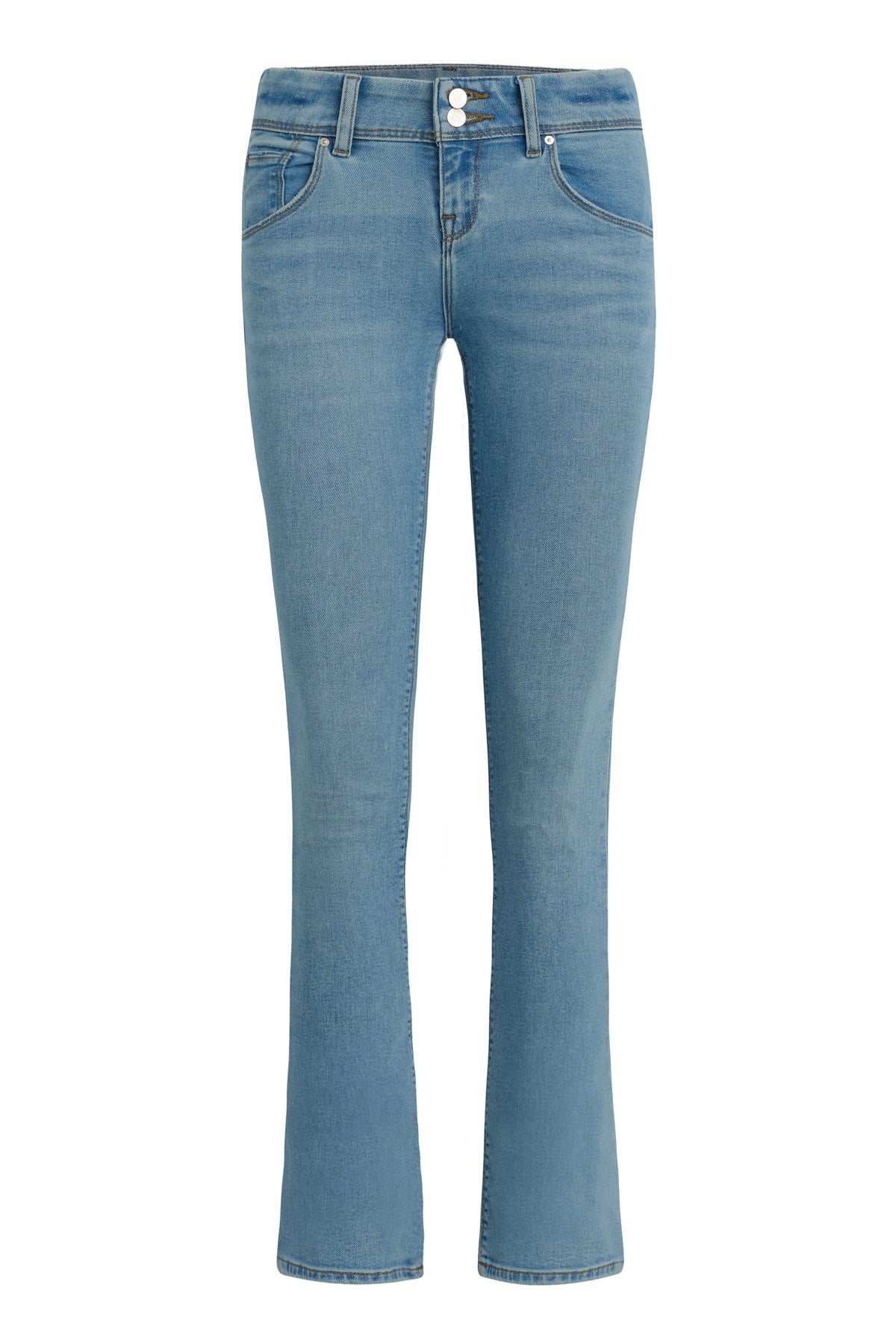 - Cut with premium stretch denim, our Beth Mid-Rise Baby Bootcut Jean in light-medium wash, Oak features a clean hem, grinding on the edges and our signature button-flap back pockets.