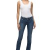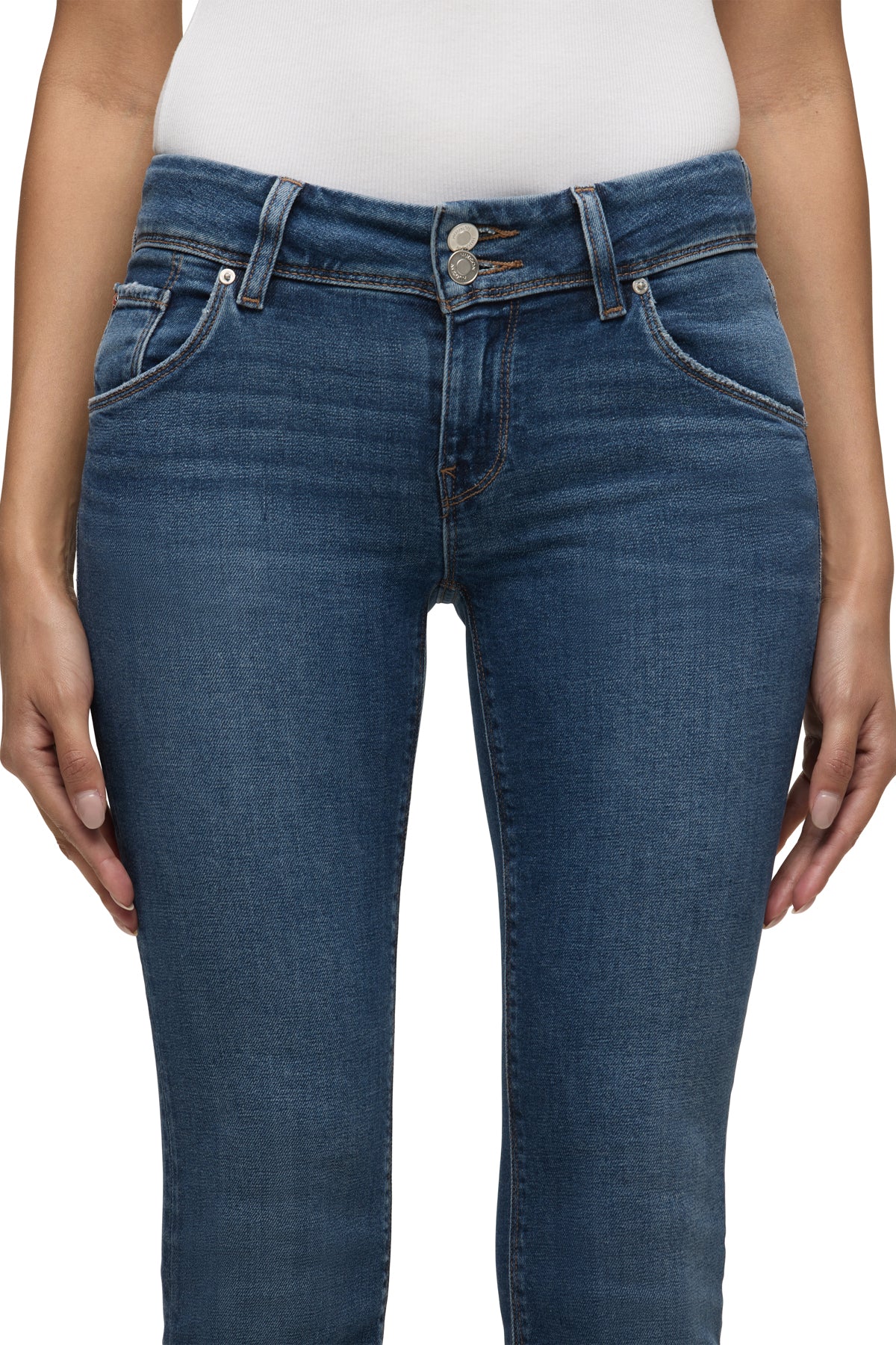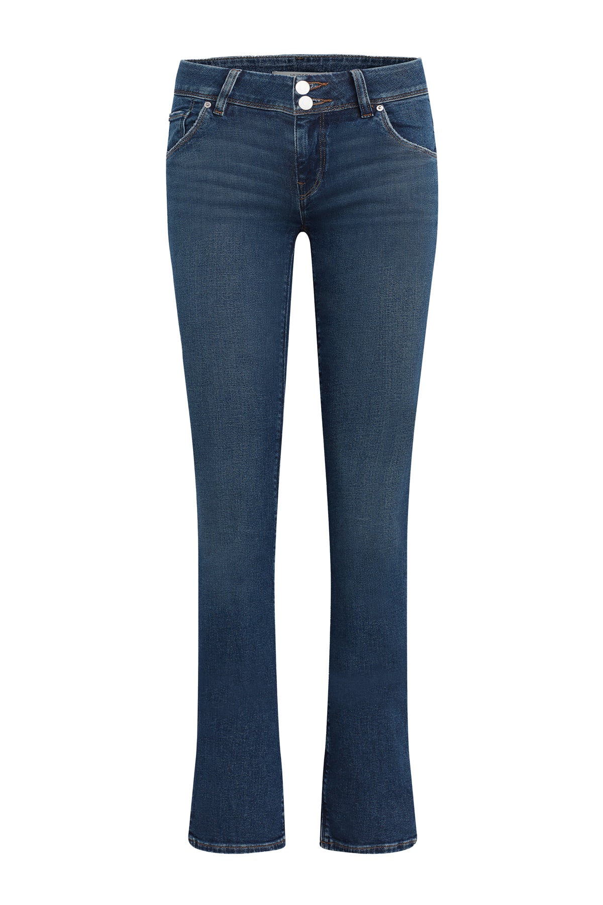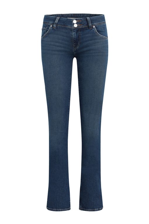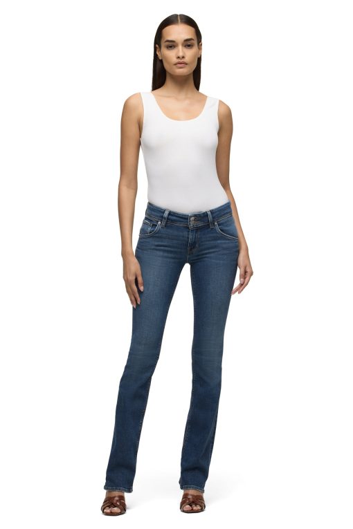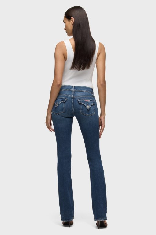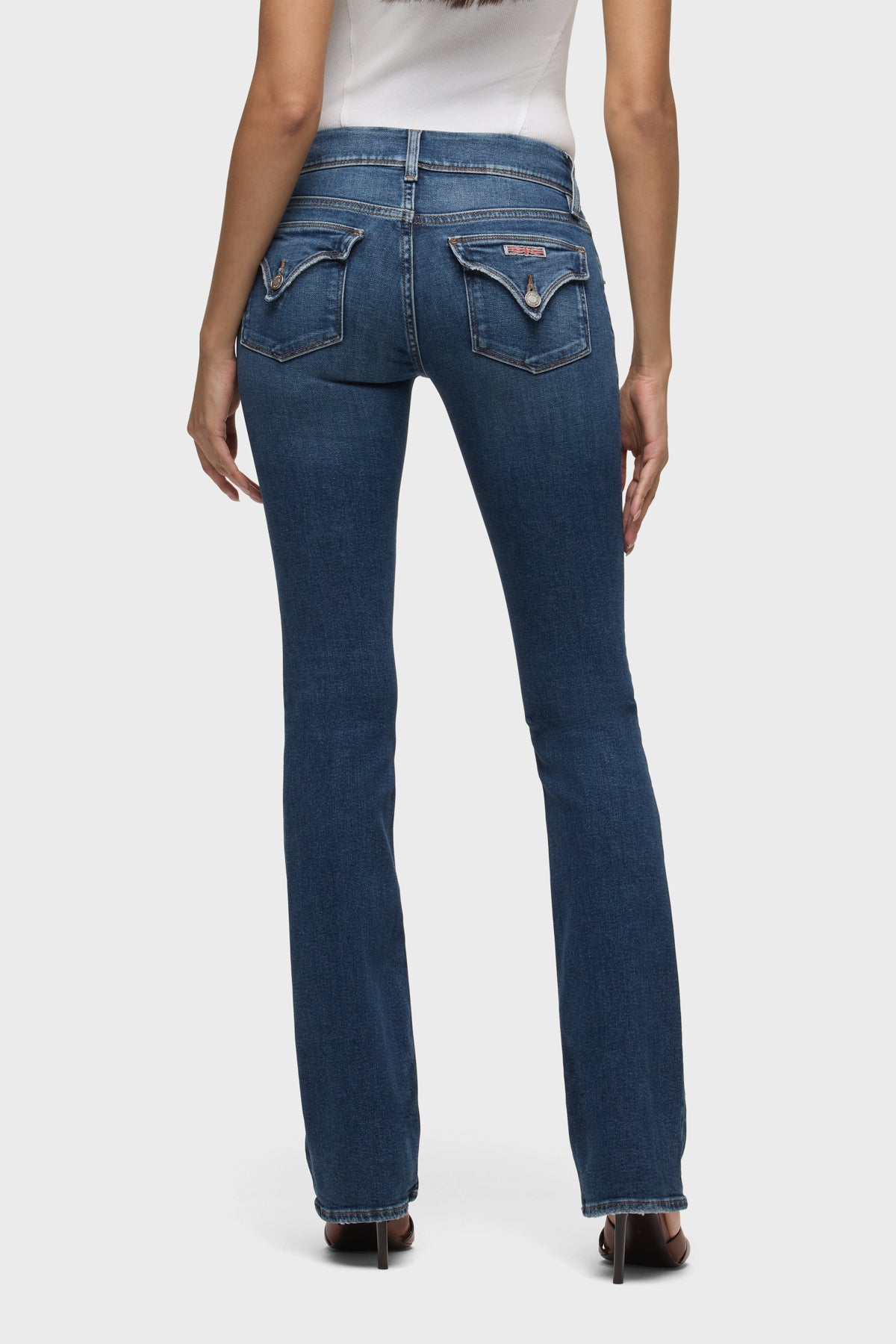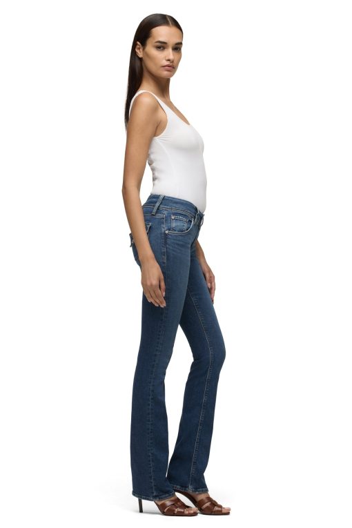 - Cut with premium stretch denim, our Beth Mid-Rise Baby Bootcut Jean in Olympic features a subtly flared silhouette, a clean hem, grinding on the edges and our signature button-flap back pockets.