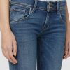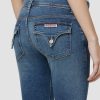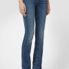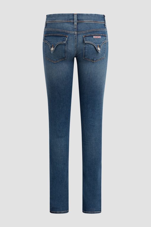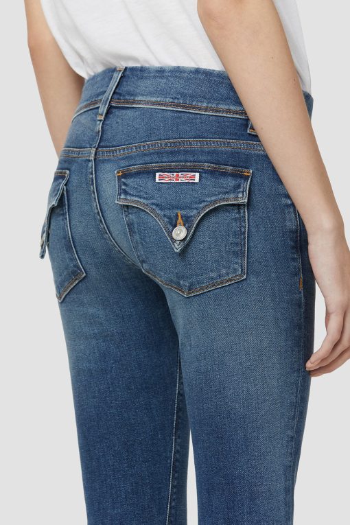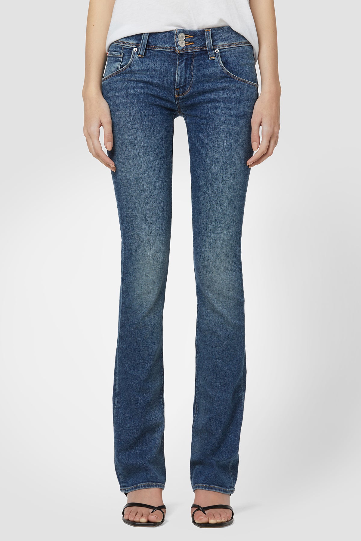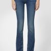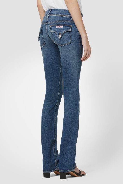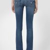 - Cut with premium super stretch denim that smooths, sculpts, and will never sag, our Beth Mid-Rise Baby Bootcut Jean in medium indigo Rhythm Rain features a subtly flared silhouette and our signature button-flap back pockets.